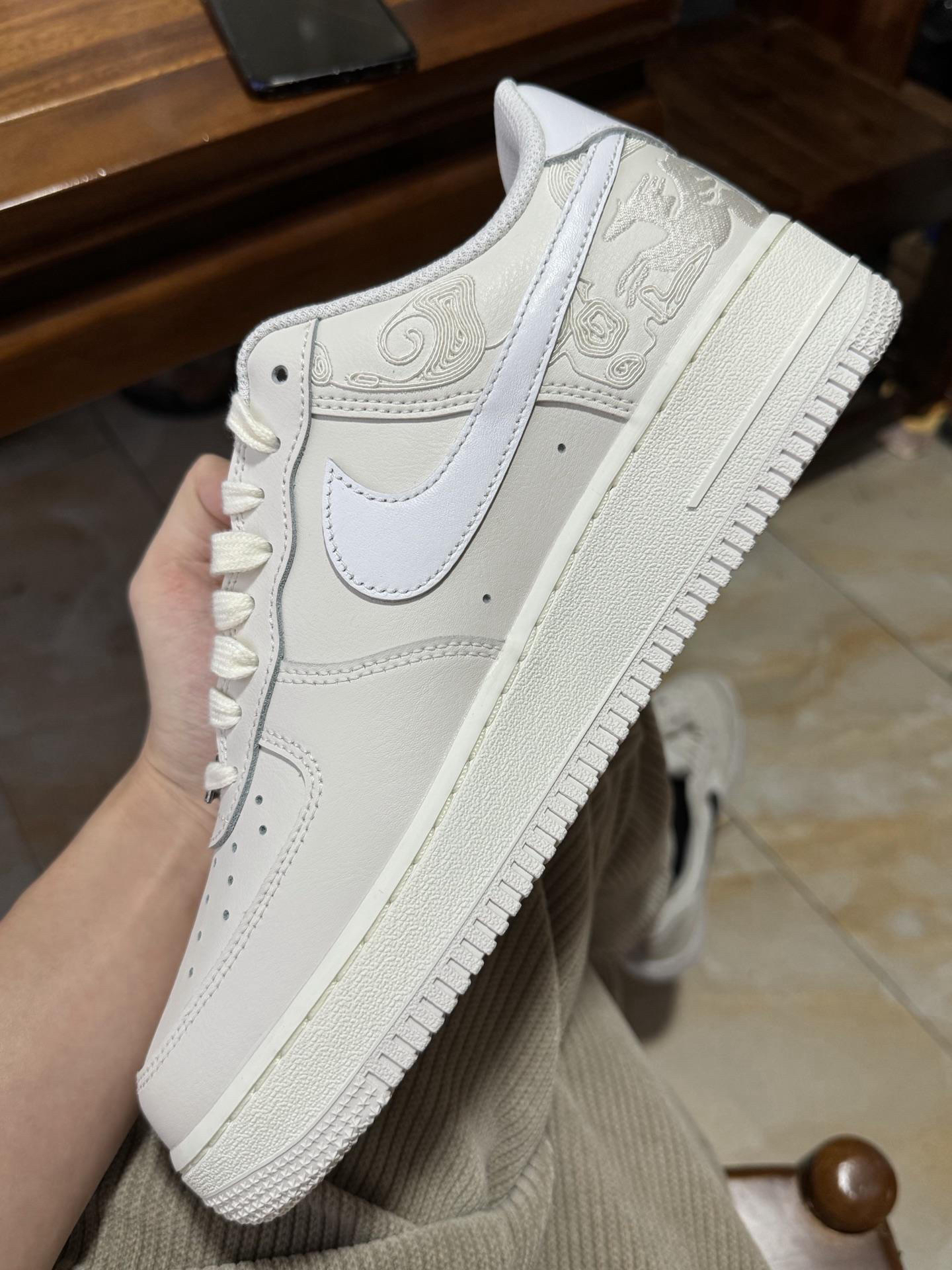 祥云刺绣:鞋身侧面的祥云纹是立体刺绣,摸上去凹凸有致,走在街上回头率直接拉满。 • 双钩设计:白色主钩搭配红色迷你小钩,呼应马年的喜庆感,细节里全是小心思。 • 米白底色:温柔又百搭,不管配牛仔裤还是运动裤,都能轻松穿出高级感。 💡 上脚体验 脚感还是熟悉的Air气垫,软弹又舒服,日常通勤、拜年走亲戚都能穿。 米白配色耐脏又耐看,新年穿它讨个“马到成功”的好彩头,寓意直接拉满!#识货萌新创...