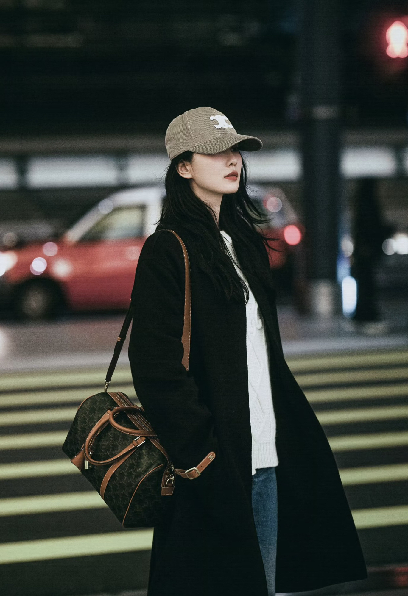 刘诗诗的松弛感街拍|CELINE黑大衣+棒球帽,把贵气穿成日常✨