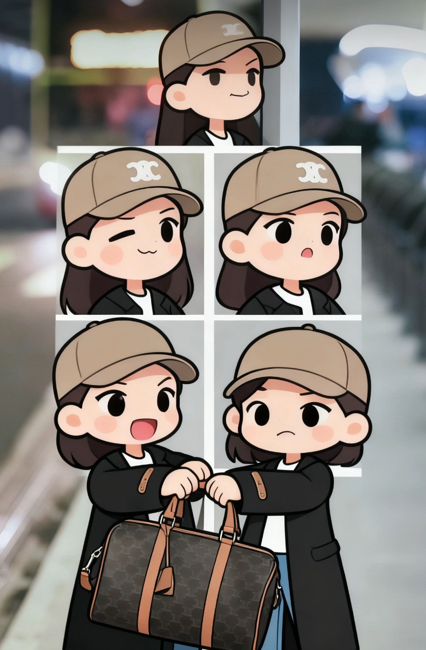 • 平替友好版:黑大衣选垂坠感好的羊毛材质,牛仔裤选高腰直筒款,棒球帽和包包选类似老花图案的平替款,一样能穿出同款氛围。