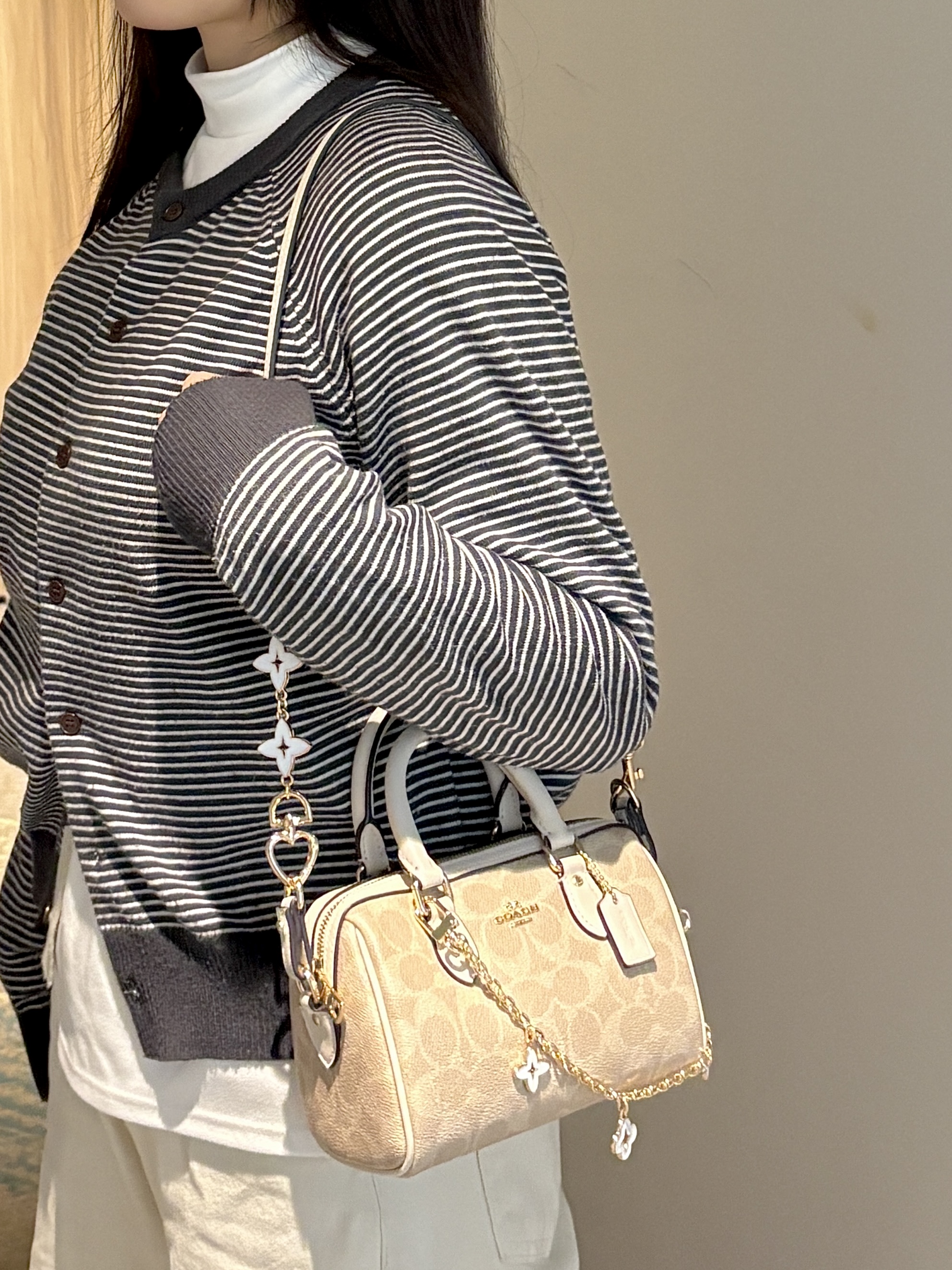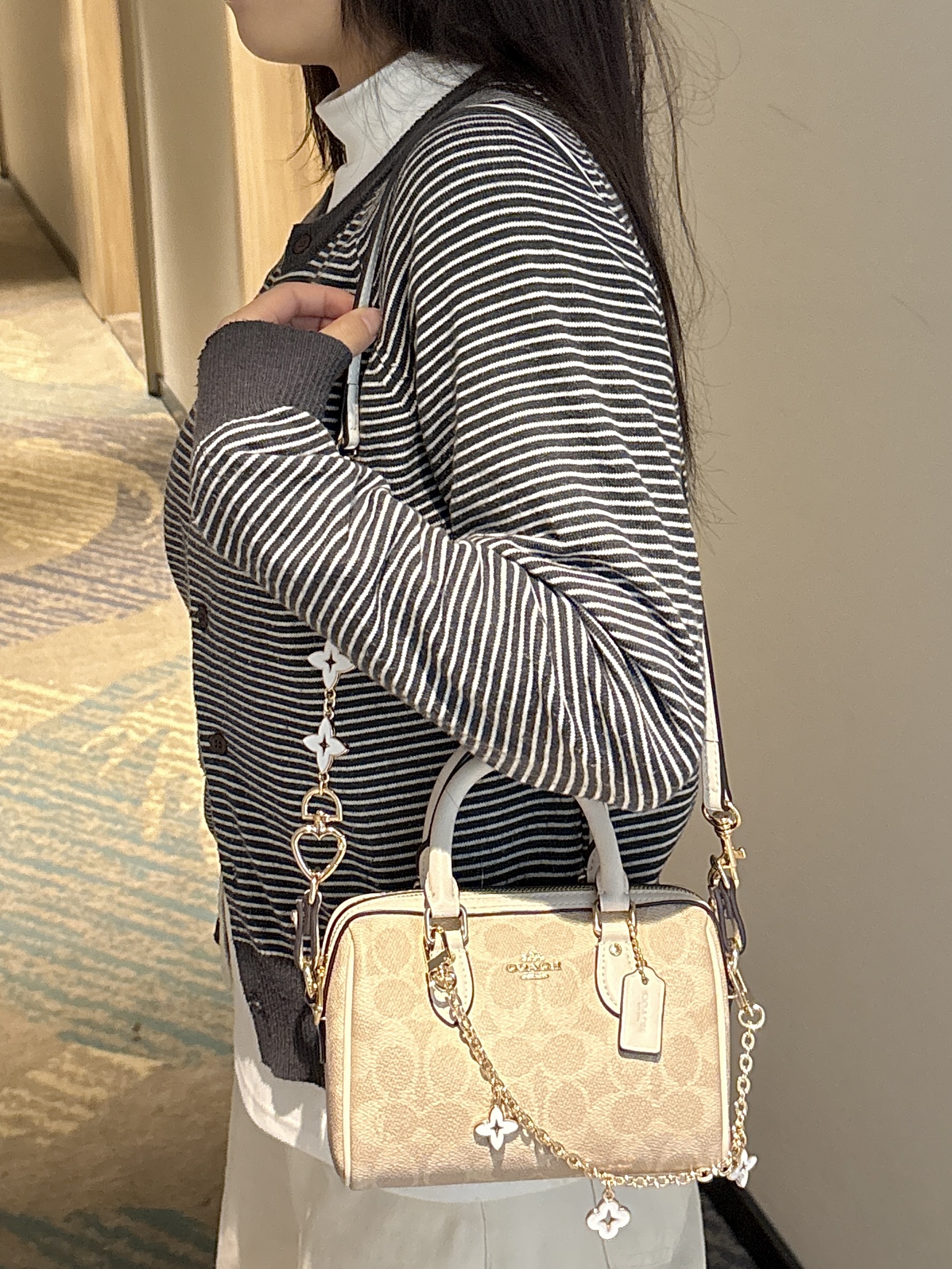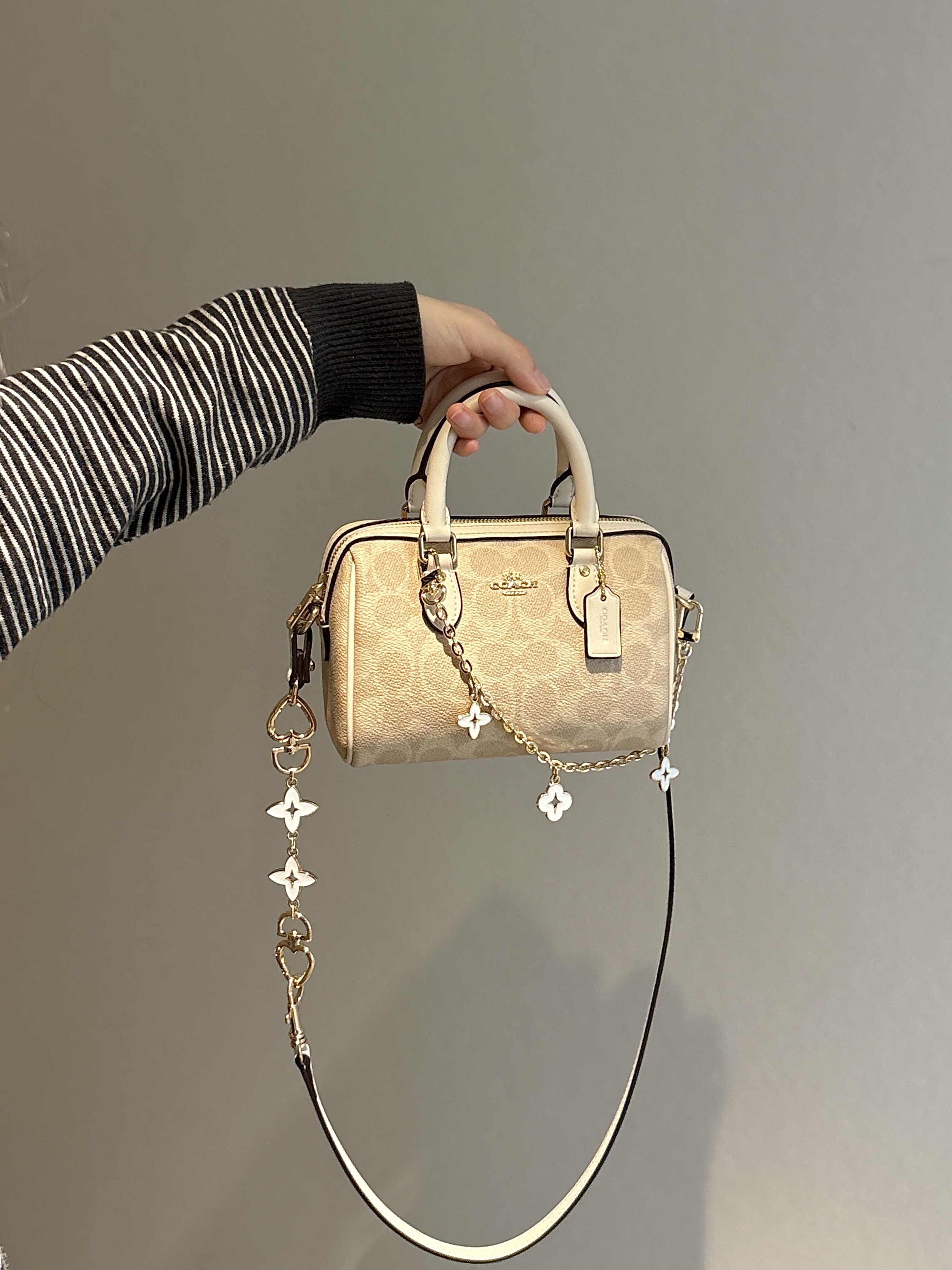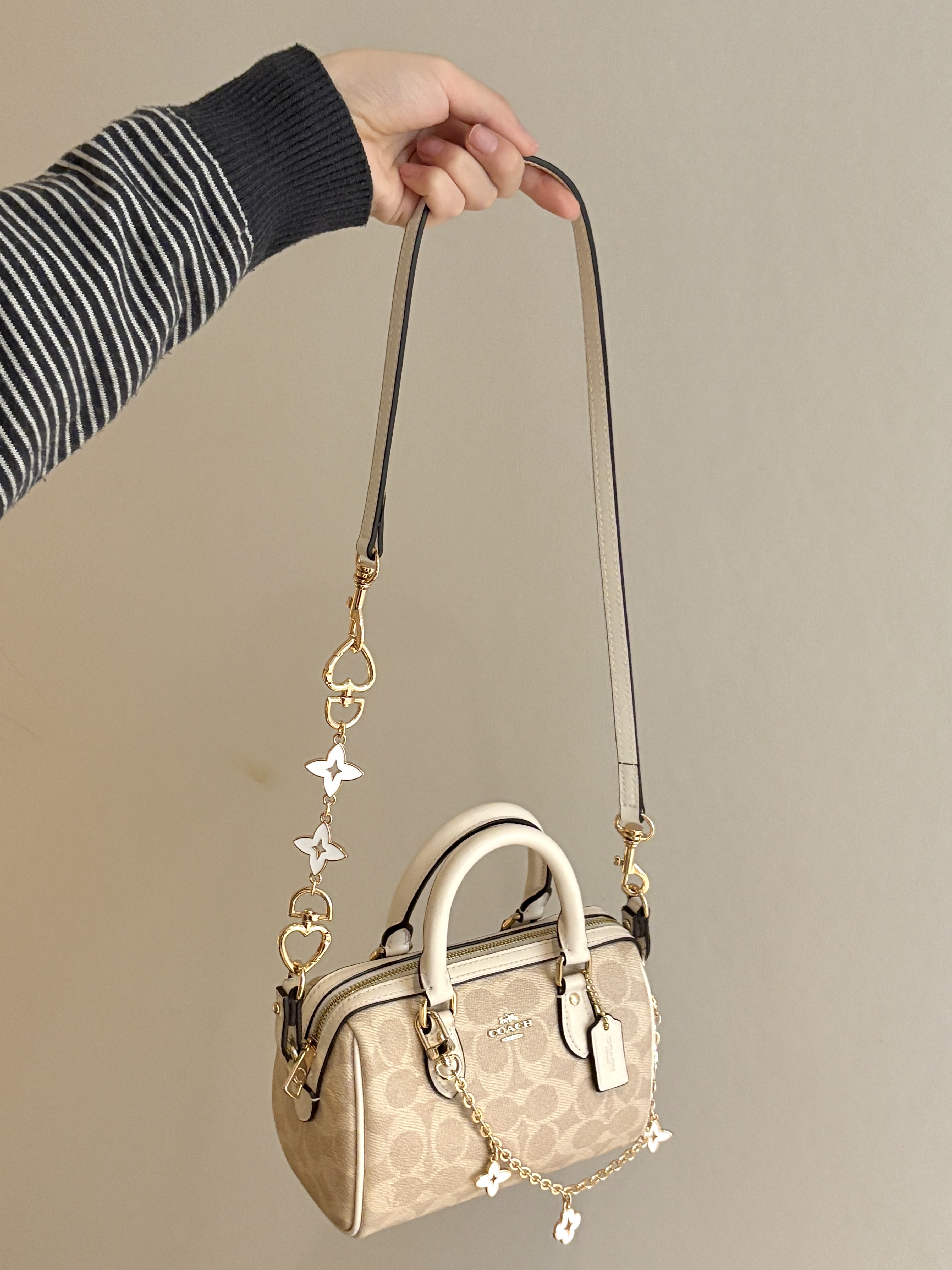 我的蔻驰波士顿包包 也忒好看了吧 原来的包带好单调 背久就觉得腻了😭 改造了一下 入手了精琢耿家的链条和短链 搭配一下 直接可以单肩或者斜挎背了 一整个温柔又精致 肩带和五金都是跟包包本身的皮和五金的颜色是一样滴 日常背它出门百搭又好看~🥰 #仪式感满分的情人节礼物 #马年本命年送礼 #COACH蔻驰 #蔻驰包改造 #蔻驰包包装饰链