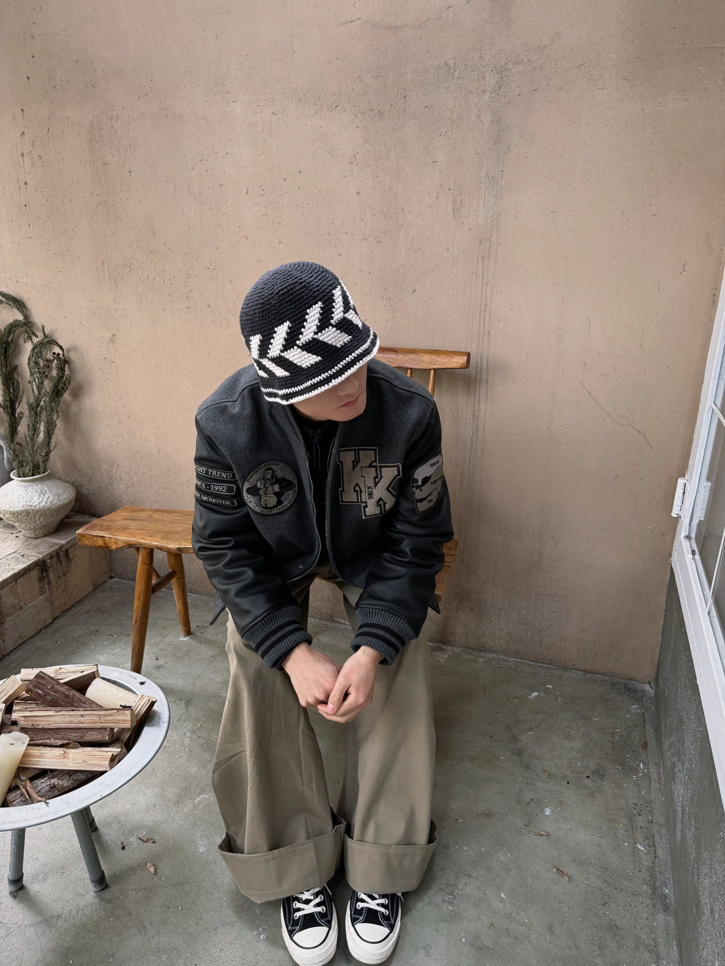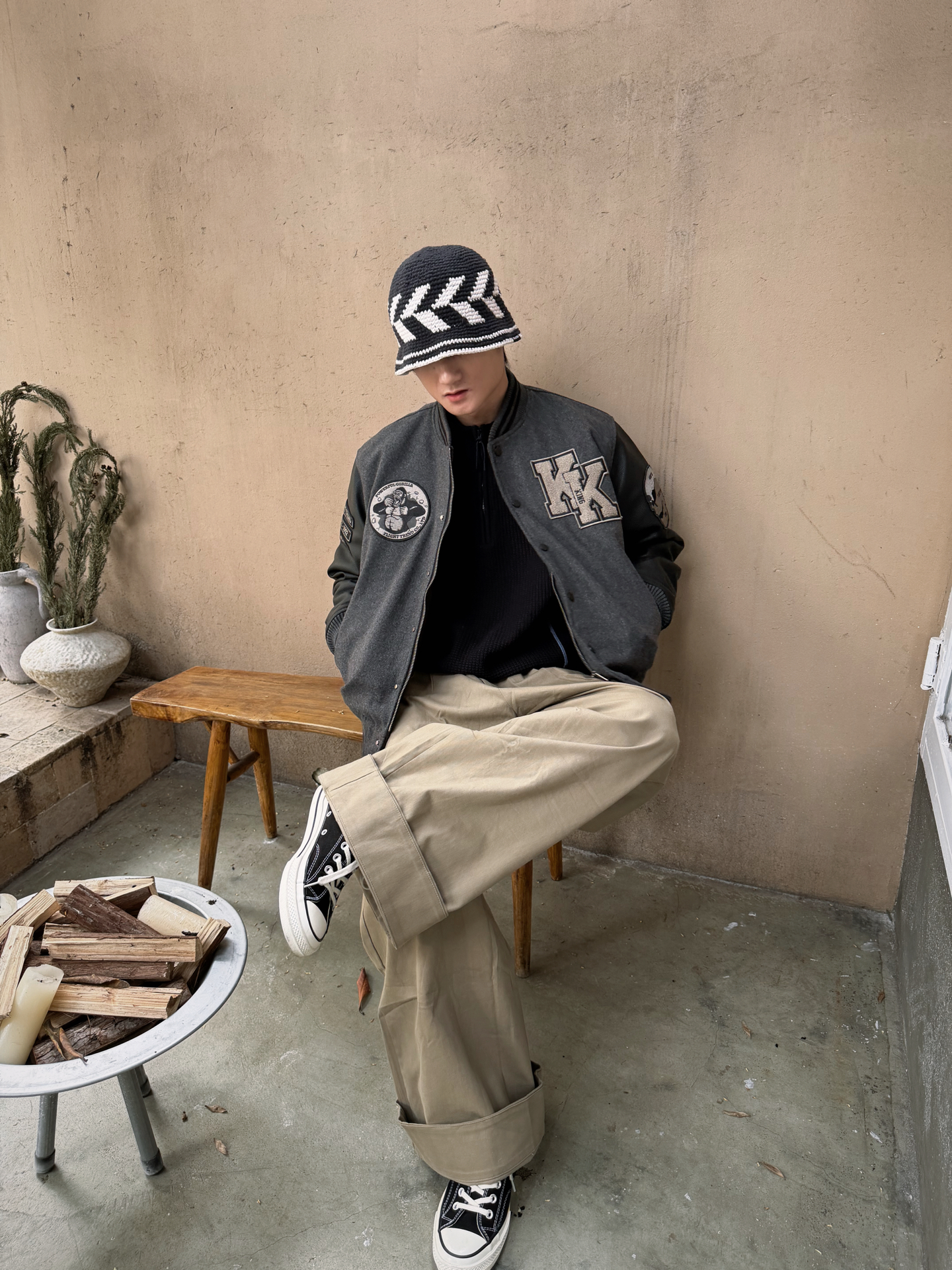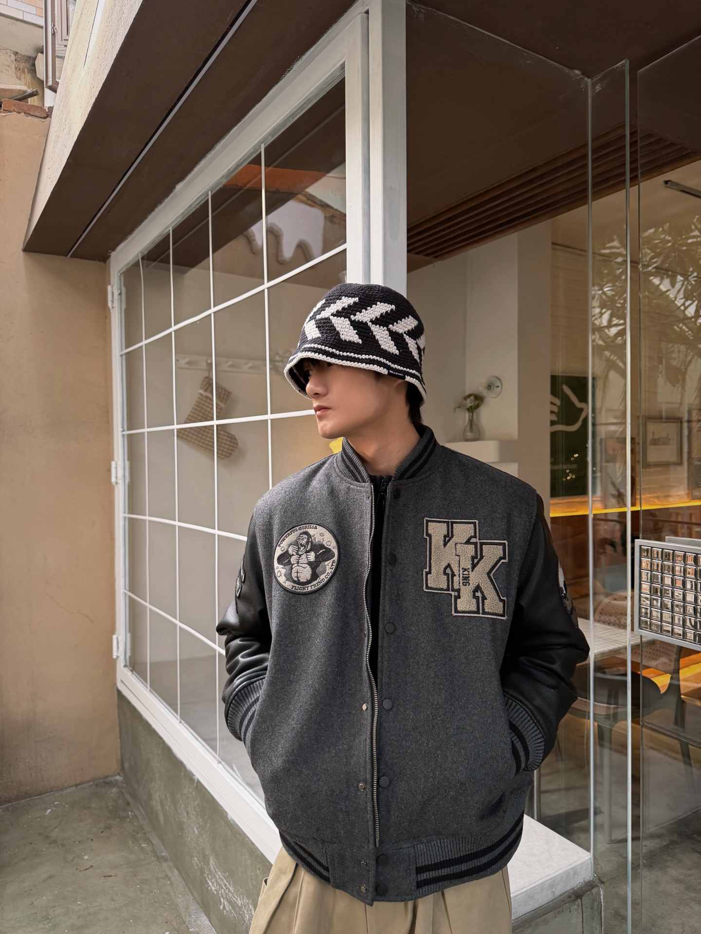 秋冬不用费力的穿搭思路: 一件有细节的棒球服+一条垂感阔腿裤。 黑灰配色永远不出错,再戴顶针织帽, 今天也是美式复古帅哥🤓 #基础款拿捏冬季穿搭 #美式宝藏棒球服外套 #美美开局2026