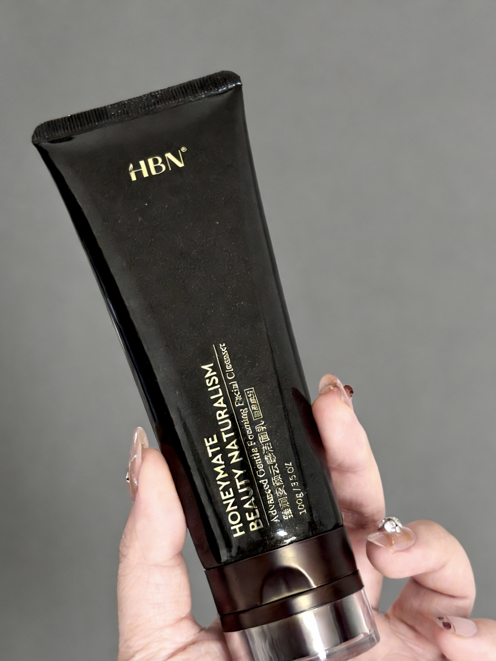 HBN这支云感洁面我已经空管两支了 黑色鎏金管身超有质感 挤出来是绵密的膏体 沾水就能揉出云朵一样的泡沫 上脸软fufu的像被棉花包裹 洗得很干净但完全不拔干 洗完皮肤润润的 没有紧绷感 混油和干皮都能用 里面的氨基酸配方很温和 晨间清洁和晚间卸防晒都够用