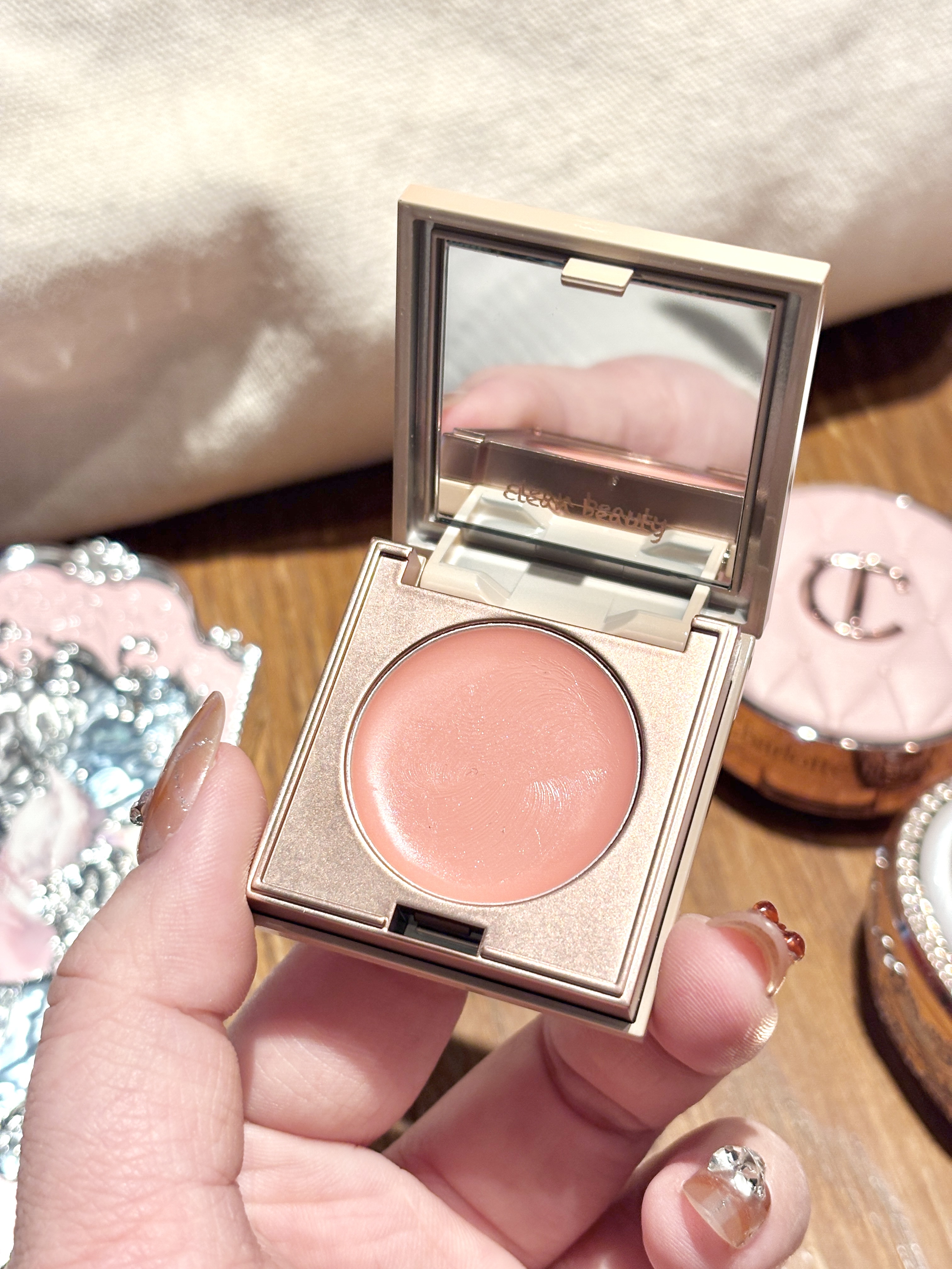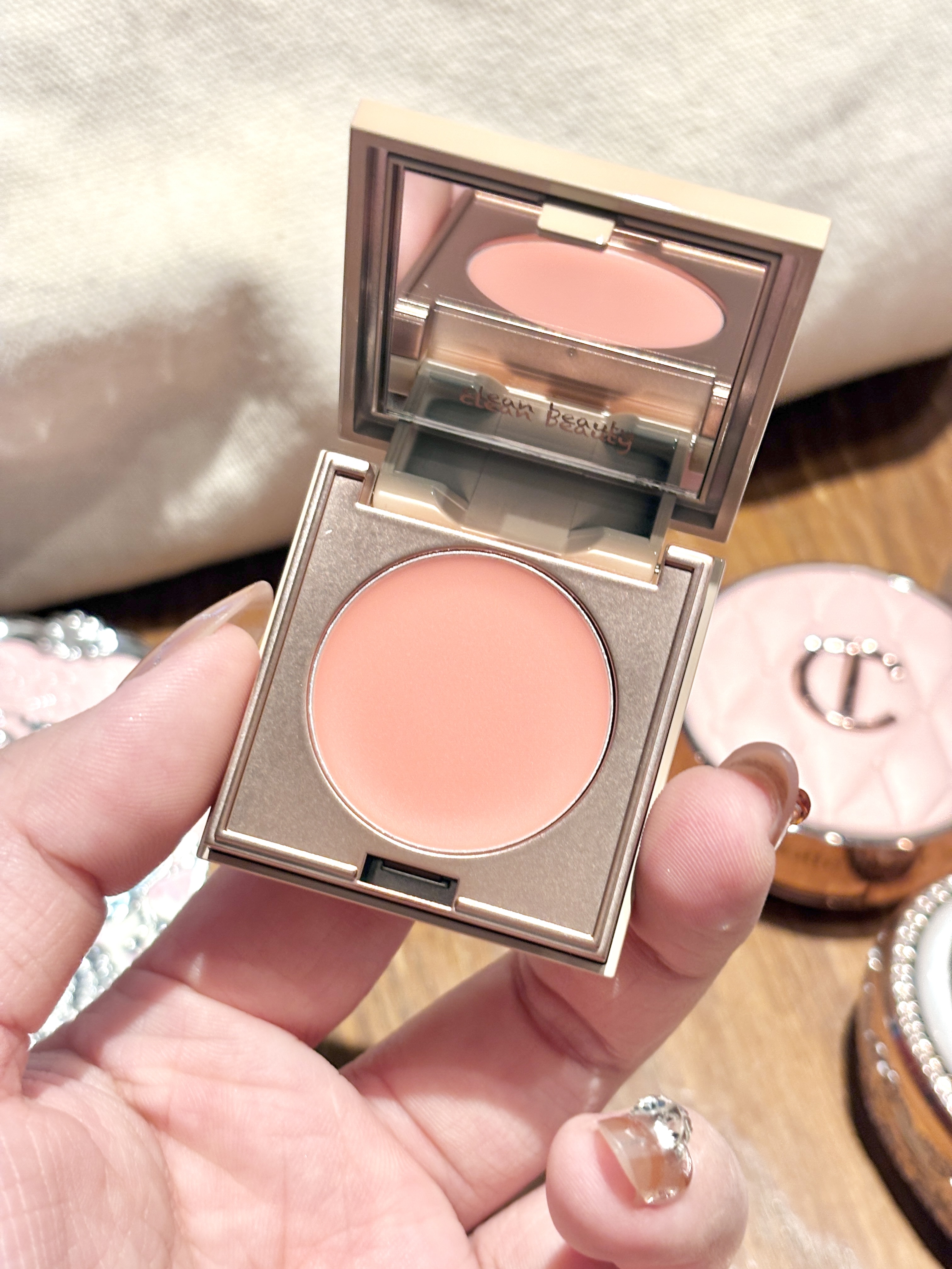 挖到宝了!RC这块欢桃多用膏 直接把我化妆包给减负了 膏体润润的 上脸是那种嫩嫩的水蜜桃色 用手拍开就像皮肤自己透出来的好气色 早上赶时间直接涂在脸颊、鼻尖和嘴唇上 30秒就能搞定伪素颜妆,早八人真的会谢