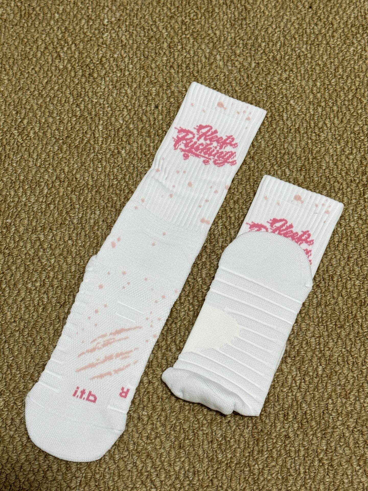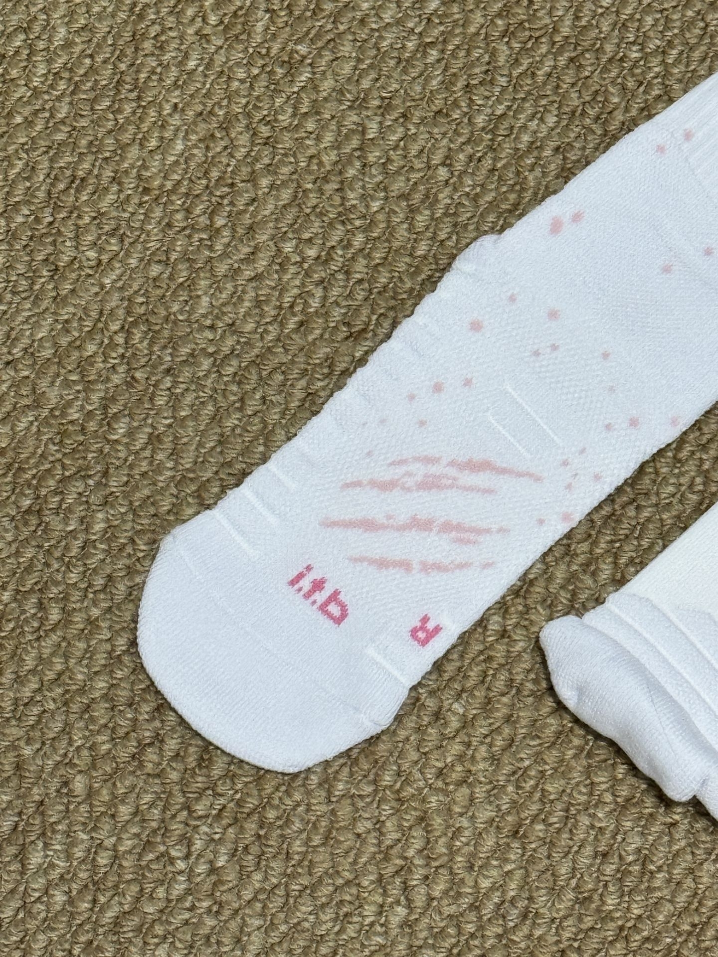 有一双心仪的球袜才能运动好! 我选的是 #itb氢蓝 家的 真的有点小好看啊 高帮的设计 有点粉嫩的图案 也很适合女孩子哇 毛巾底的 敲舒服呢 日常运动穿这双 贼不错👌