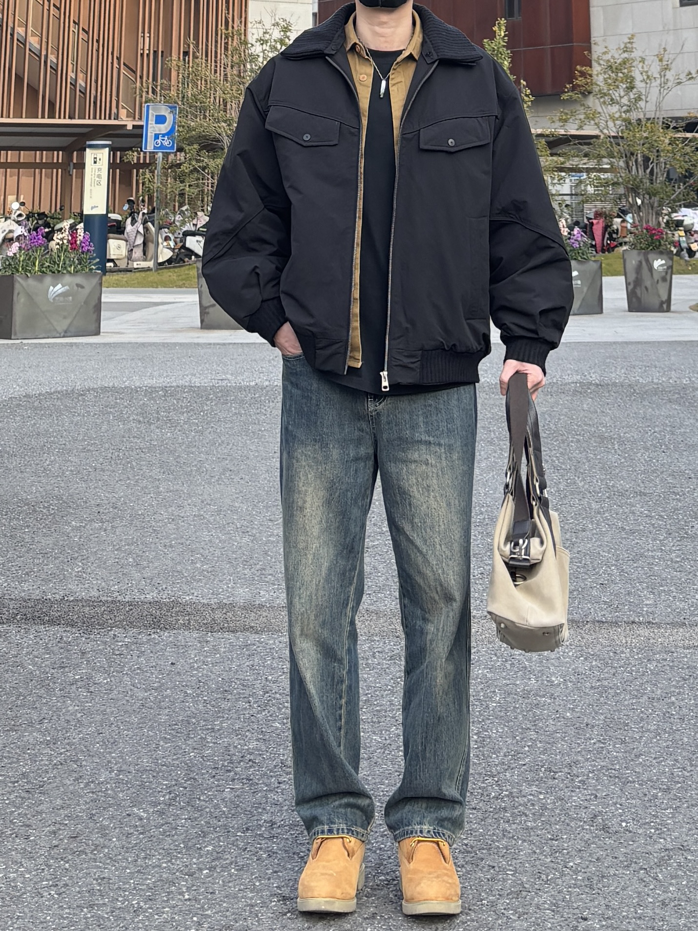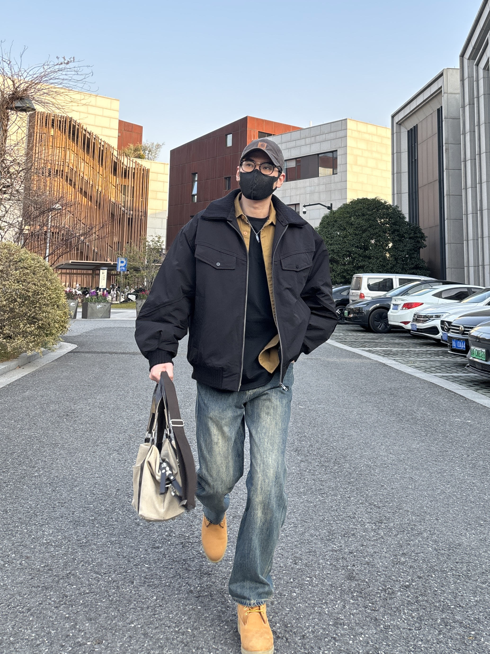 冬季不用太多衣服,基础款也可以穿出硬朗感。 黑色双层翻领工装棉服+卡其猎装衬衫内搭,经典配色不过时,叠穿衬衫还能拉长身形比例。下装选了蓝色直筒水洗复古牛仔裤搭配沙漠黄中帮工装靴,保暖又时髦。 这身look通过叠穿和色调的呼应,营造帅气男友力😎 - 今日搭配 衣服裤子:NICE LILI 鞋子:timberland
