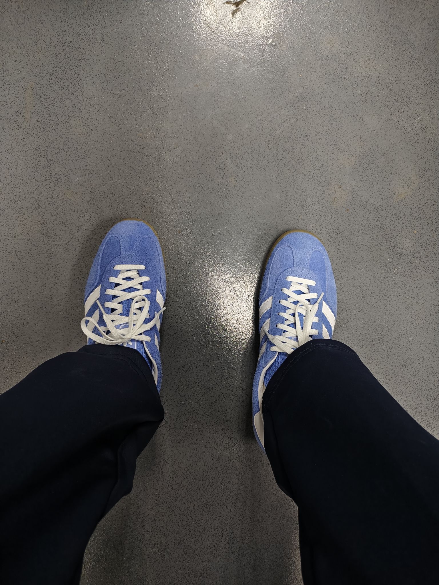 这双adidas GAZELLE INDOOR真的太对味了!经典蓝白配色复古感拉满,绒面材质摸起来质感很棒,上脚特别百搭。尺码选的43⅓,穿着刚好合适,鞋型包裹感很舒服,走路逛街都不累。缺点就是绒面有点不耐脏,得小心打理。总之是今年入手最满意的一双复古板鞋,推荐给喜欢复古风的朋友!