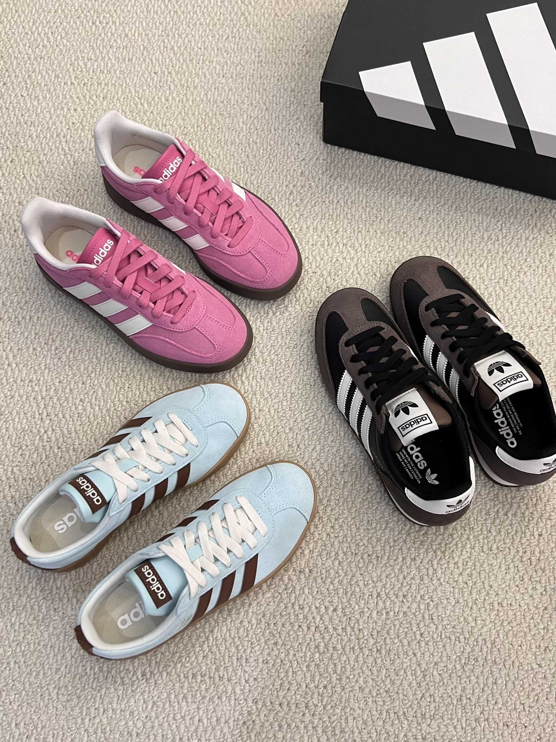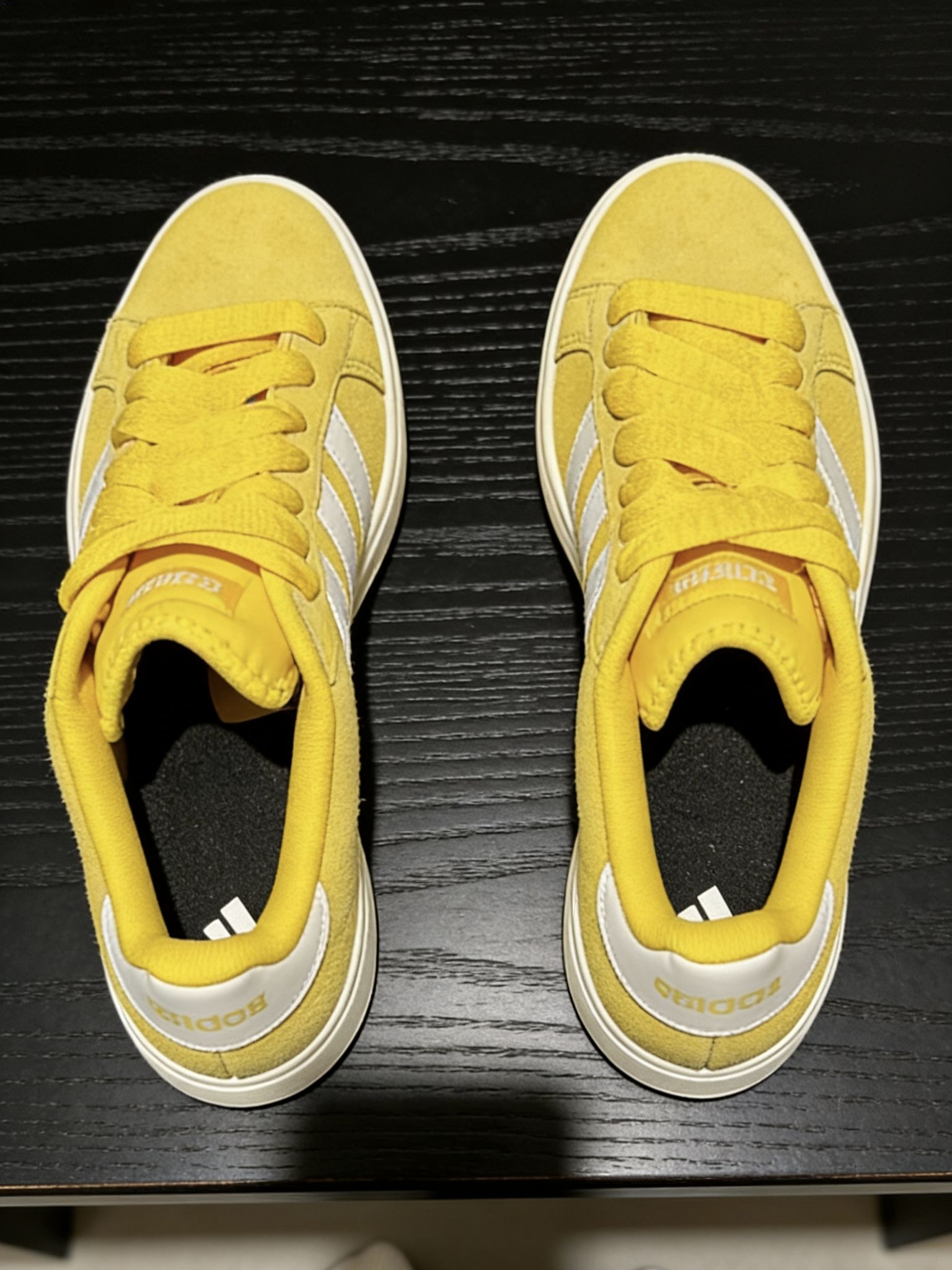 这双黄白配色的鞋简直是为冬天量身定做的,亮黄色很抢眼,搭配白色鞋底和鞋带,看着就精神。鞋面材质摸着特软,上脚很舒服,走路不累。鞋舌上的“adidas”标志清晰显眼。不管是平时逛街还是去健身房运动,这双鞋都能轻松hold住,搭配羽绒服或者卫衣都好看,赶紧安排上。🔥