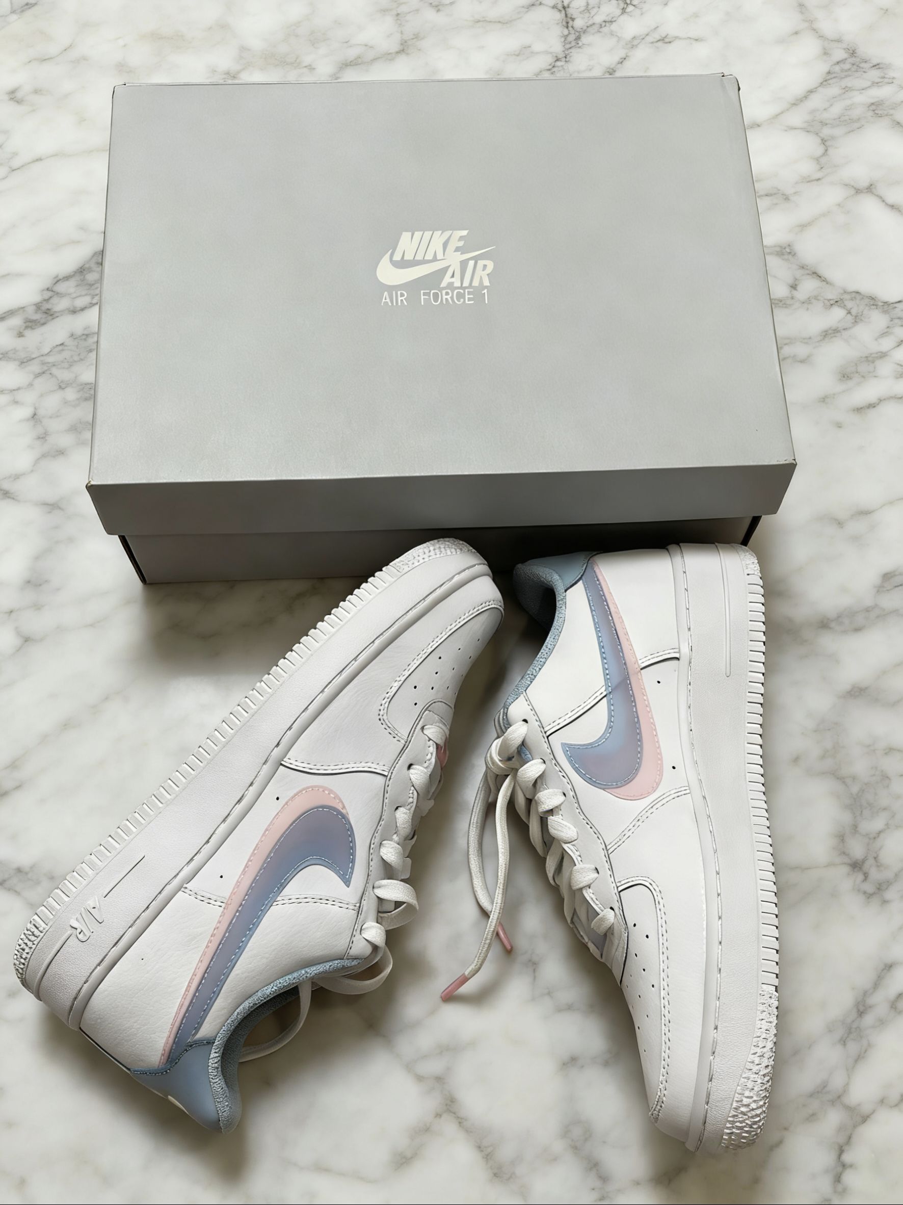 今日份快乐是这双Nike粉蓝空军给的! 粉蓝渐变双钩太懂女生了,温柔又特别,配浅色牛仔裤就是清爽小仙女。 踩着软乎乎的,通勤走20分钟都不累脚,轻薄透气不闷汗,日常穿巨顺手! 想找一双不撞款的百搭板鞋,这双直接闭眼入!
