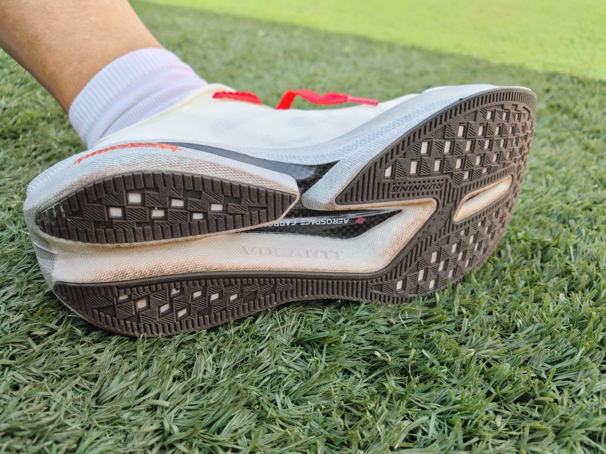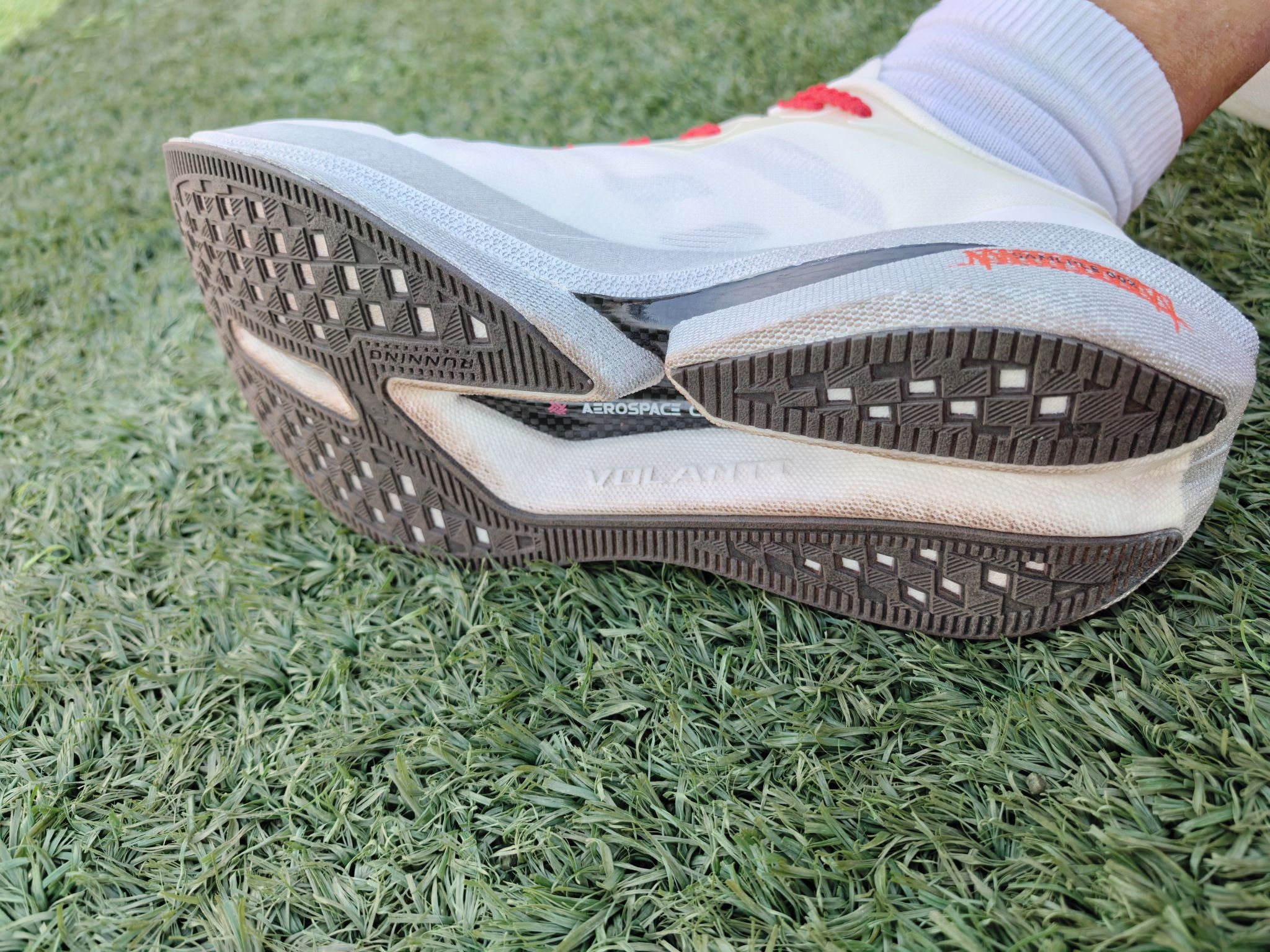 开箱场地十公里—沃兰迪追鱼的银马(第二双了,第一双是北斗),鞋底的耐磨程度一如既往的好,足弓支撑有力 鞋舌处的改进对脚背很友好。