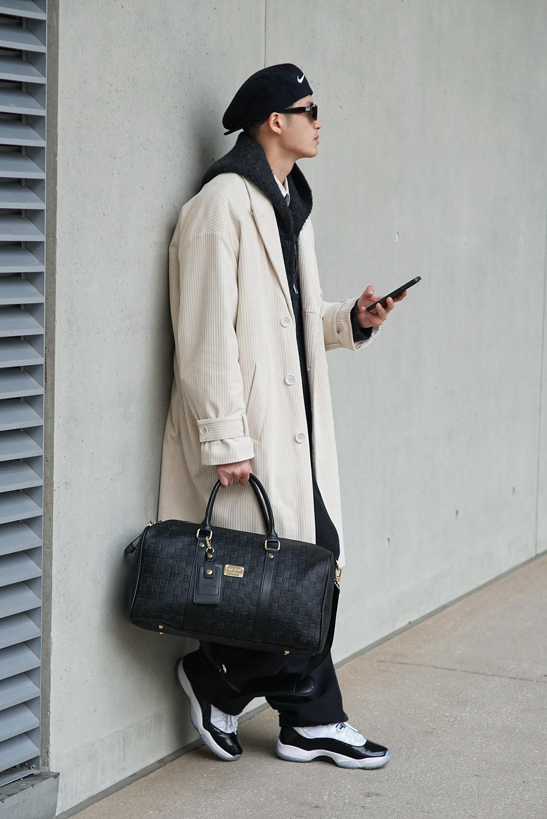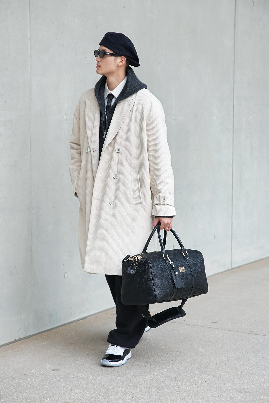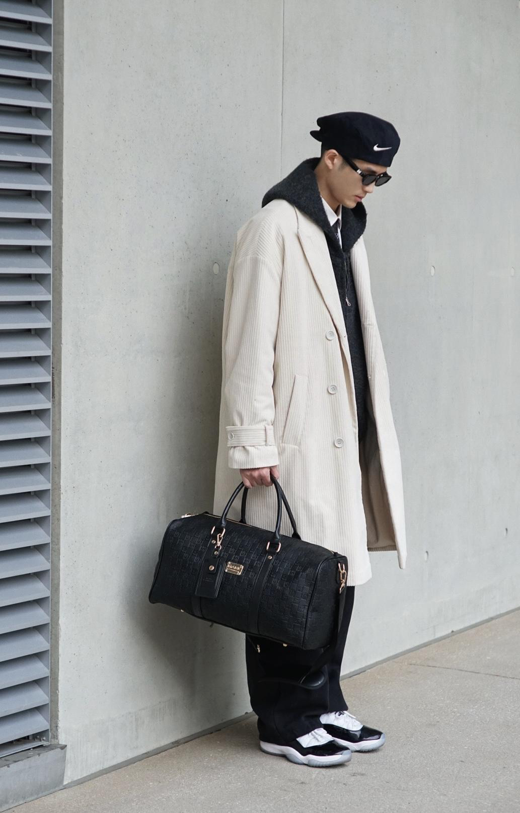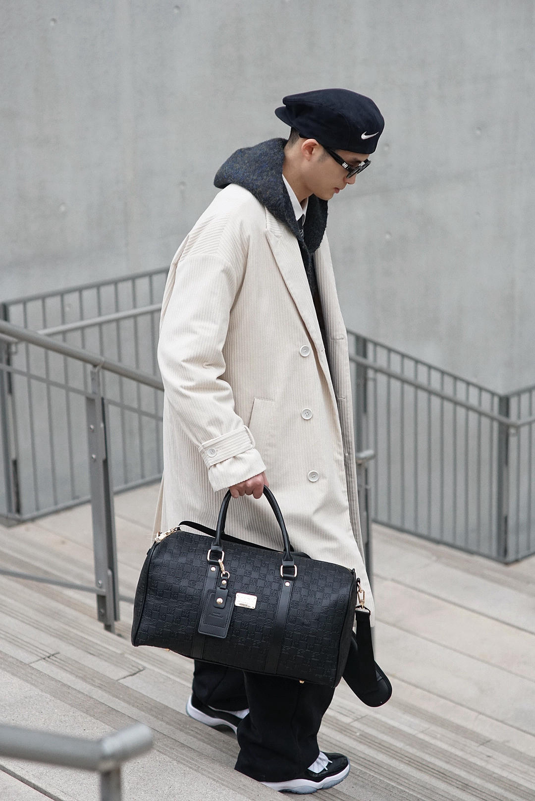 情人节赴约,当然得用温柔又有层次感的穿搭承包一整晚的心动啦。挺括大衣自带沉稳气质,软糯针织帽衫中和正式感,内搭衬衫与领带暗藏精致小心机,慵懒与优雅平衡得刚刚好。不刻意张扬,和浪漫的氛围完美适配。最后再来一个旅行包,可以装下女友的各类小物品,实用又贴心,是一个很不错的加分项哦~