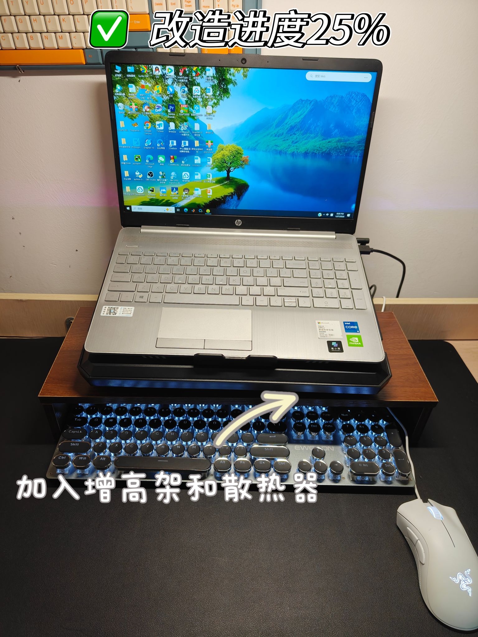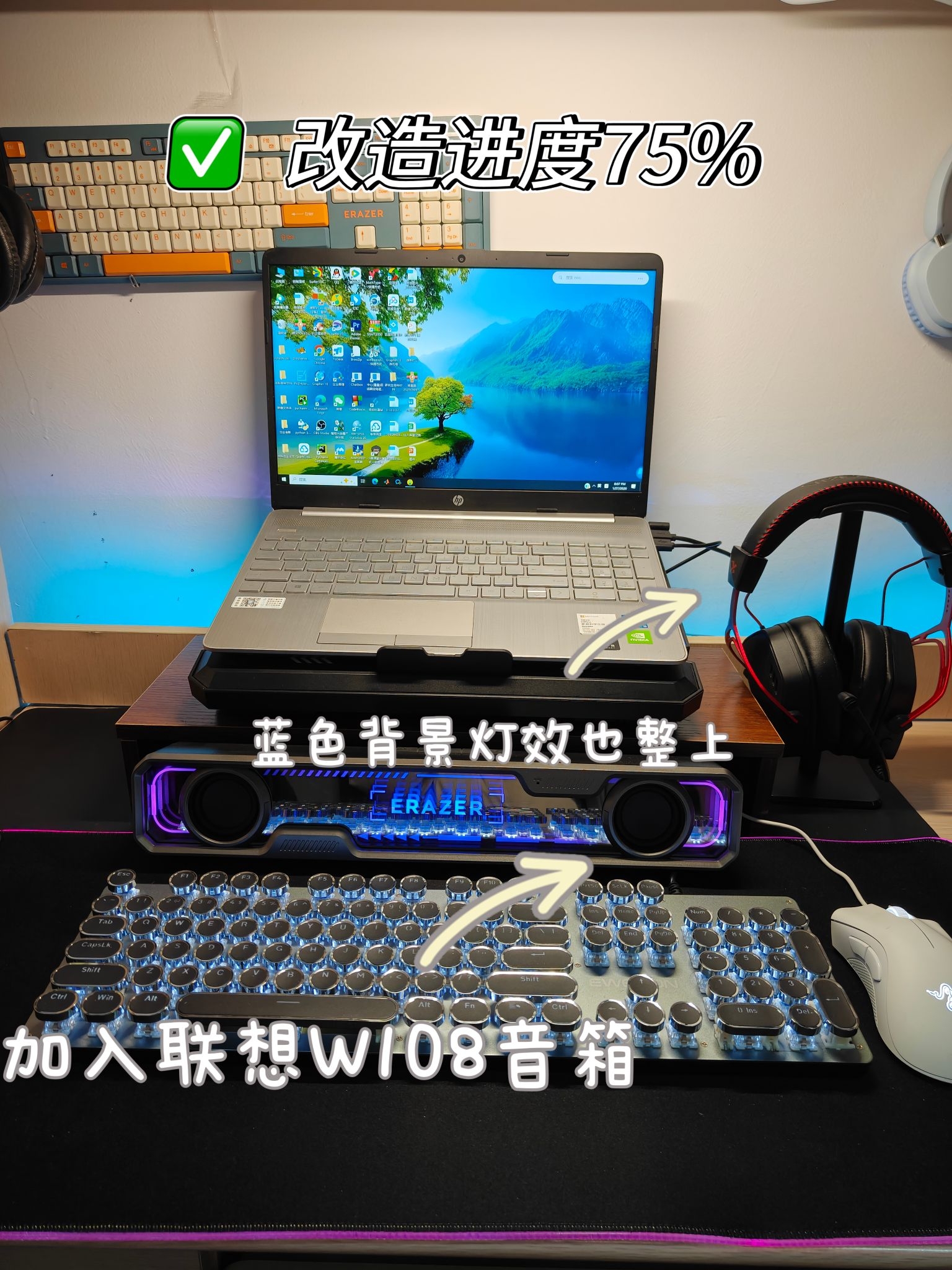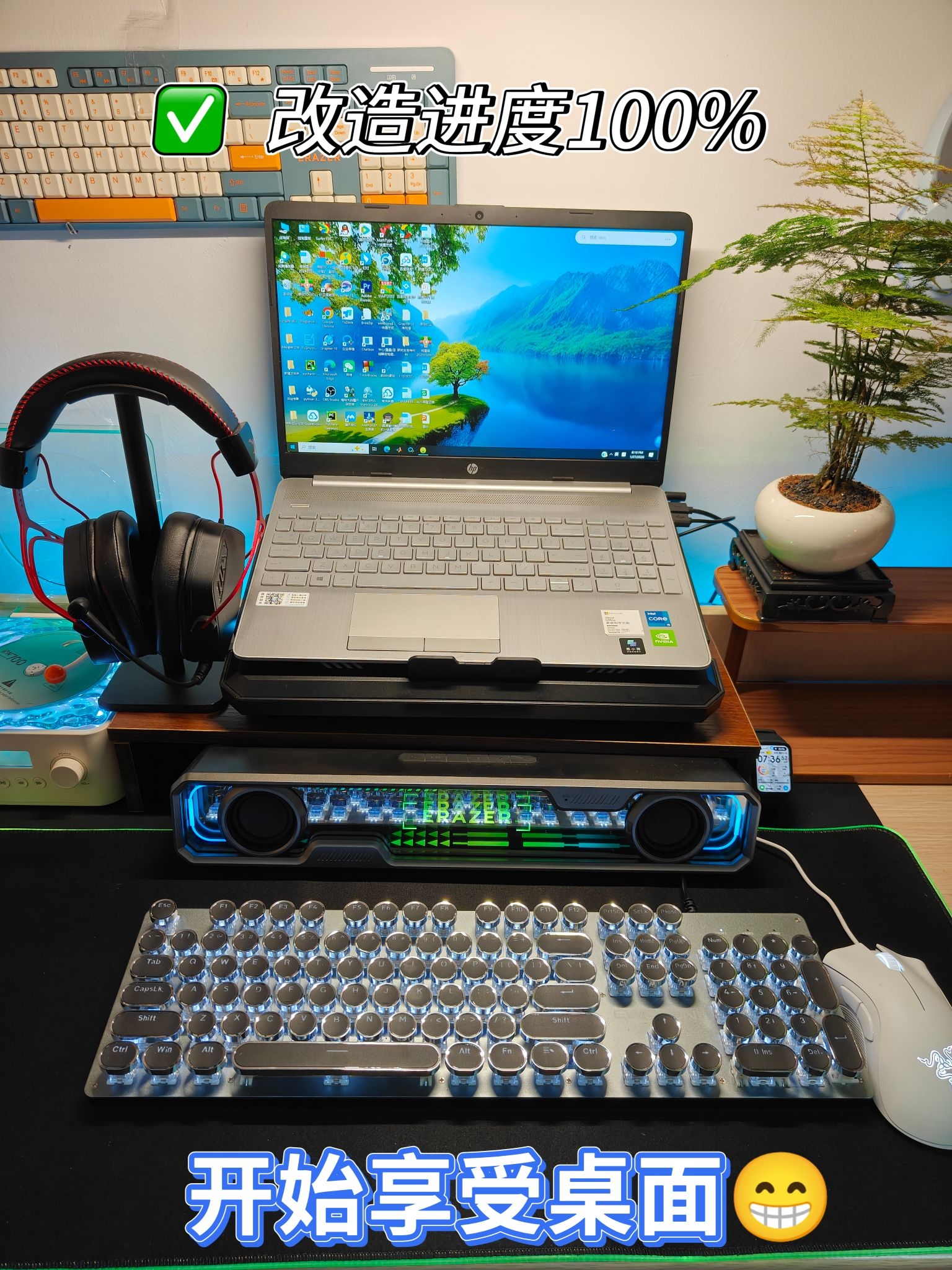 ⭐没有丑桌面,只有懒主人❗❗❗ ⭐兄弟们赶紧和我一起行动起来,没有方向可以直接抄我的😁😁 💻电脑:HP惠普 星Book 15 (●主要看自己需求,如果日常办公这款就够,如果打游戏可以入手游戏本) ⌨️键盘:前行者TK100 (●建议选择带rgb灯效的,我这款有白色灯效,看起来很闪,而且延迟低) 🔇电竞音箱:联想音箱 W108 (●建议买这种长方形带灯效的,我这款有深渊镜像灯效,电竞感很强,...