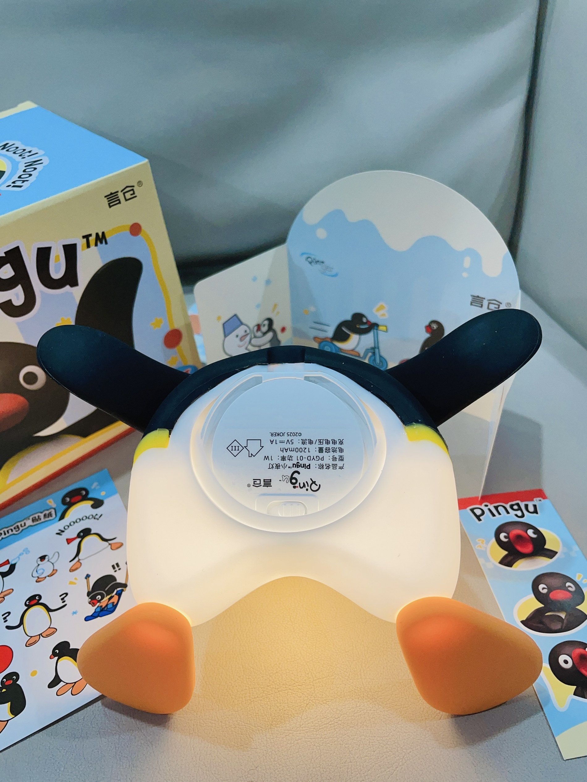 下个月就是春节了过年啦🧨 准备要回老家过年咯 我给自己安排了新的小夜灯 言仓×PINGU这款坐姿拍拍灯好可爱啊 有三档可以调节 拍一拍就会亮 细节做的可以 我感觉hin不错 还可以追剧的时候当手机支架 礼盒包装精致 春节情人节送礼都可