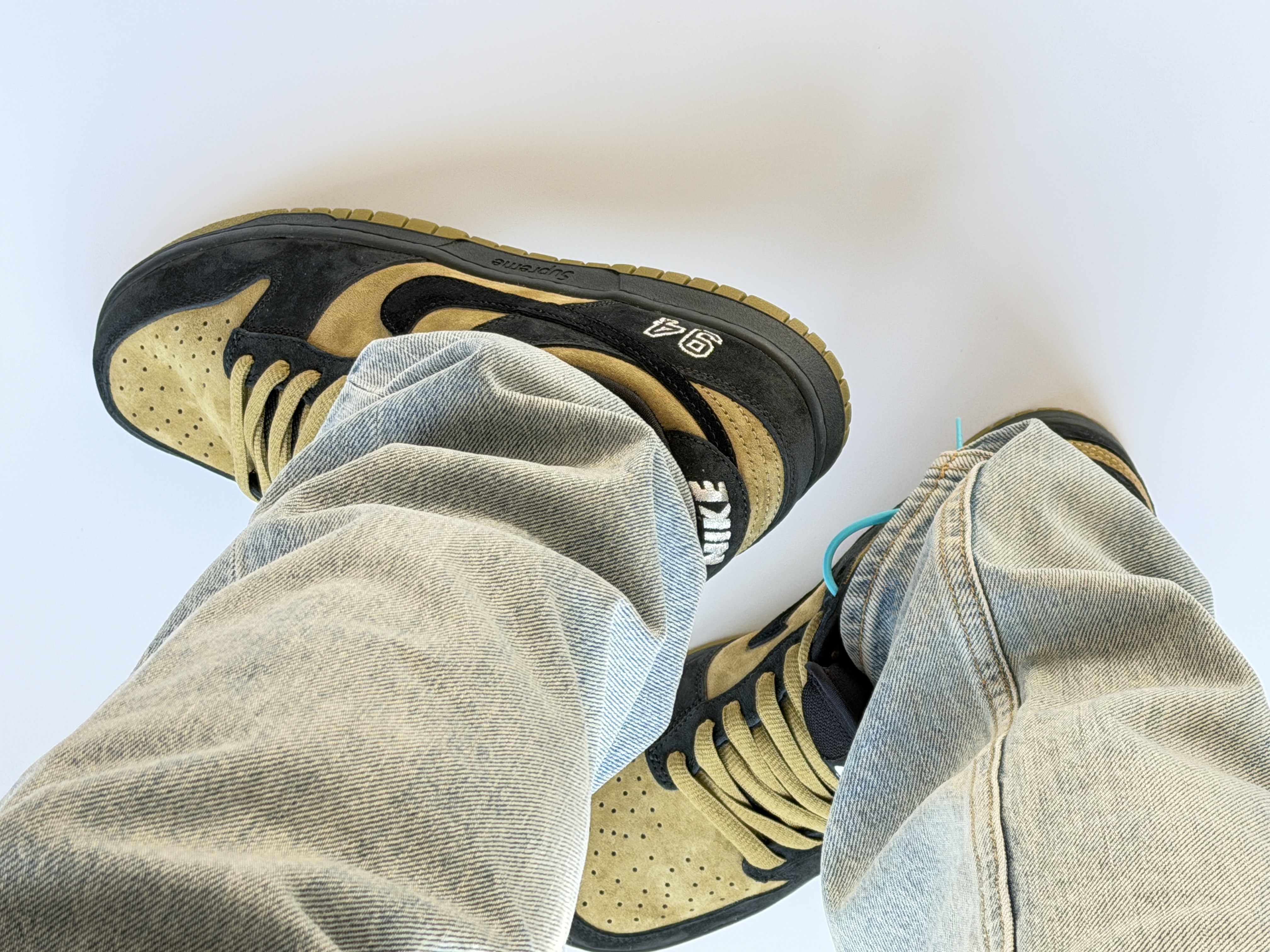SUP亚洲限定dunksb在地区限定里颜值也是超能打!黄绿配色搭配蛮舒服协调,翻毛皮质感是真的好,这次用到了老dunksb鞋底整体鞋型也回来了,穿搭上也是蛮简单的,搭配做旧牛仔裤就超对味儿!