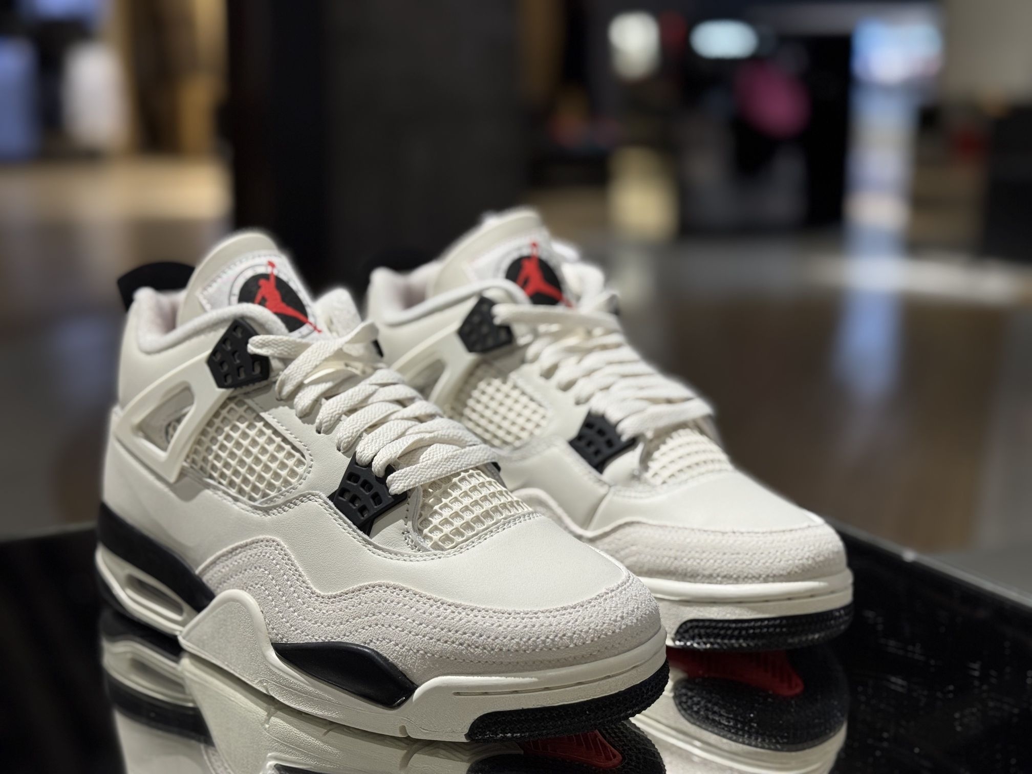 终于蹲到这双AJ4“Pale Ivory”! 拿到实物的那一刻直接被美晕了✨ 🔍细节党狂喜 - 米白色麂皮+网眼拼接,自带温柔的复古氛围感 - 经典的黑色塑料框架和后跟点缀,层次感直接拉满 - 鞋舌飞人Logo+后跟的小细节,低调又有辨识度 💡百搭王者 - 日常配牛仔裤/运动裤,松弛感直接拿捏 - 搭短裙+堆堆袜,甜酷辣妹风一秒get - 通勤穿也完全不违和,舒服又显腿细