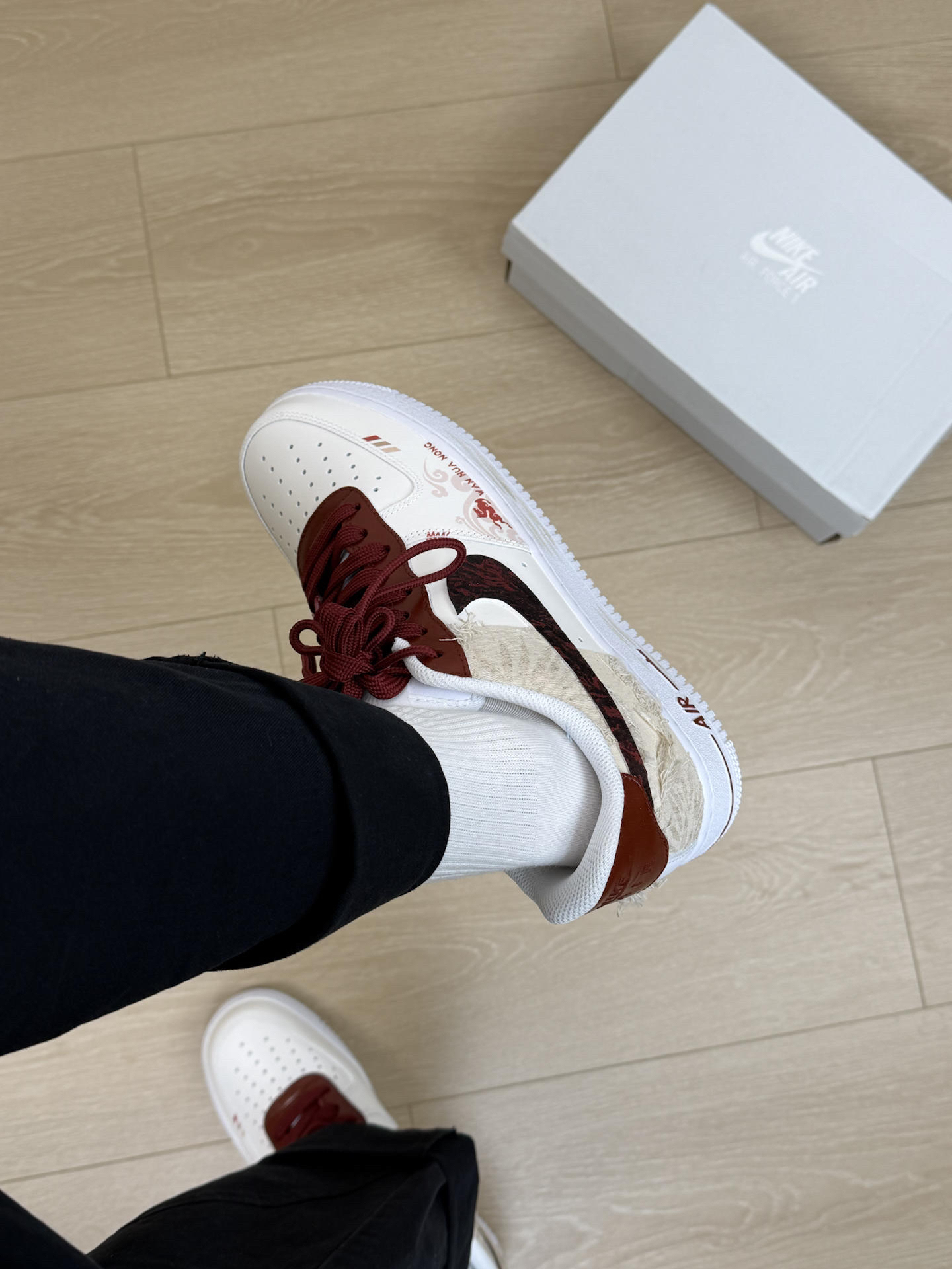 新鞋美美过年 分享一双特别小众 但很有设计感的AF1马年限定配色~ 鞋身配色看起来很简约 就米色和红色点缀 不过细节特丰富 鞋头的小马涂鸦、后跟处的破坏流苏 还有钩子上的贴布 以及小串珠点缀 上脚穿起来还是很好搭配的 简单搭条工装裤蛮合适 又有一些喜庆感 就是尺码略微偏大 脚瘦的可以选小半码 #马年限定穿这双 #穿新鞋美美过年 #这双鞋很百搭 #Nike马年限定 #万花弄