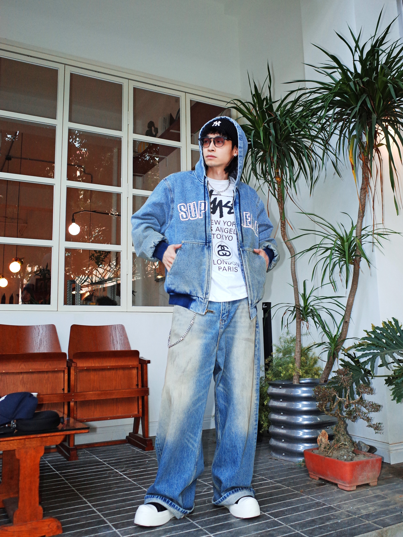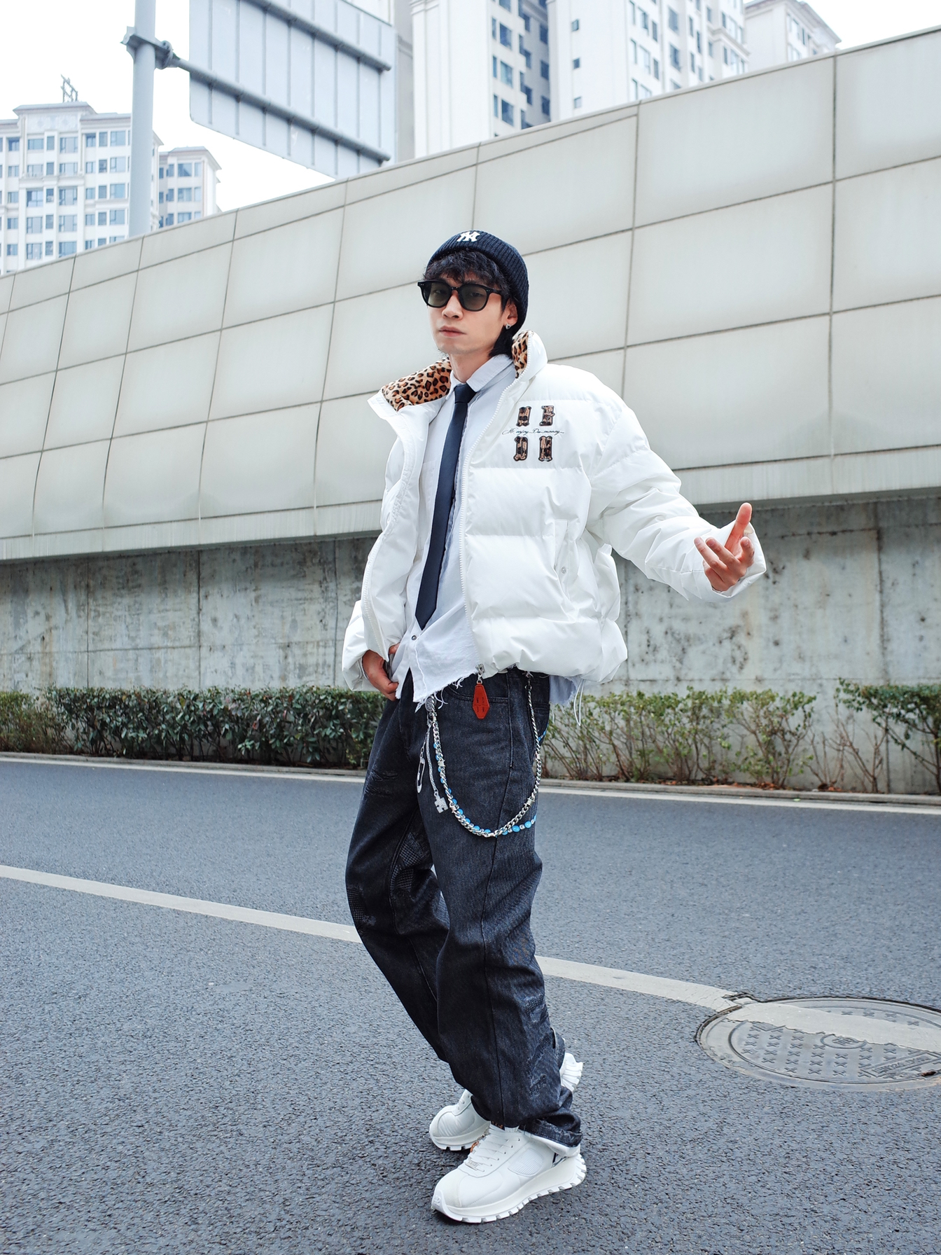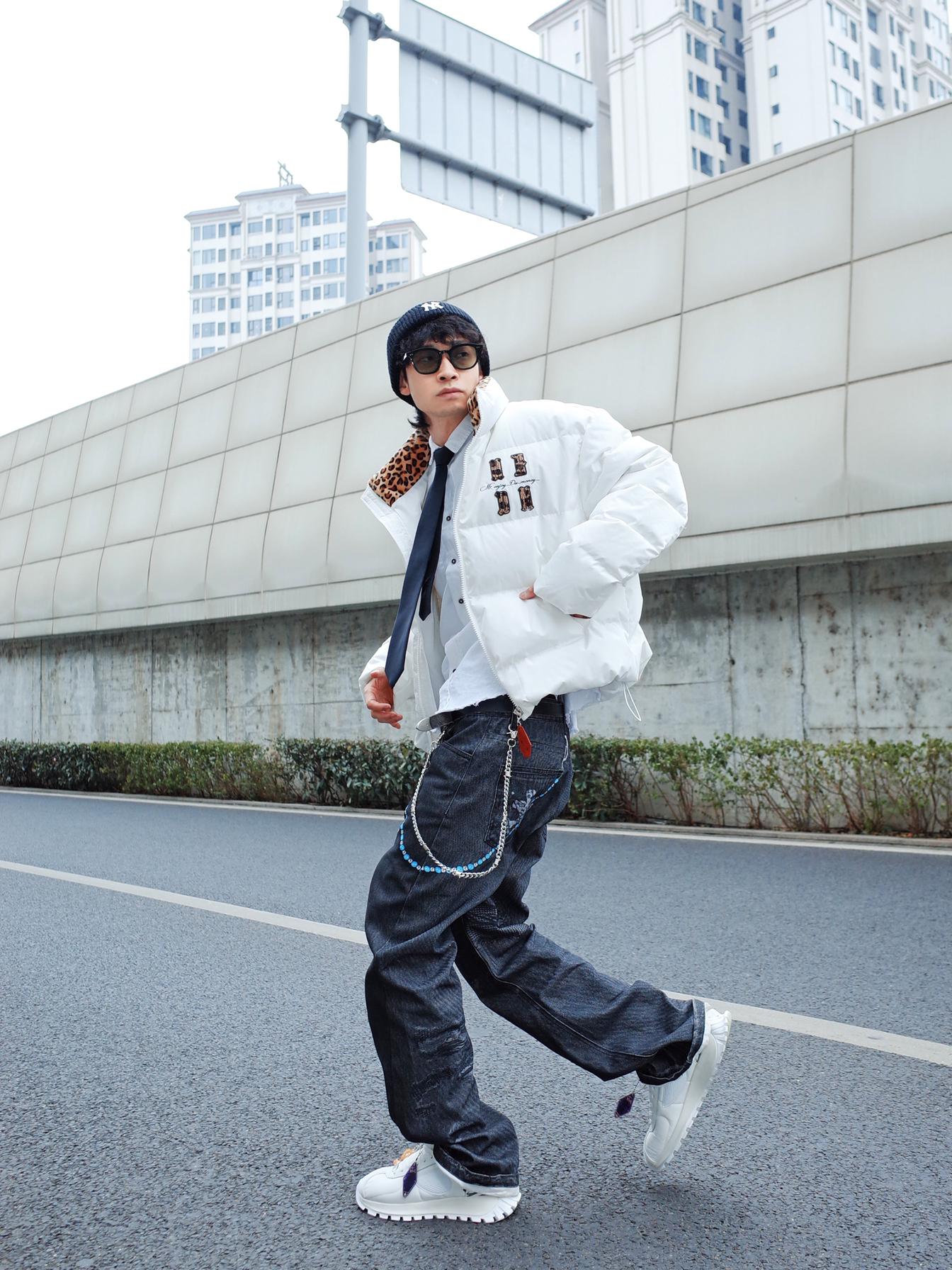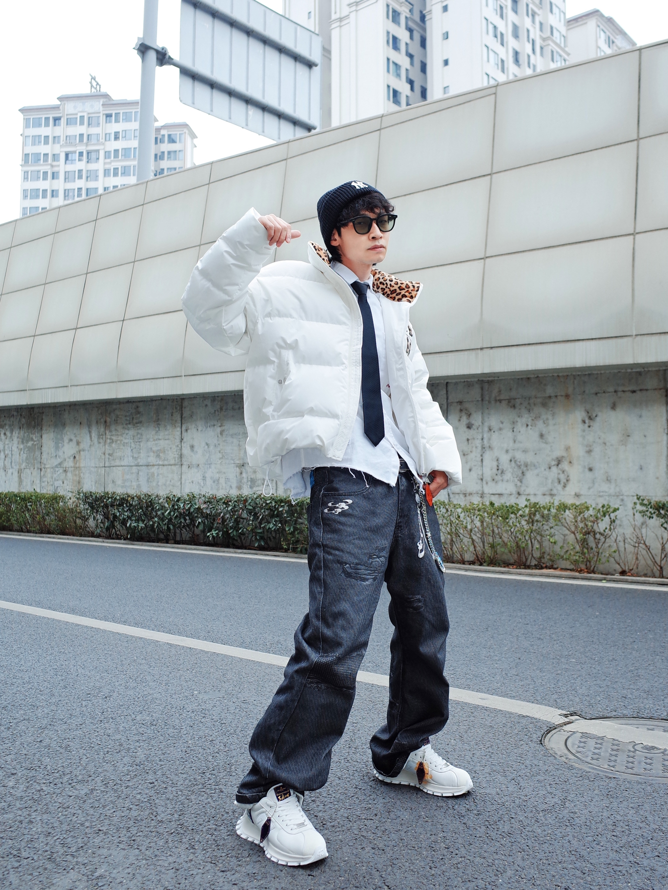 作为单身人士, 情人节就是从头到脚给自己换新! 上身一件🐆豹纹元素的白色羽绒服, 💔心冷的节日也不能冷了自己, 搭配一条印花牛仔裤, 上下宽松的版型自带松弛感✨ 踩一双白色阿甘鞋收尾, 上脚轻便,厚底显高👀 财神的主题也给了新年美好的寓意💥 毕竟给老己的浪漫不缺席!
