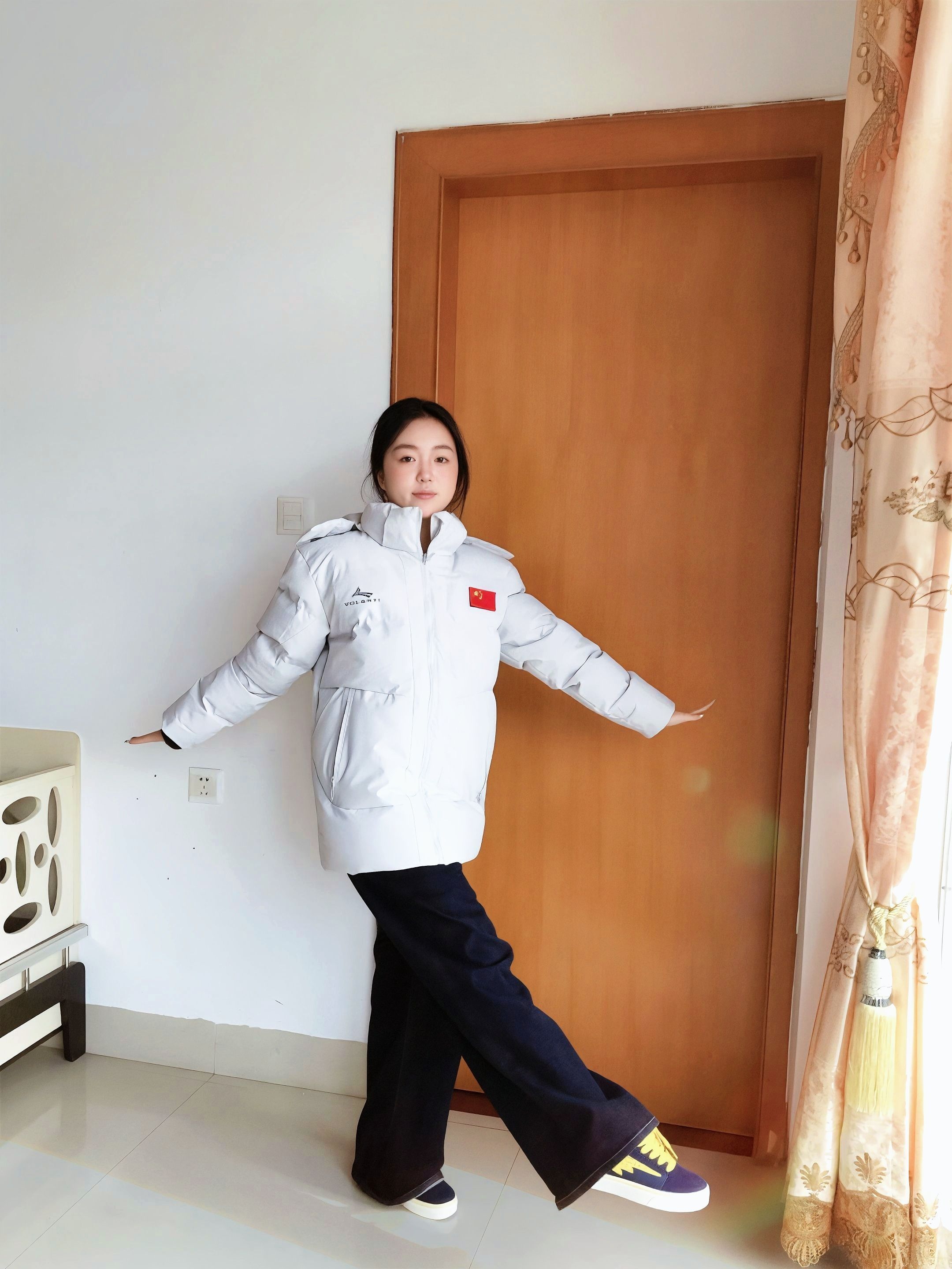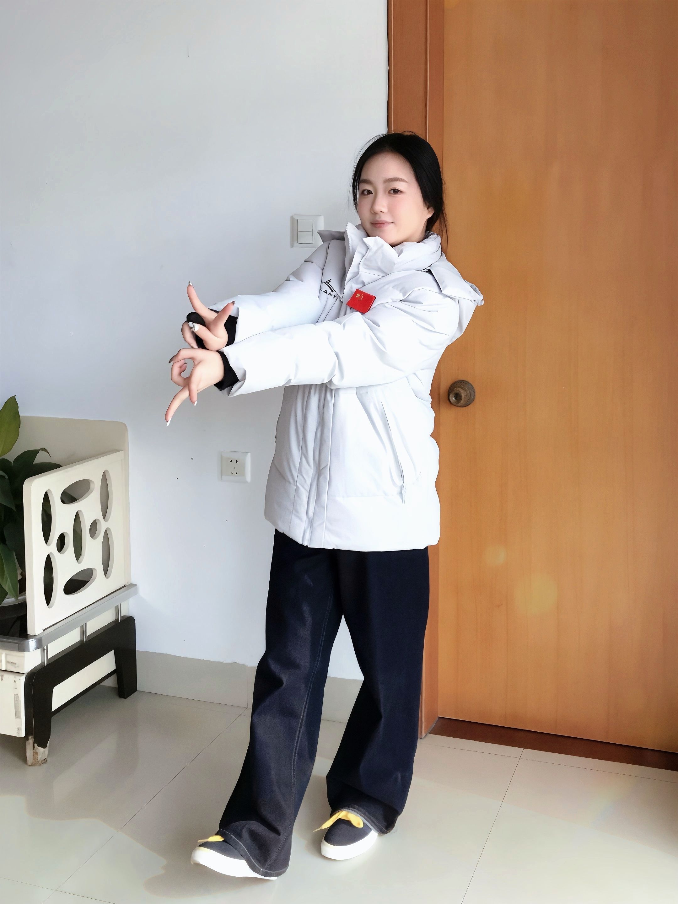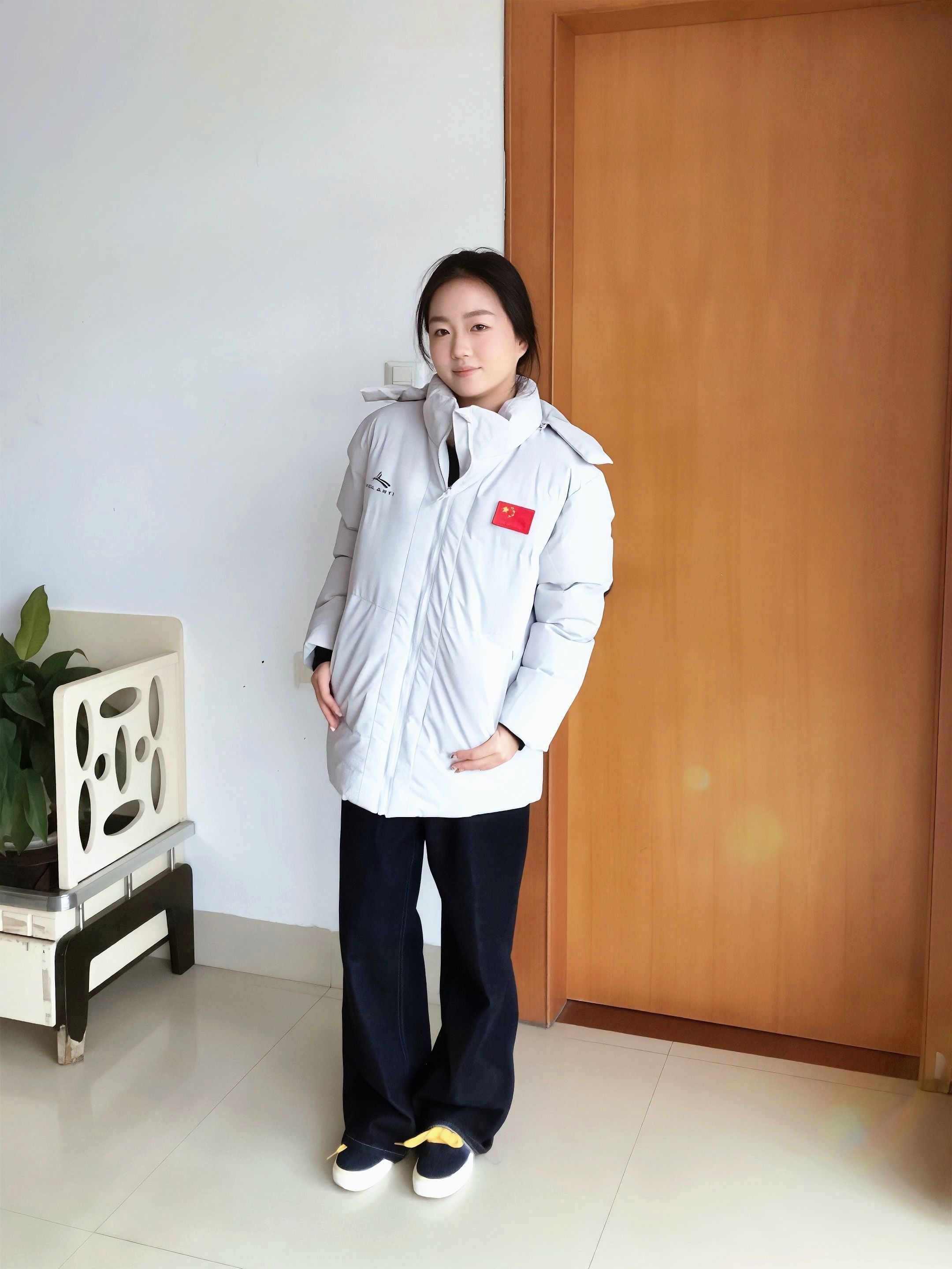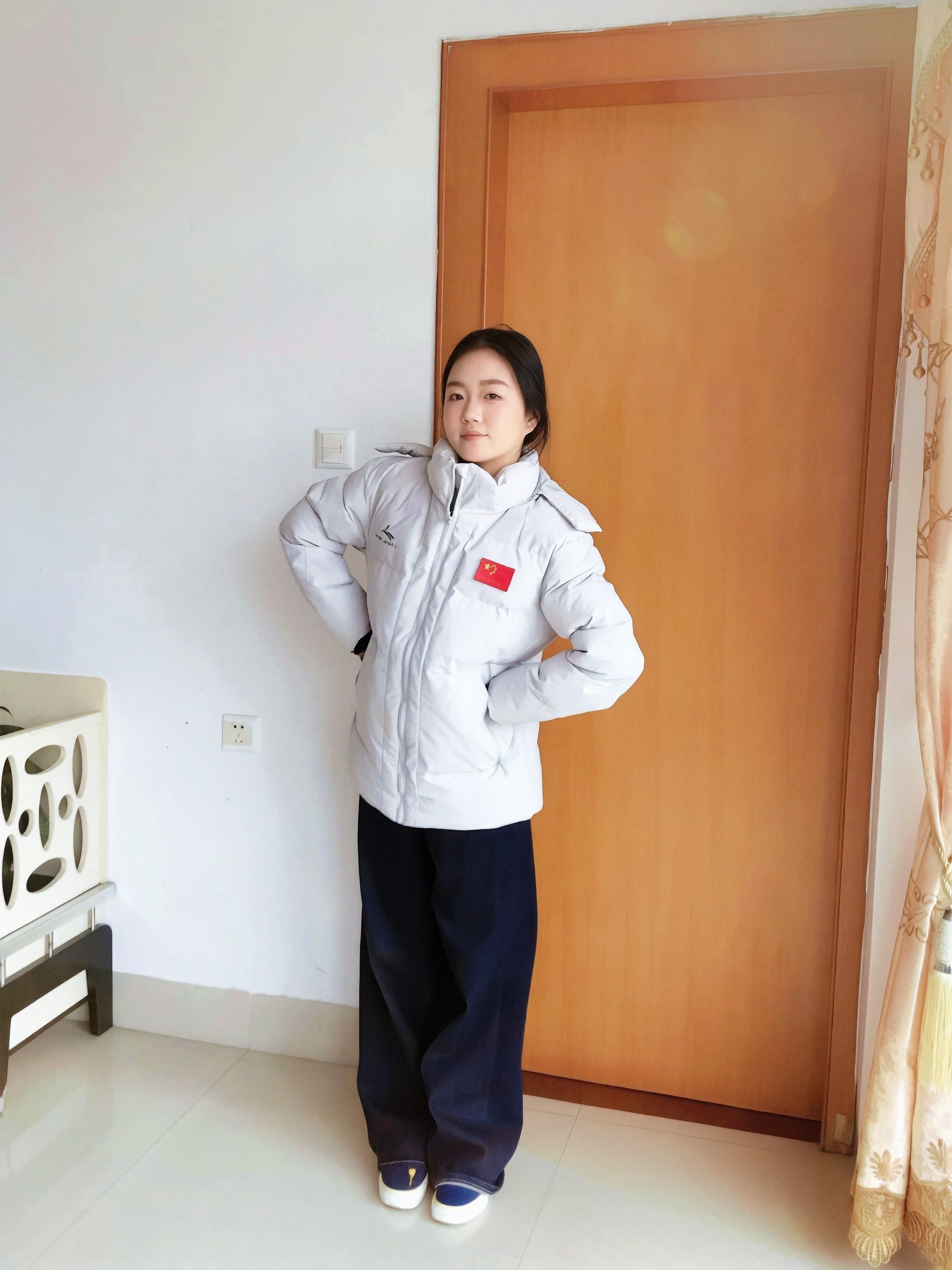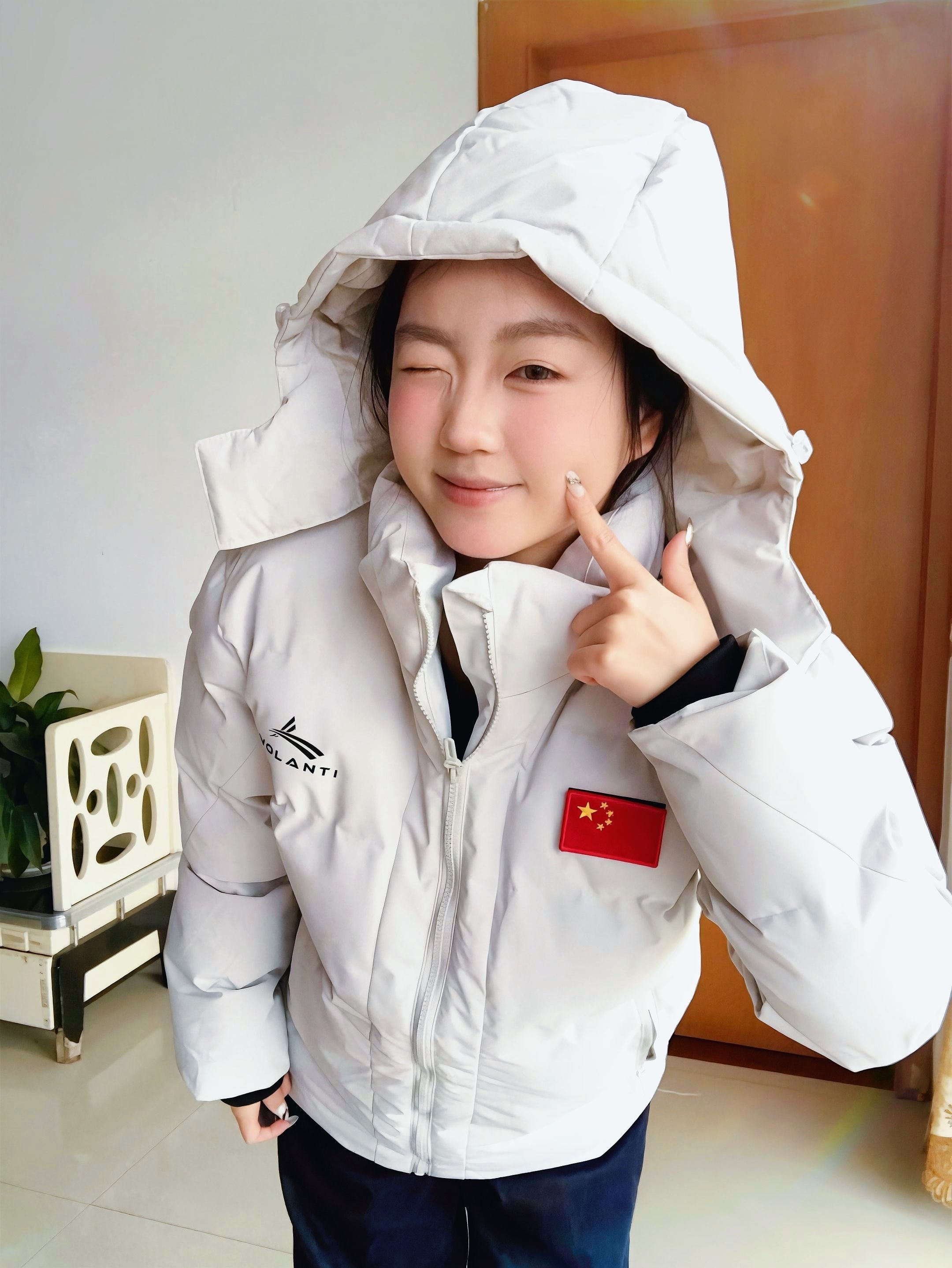 没有暖气的南方 冬天真的冷的刺骨🥶 还好有沃兰迪的这件棉服夹克陪伴 整体是白灰色,简约大气的同时又不容易嫌脏👍 胸前logo➕红色🇨🇳点缀很亮眼🤩 超适合体育生 背后金标logo低调但不失精致 上身超级保暖,虽然是棉服夹克,但是上身没负担也不会显臃肿,版型很正🌟 最喜欢的是帽子设计,拉链式的可拆卸,不用一颗一颗扣扣子,拉链很顺滑~ 👧:155/95 S码 很合身
