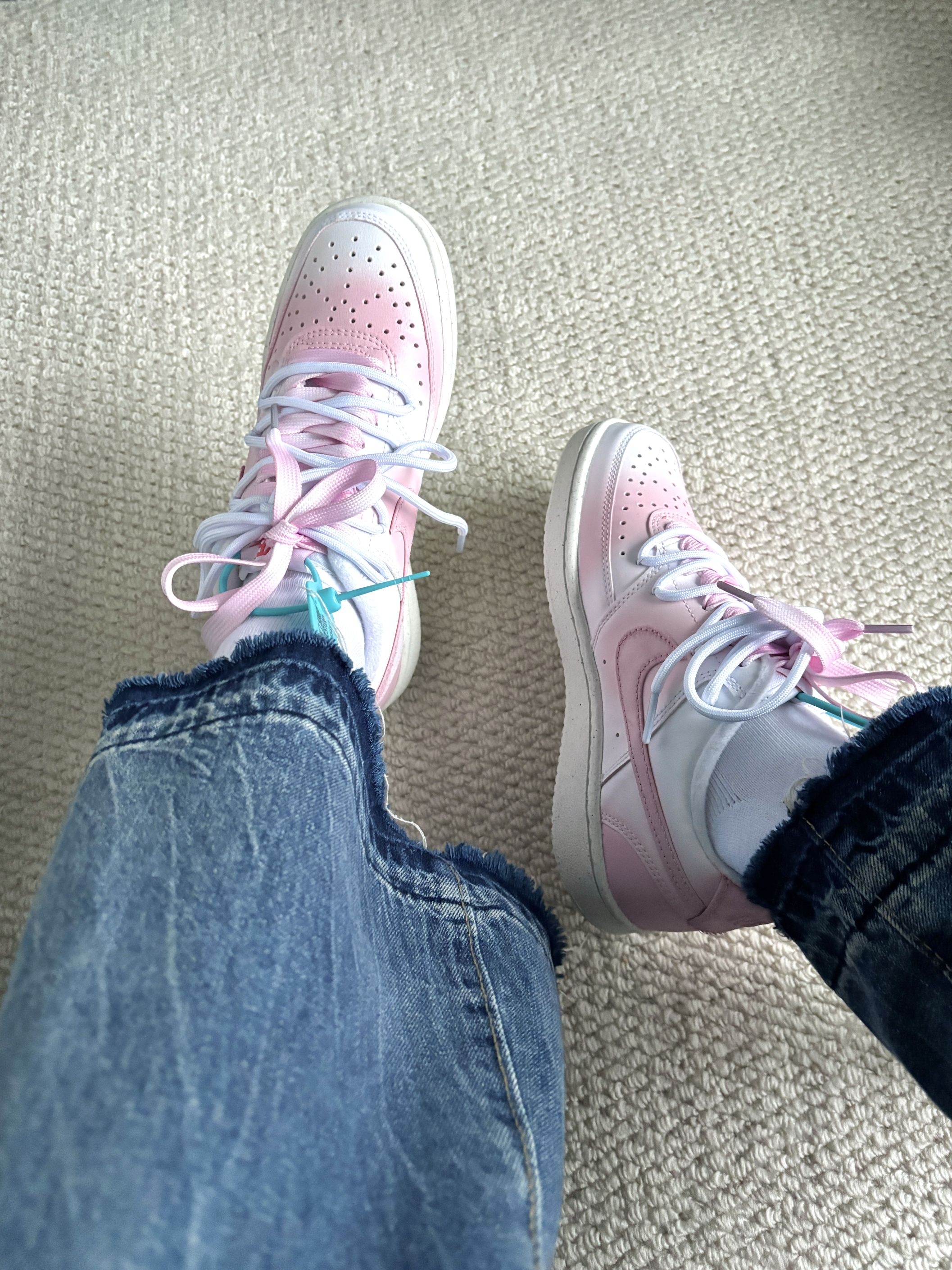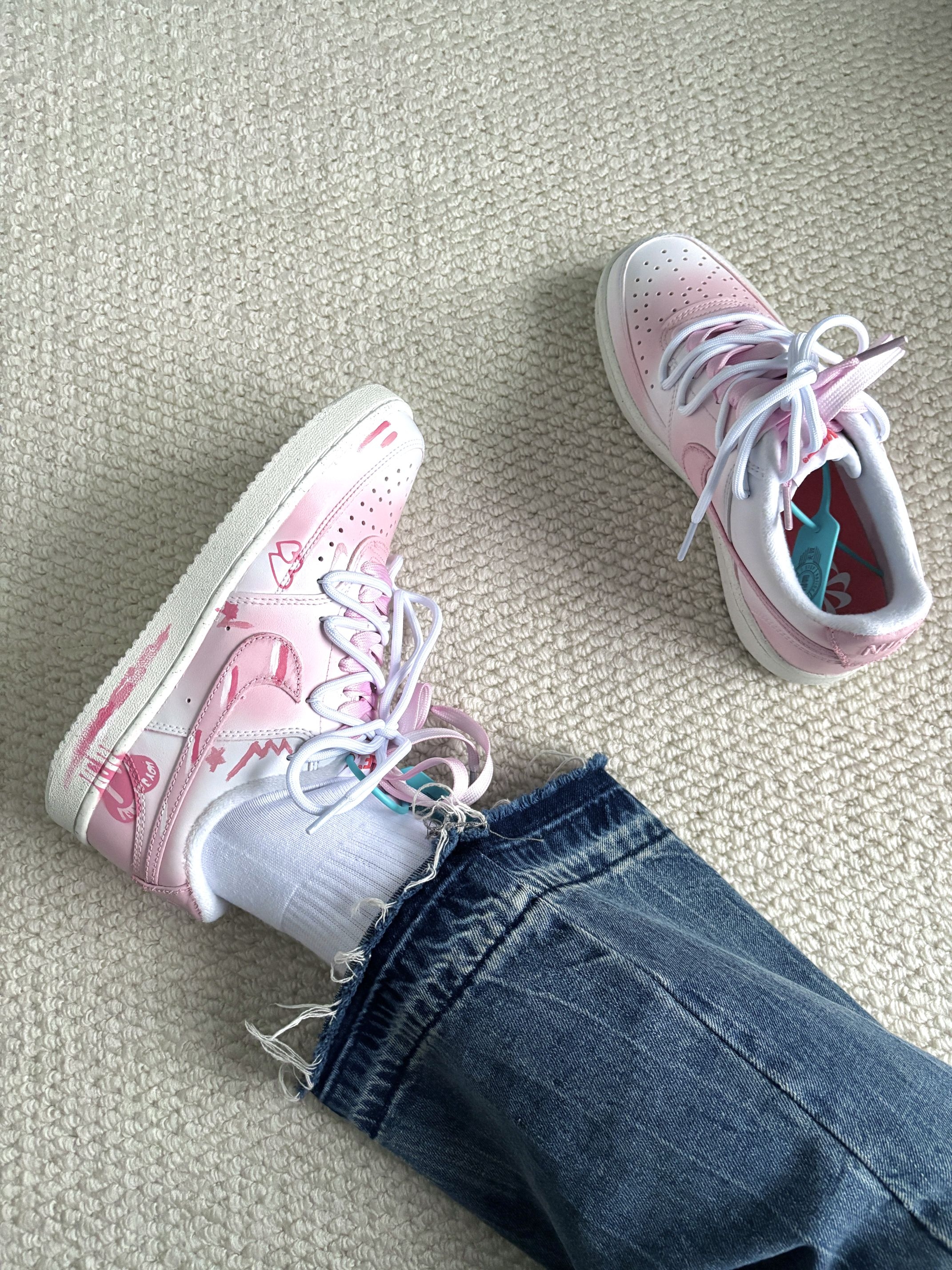 这双渐变粉涂鸦鞋🎀送女朋友最适合不过了💥 🌸樱花般的渐变粉➕俏皮可爱的粉嫩涂鸦🎨把糖果般的浪漫踩在脚下💓粉白配色温柔又甜美 对介双鞋真是毫无抵抗力❗️ 穿起来脚感很不戳👍正常码数 不大也不小 双鞋带设计 适配多种风格 搭配短裙 俏皮可爱💖 搭配牛仔裤👖 秒变甜酷辣妹