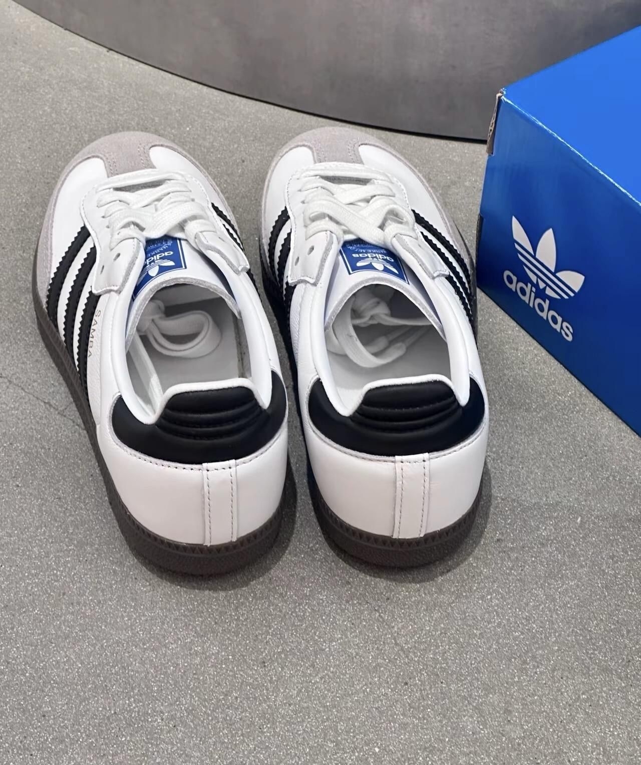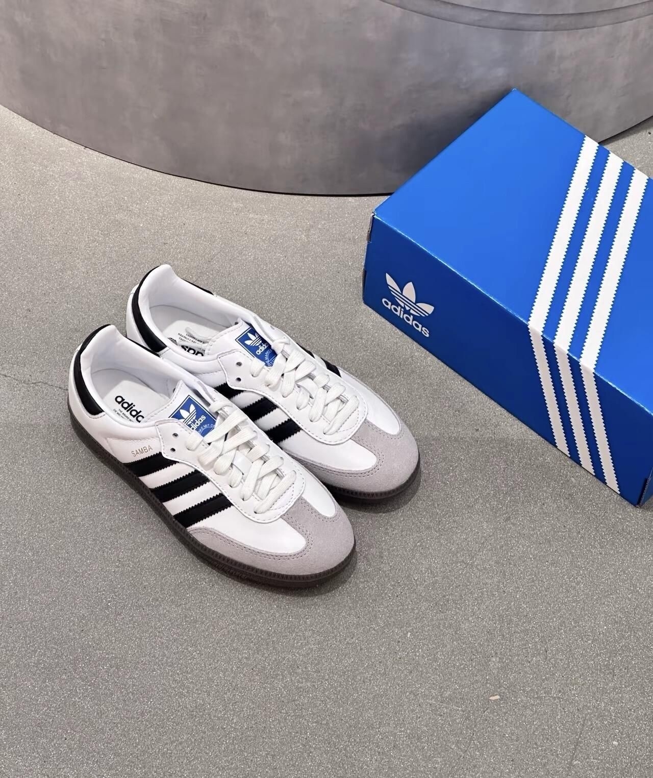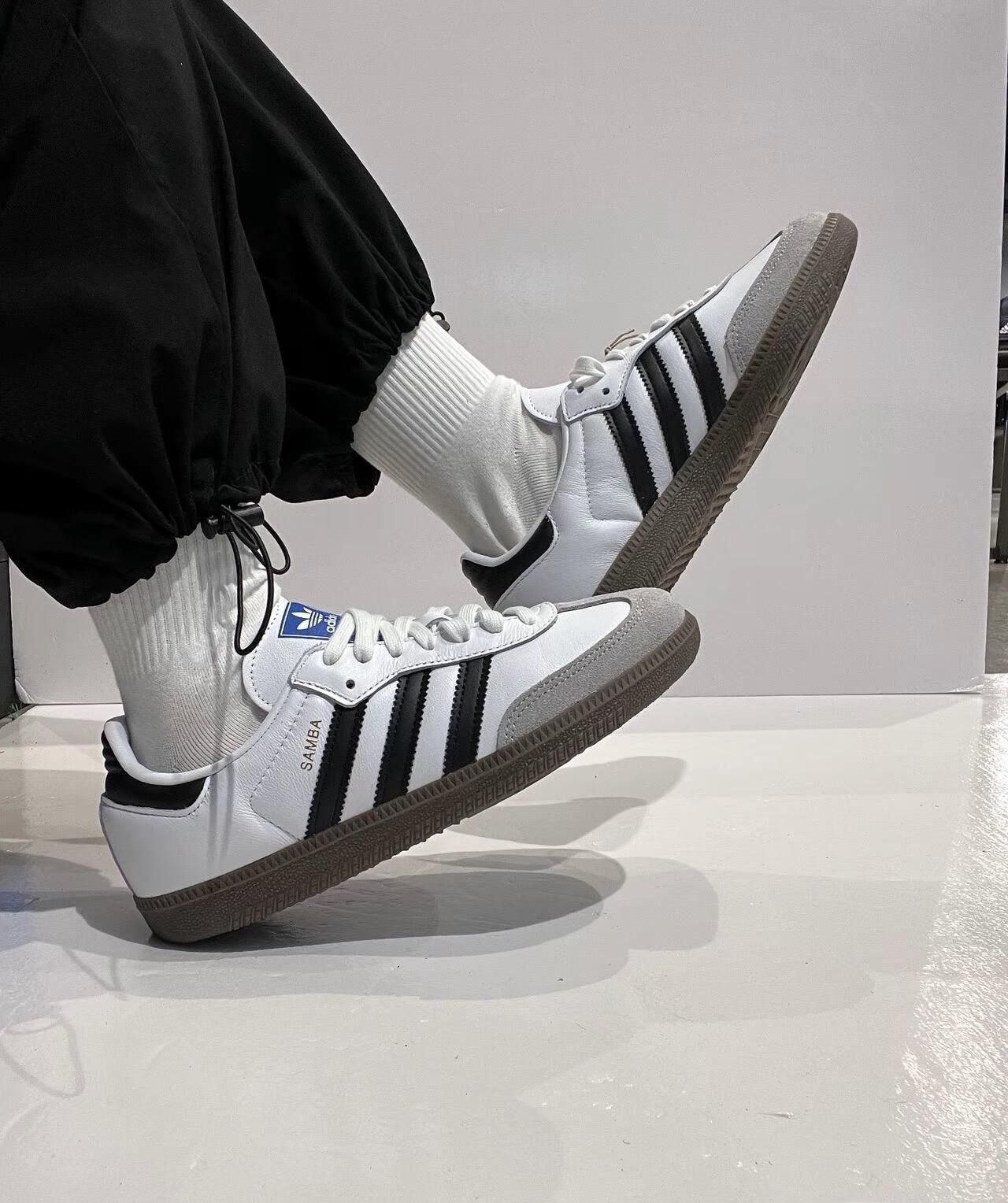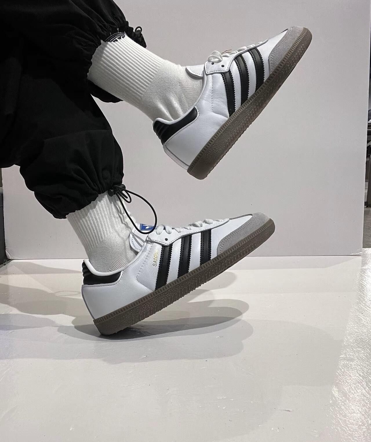 纯净白色皮革鞋面,邂逅标志性黑色三条纹,一抹灰色细节勾勒鞋头与后跟——这双adidas Samba不止是鞋,更是跨越时代的风格宣言!🔥 🌟 亮点聚焦: • 经典白黑灰配色,轻松驾驭任何穿搭场景 • 鞋舌蓝色adidas Logo点睛时尚辨识度 • 舒适皮革材质+复古鞋型,街头与休闲无缝切换 无论漫步城市或闪耀社交场,Samba以低调细节释放高级质感✨ 即刻穿上它,让每一步都成为潮流注脚