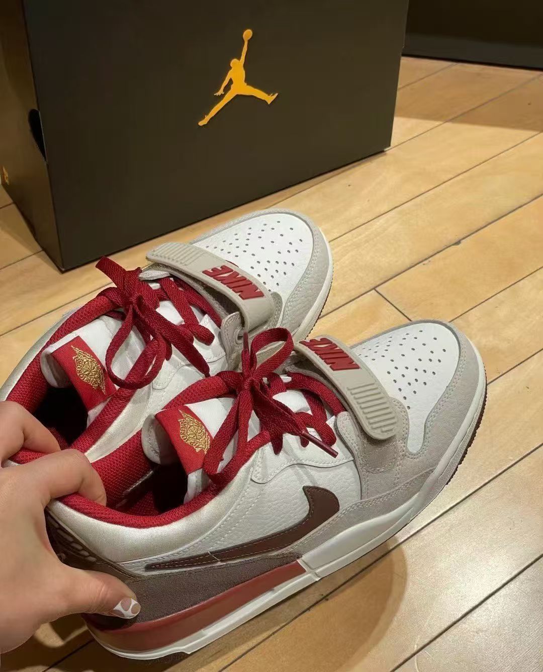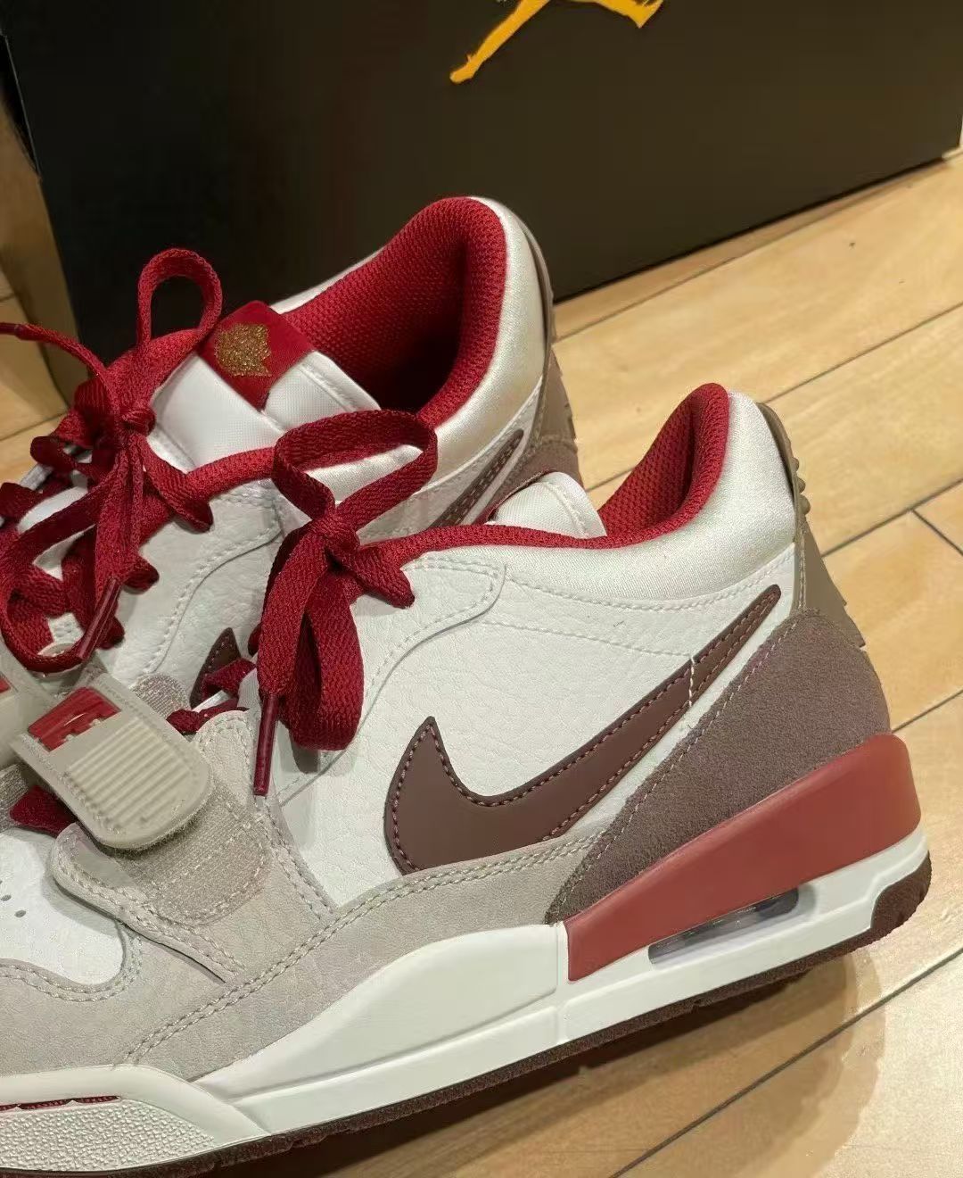 入手这双Jordan Legacy 312马年限定米红款太值了!低帮版型超百搭,米红配色新年穿氛围感拉满,鞋身的生肖细节质感超赞。鞋型很贴合亚洲脚,魔术贴能微调松紧,包裹感刚好不压脚,鞋口海绵厚实,走一天路也不磨脚踝。后掌气垫软弹,日常通勤脚感很舒服,橡胶大底防滑耐磨,复古篮球鞋的支撑感也在线。皮质鞋面挺括有型,就是弯折处会有自然褶皱,建议宽脚高脚背的朋友选大半码。秋冬穿透气性刚好,新年出街穿搭颜...