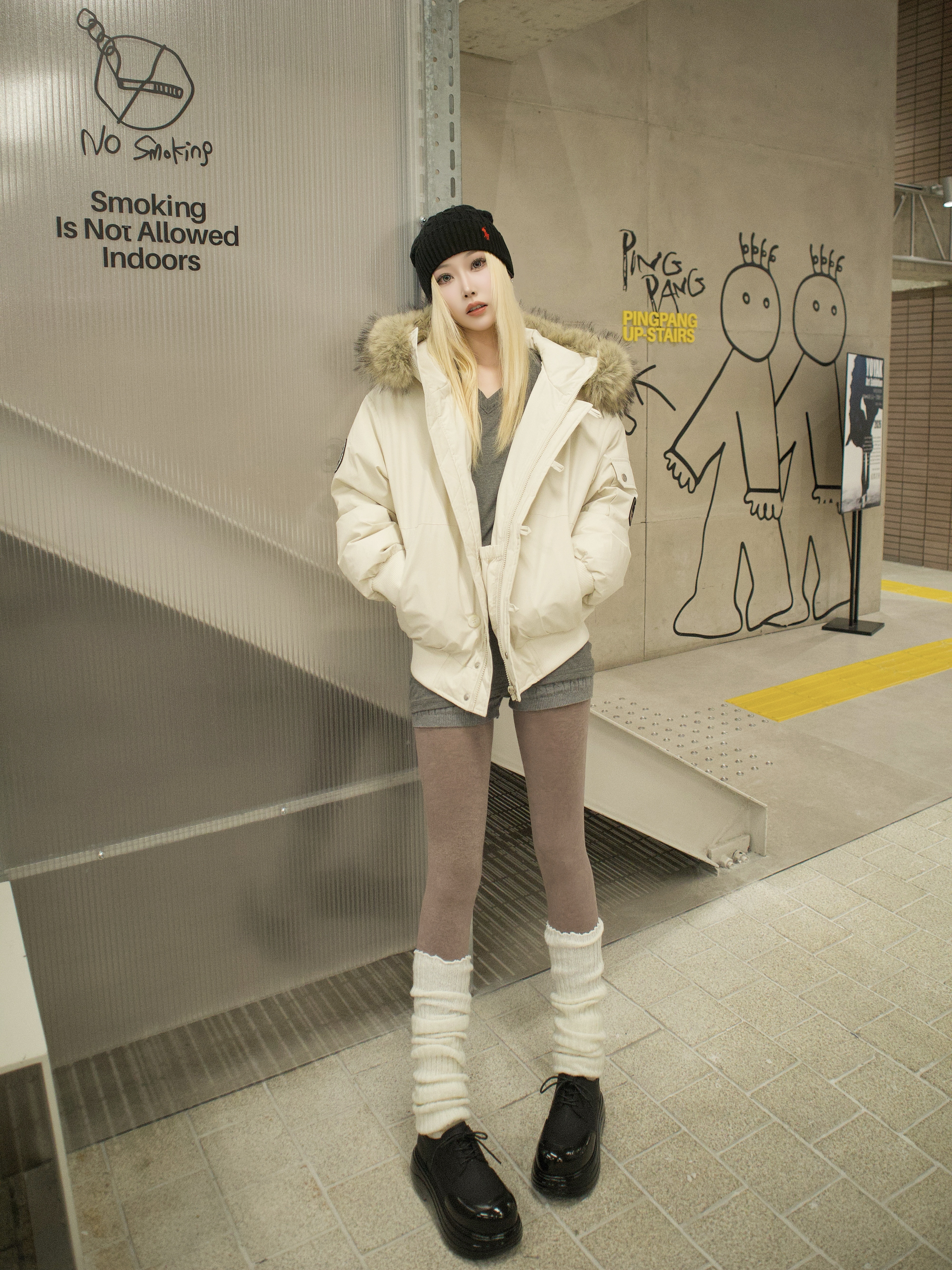 冬天❄️一件米白派克服太绝了 大毛领一裹直接变冬日泰迪熊🧸 宽松版型藏住一切内搭 男女同款的好处是能抢对象外套穿👥 内搭灰T配针织短裤妙啊 咖色连裤袜衔接得刚好 🧚♂️白色堆堆靴一穿 腿长立刻拉满 配黑色拼色松糕鞋直接封神👡 厚底悄悄增高 泡芙设计软萌萌 突然觉得冬天不用裹成熊 当个毛茸茸的米白团子 照样能暖呼呼地横着走