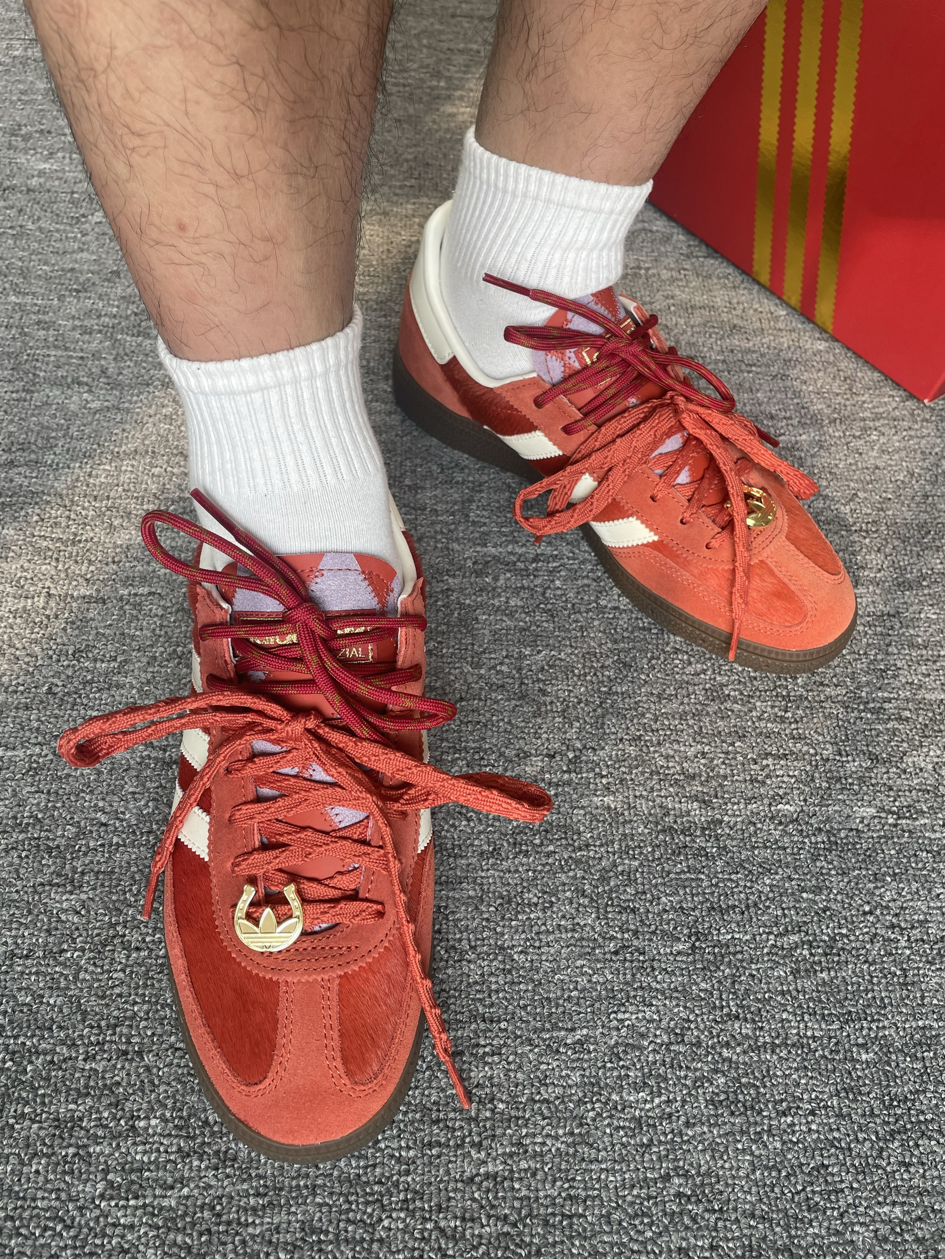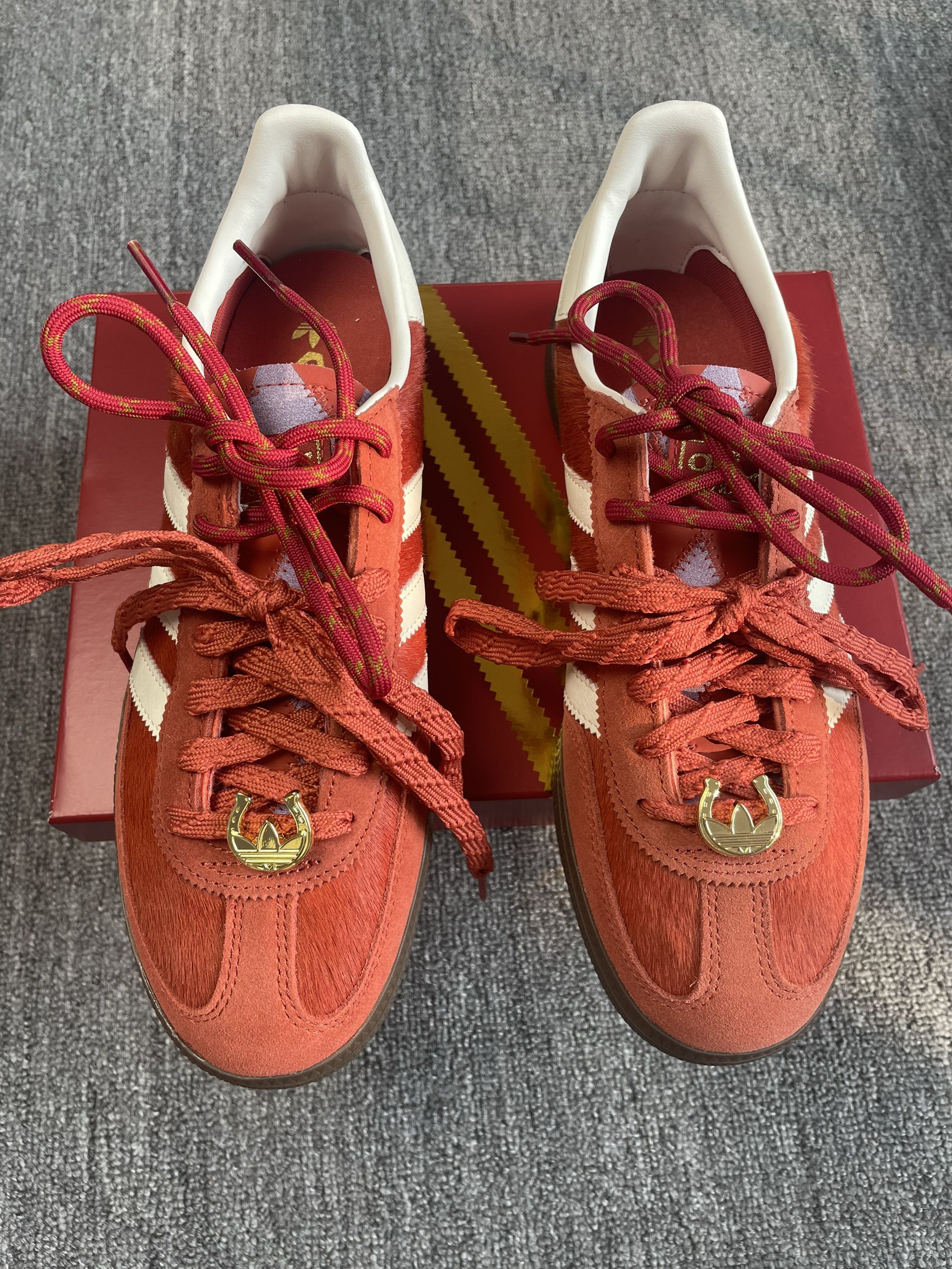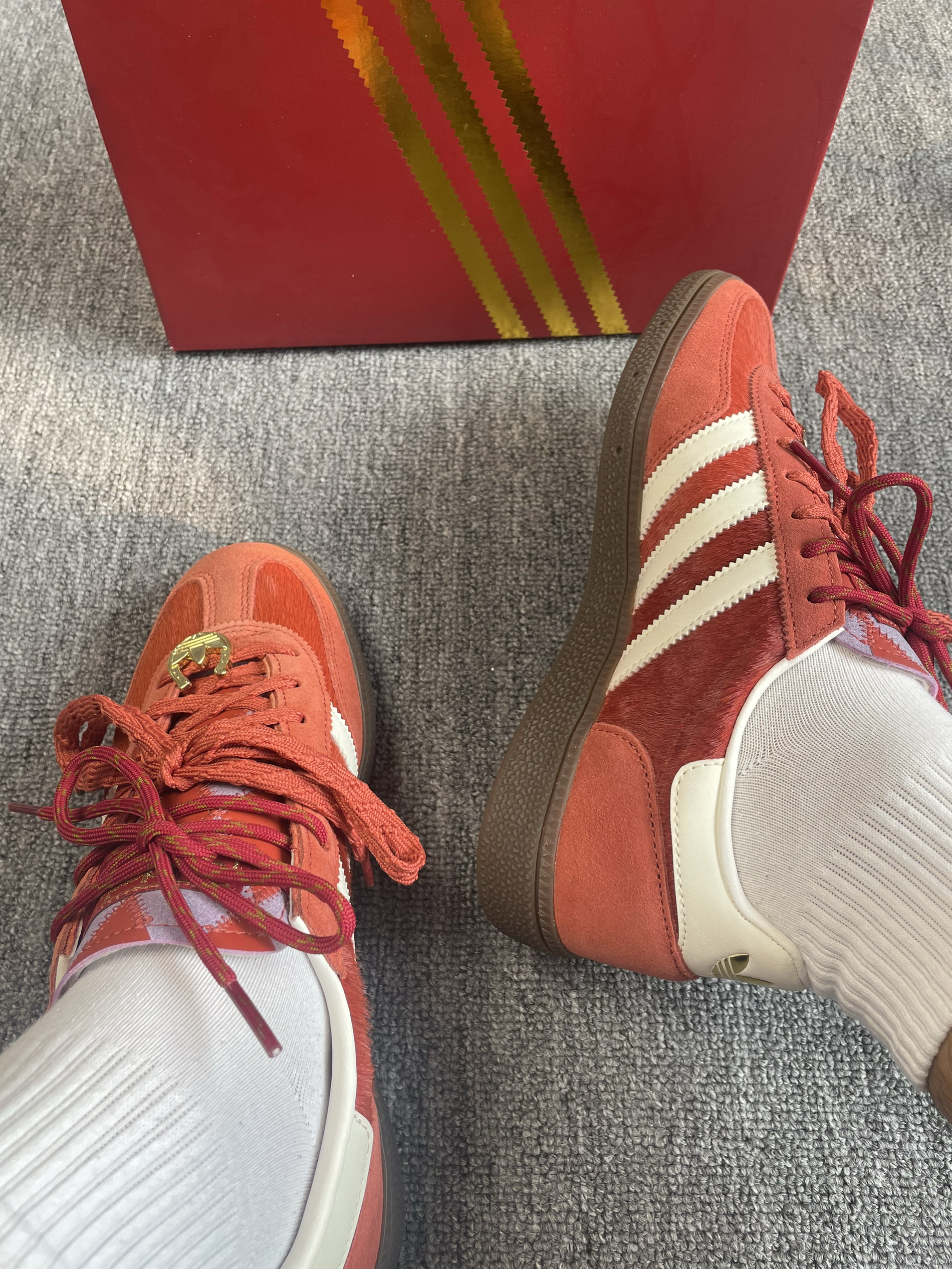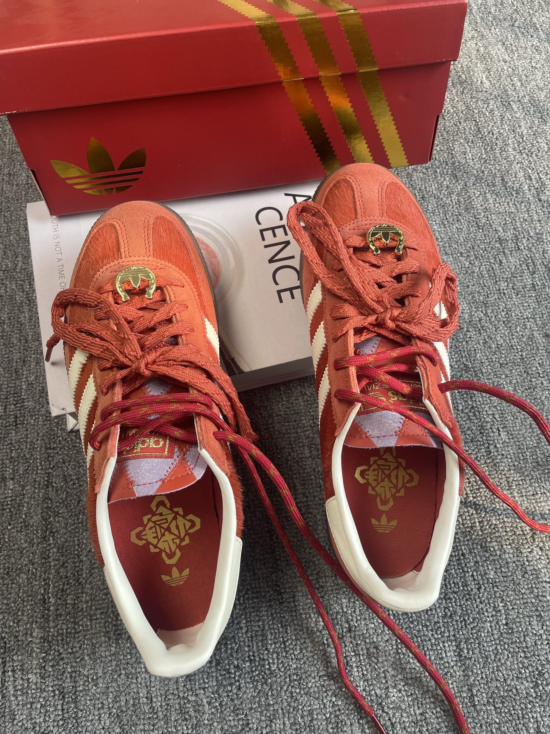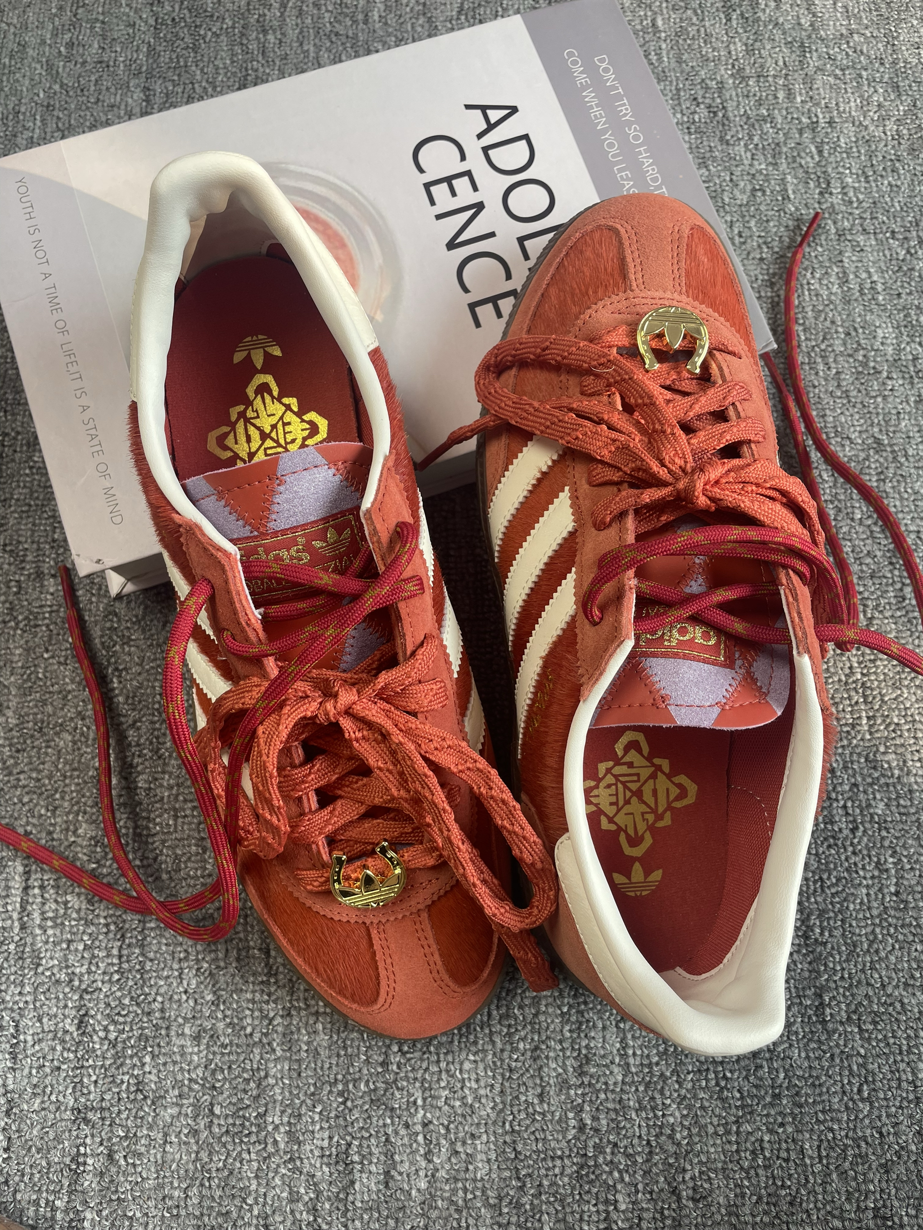 既然是马年限定,那这份红自然调得极有分境。第一眼看到实物,最直观的感受就是精致。鞋身大面积使用了细腻的麂皮材质,触感温润,那种复古的红色并不张扬,反而透着一种中式美学的喜庆与高级。侧边原本低调的线条,在马年元素的点缀下,多了一份灵动感。相比于流水线上的普通款,这双鞋在细节处的走线和刺绣确实下了一番功夫,不仅契合新年的氛围,更像是一份送给自己的开年礼物。🧧 作为德训鞋底层的经典,脚感舒适是它最扎实的...