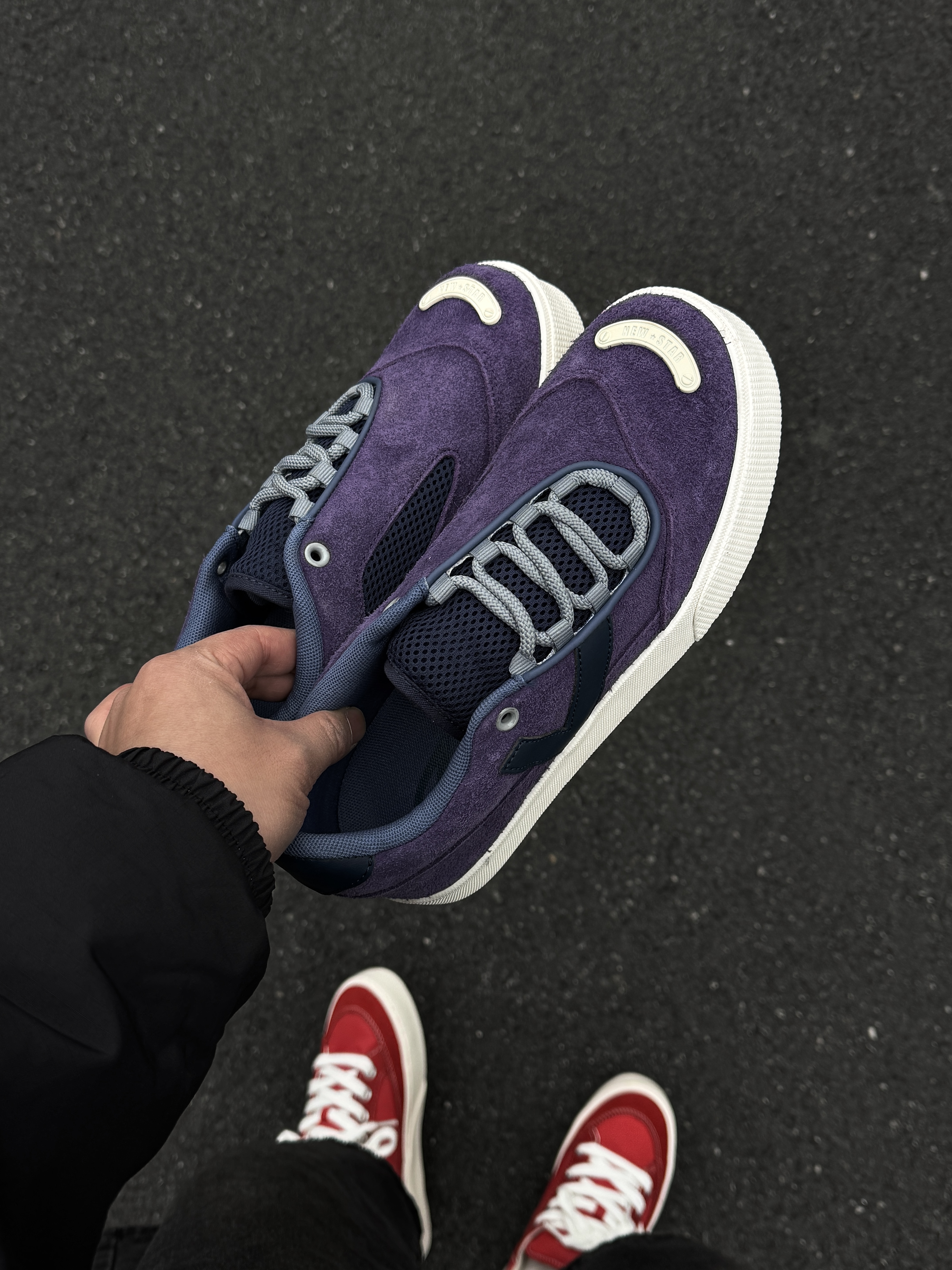 ~ 给大家分享两双 #维动 VEIDOORN 的帆布板鞋👟 红色这双是维动启星1.0 比较基础款的版型➕红色新年元素🕹️ 徐哥还是比较喜欢的 紫色这双是维动启星2.0 相比于红色的1.0会更加的有设计感 鞋头是做了类似于弯头鞋的设计 还有个白色圆弧的拼接 整双鞋上脚就是比较显脚🦶🏻瘦的鞋型 像我日常常穿的牛仔裤和迷彩裤都挺不错的 新年当然得两双都穿大红大紫了👏🏻 尺码小建议: 徐哥平常穿的40这...