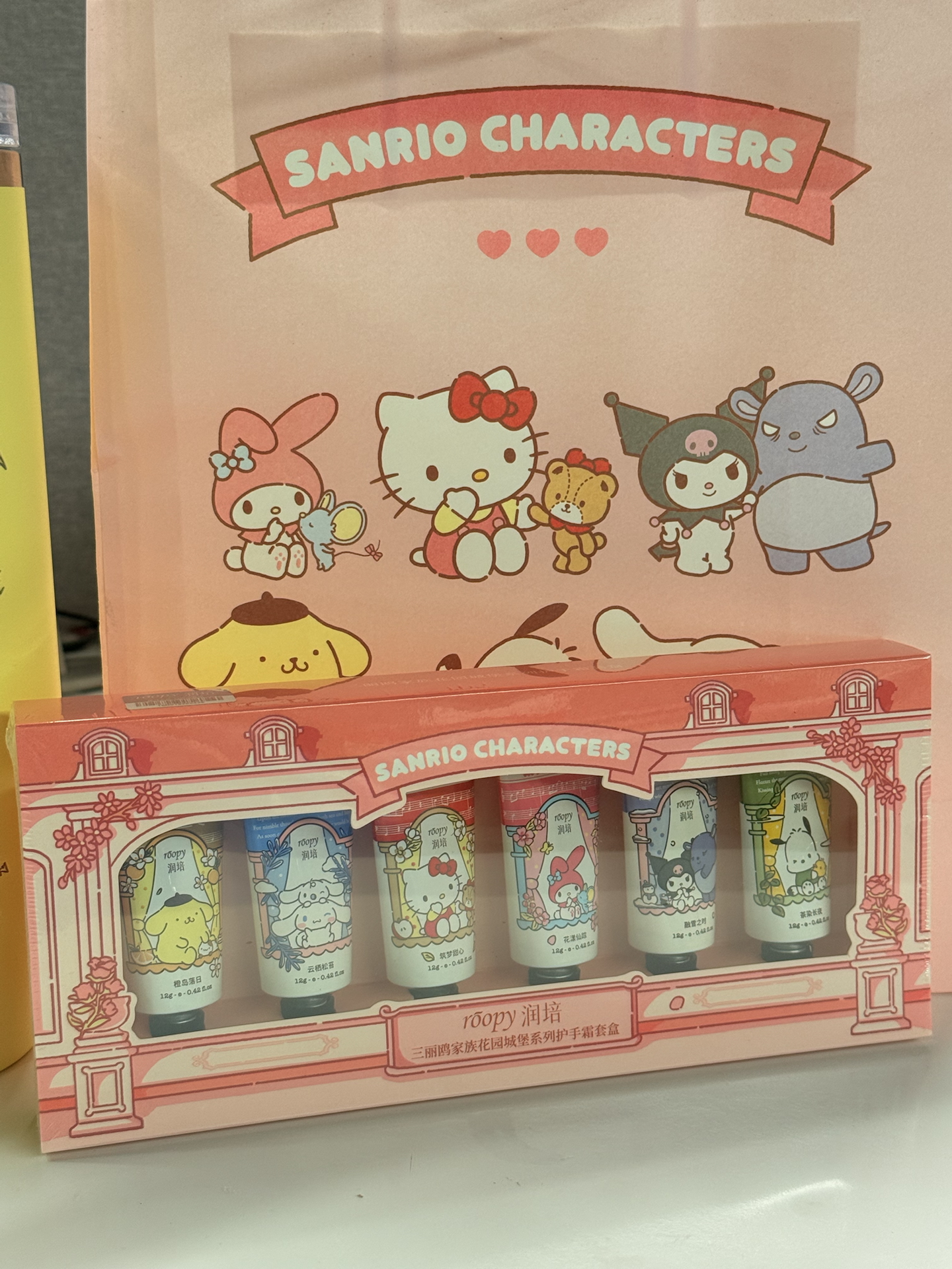 本篇笔记关联了roopy/润培 三丽鸥家族系列护手霜礼盒装 植物精粹保湿紧致舒缓留香送女生礼物 【12g*6支】凯蒂猫+美乐蒂+库洛米+帕恰狗+布丁狗+大耳狗等商品,为用户提供真实的使用体验和购买参考。