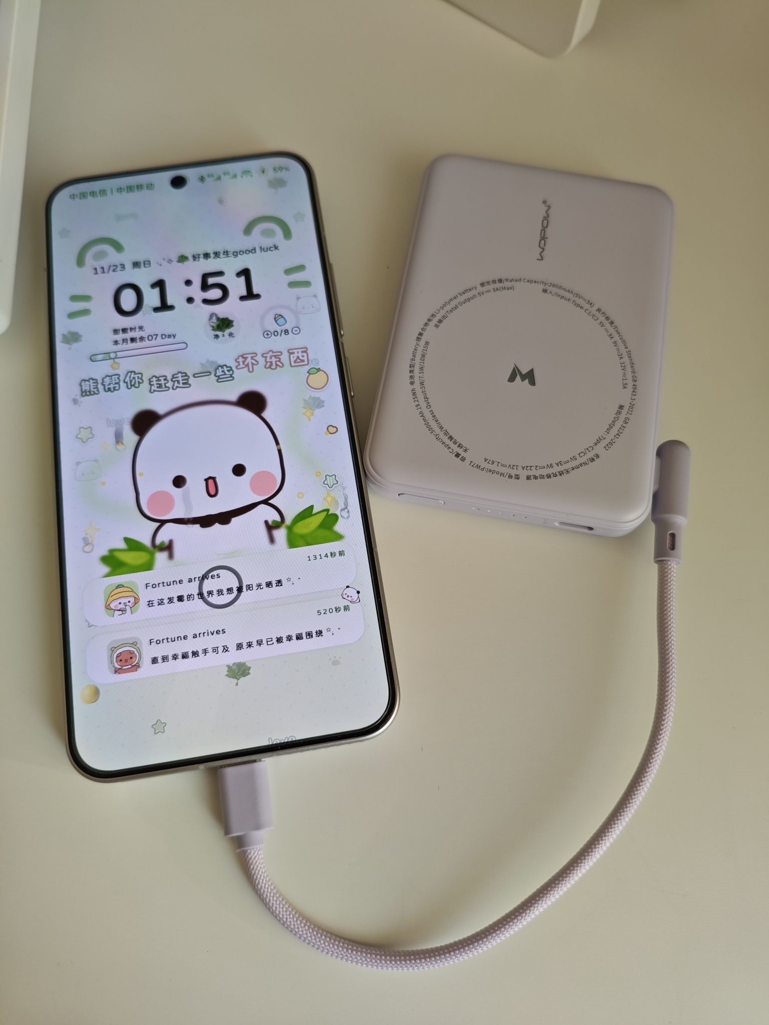友友们!还在纠结入手哪款磁吸充电宝嘛~那这款充电宝你可以看看哦~ 治愈强迫症🔋 精致小巧,给手机充电的时候,比手机小很多,上面不会遮挡摄像头,底部也不会超过手机,我用的小米15,6.36英寸都不会超过手机下沿!这种小小的充电宝怎么没早点发现! 🔋女生必备 自带手拎绳就是数据线,20w有线快充,还是弯头数据线边充边玩游戏两不误~15w的无线快充~隐藏式的支架横着竖着都能用,边吃饭边追剧的感觉谁懂呀...