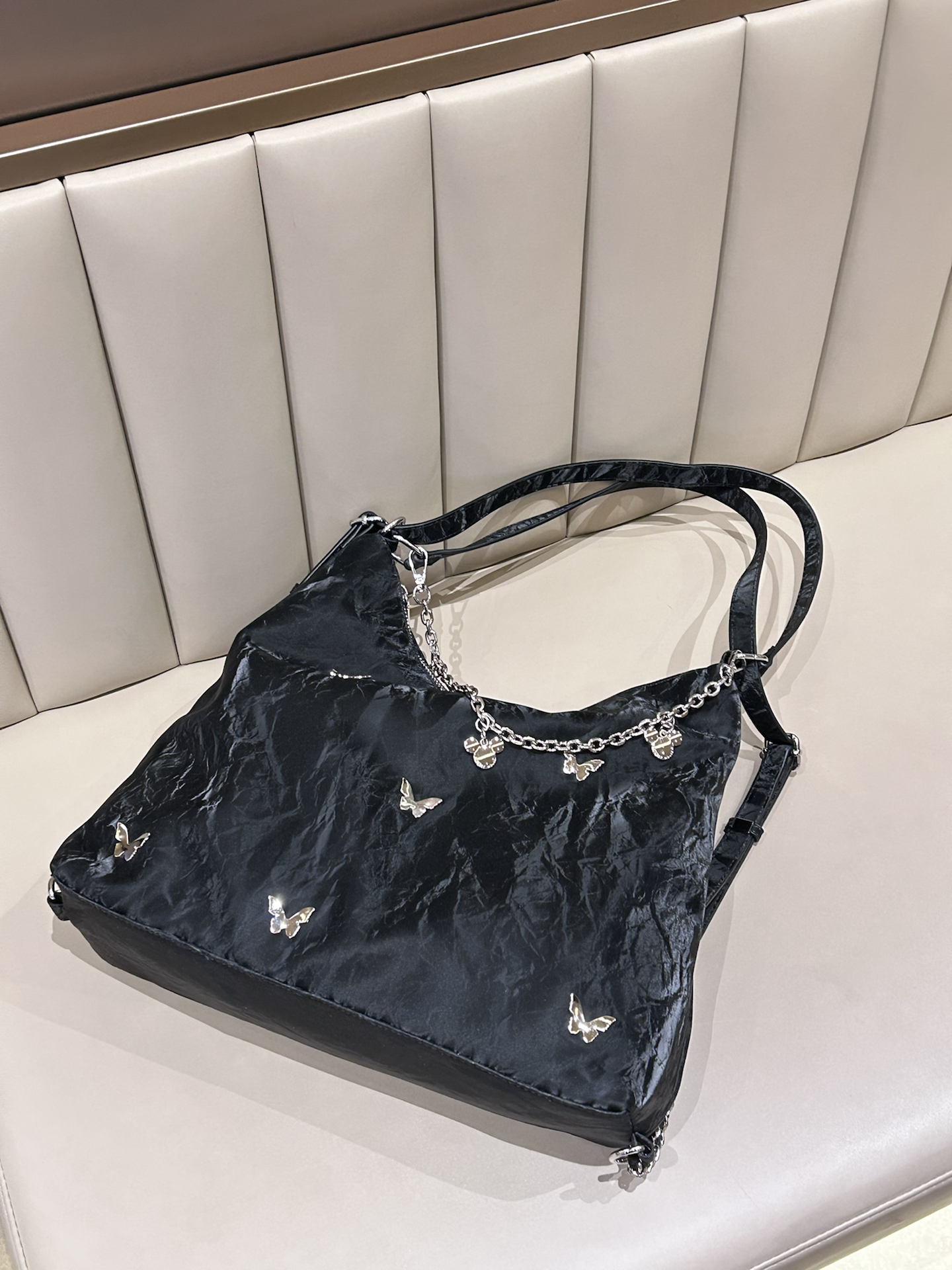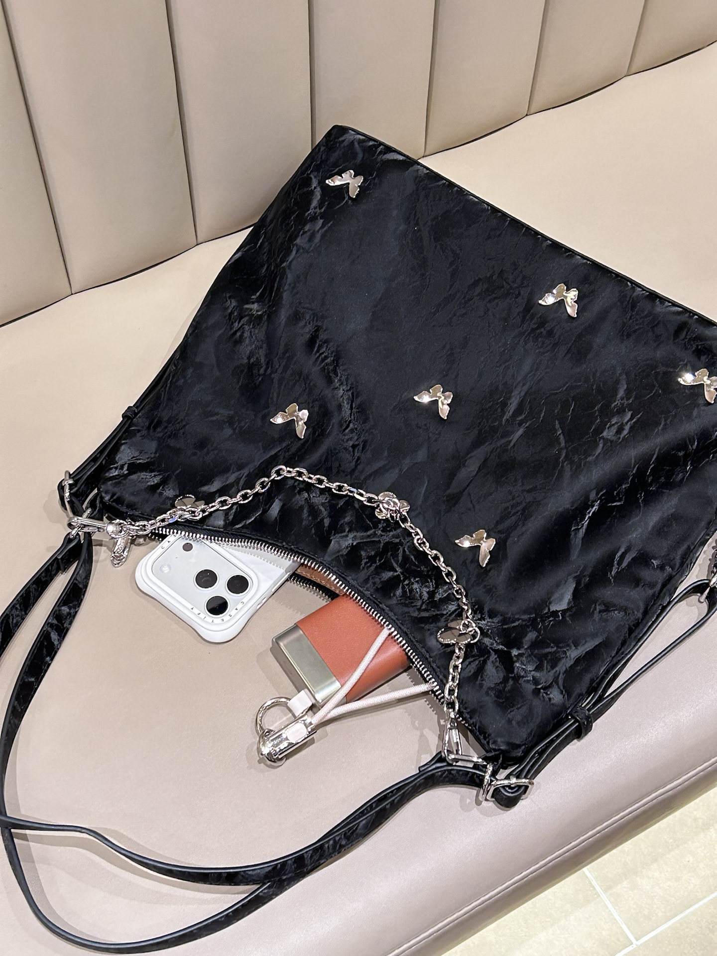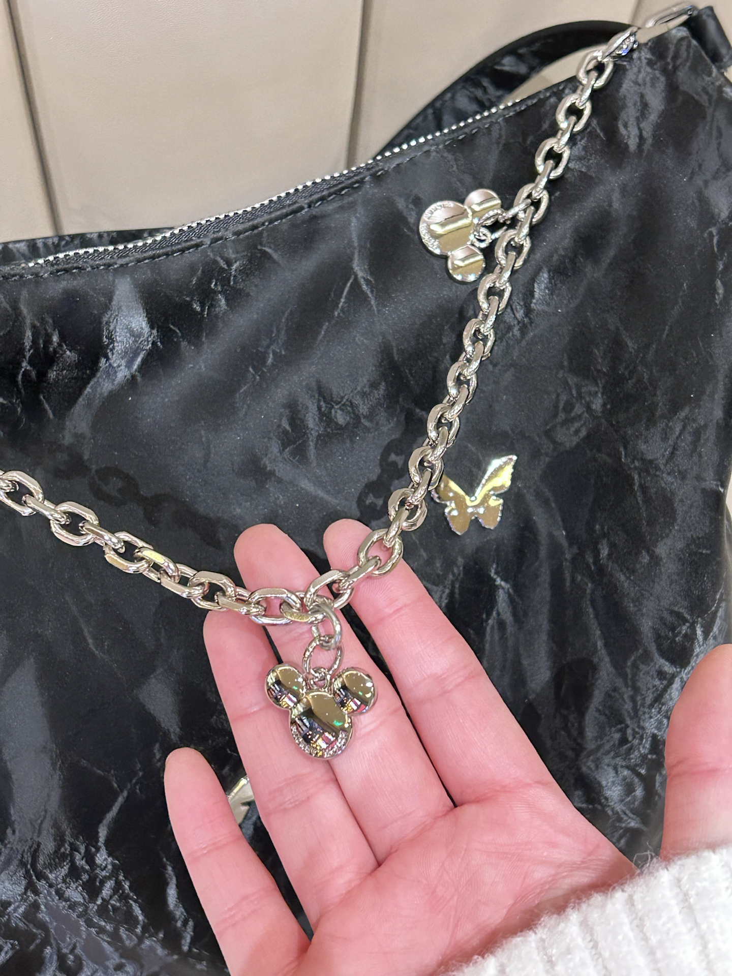 康康我挖的宝藏宝宝呀 是介个迪士尼的介个黑色托特包呀 包包摸着是那种很软糯好有质感 搭配的蝴蝶元素一闪一闪我感觉蛮梦幻的 里面容量也蛮大的 出门可以装好多 可以单肩 手提 还可以改成双肩背诶 平时搭配衣服好有氛围感 #明星配饰百搭法则 #明星新年氛围感穿搭 #马上开运穿搭 #晒晒我的包 #我的包包是座博物馆