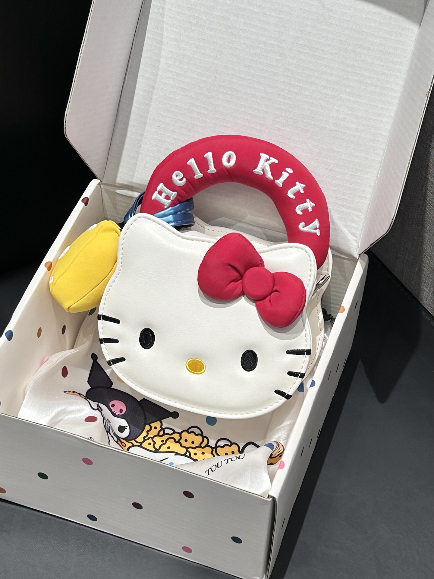 是我挖到的介个hello kitty包包诶 Kt的造型尊滴好可爱捏 包身还蛮立体的还原度很高 手提斜挎都可以蛮好搭配的 口红、手机、充电宝都可以装下 平时背它出门也泰亮眼啦 #我的新年战包 #最戳女友的新年礼物 #214情人节送女朋友礼物 #时髦er必备炸街包 #TOUTOUhellokitty联名