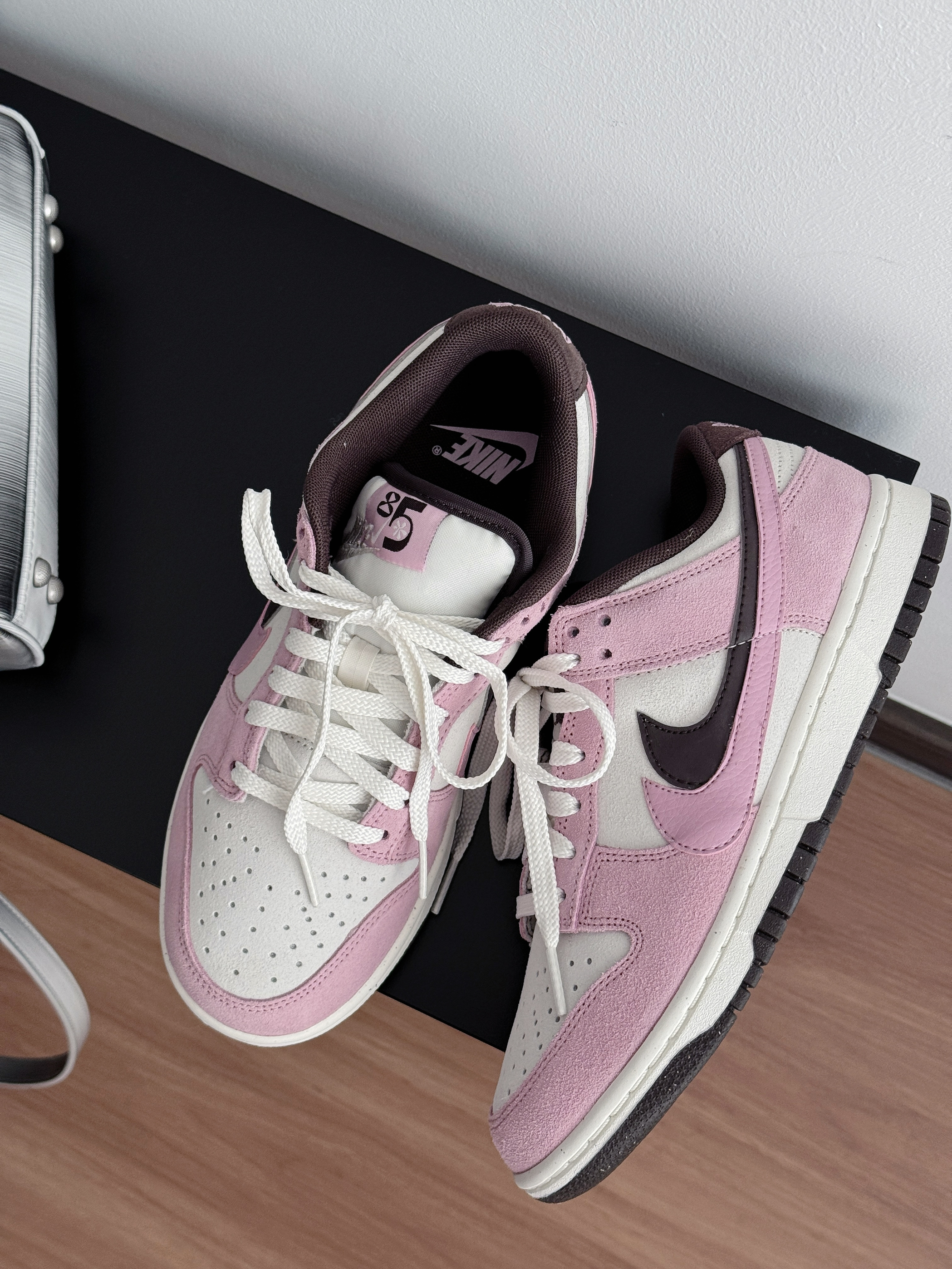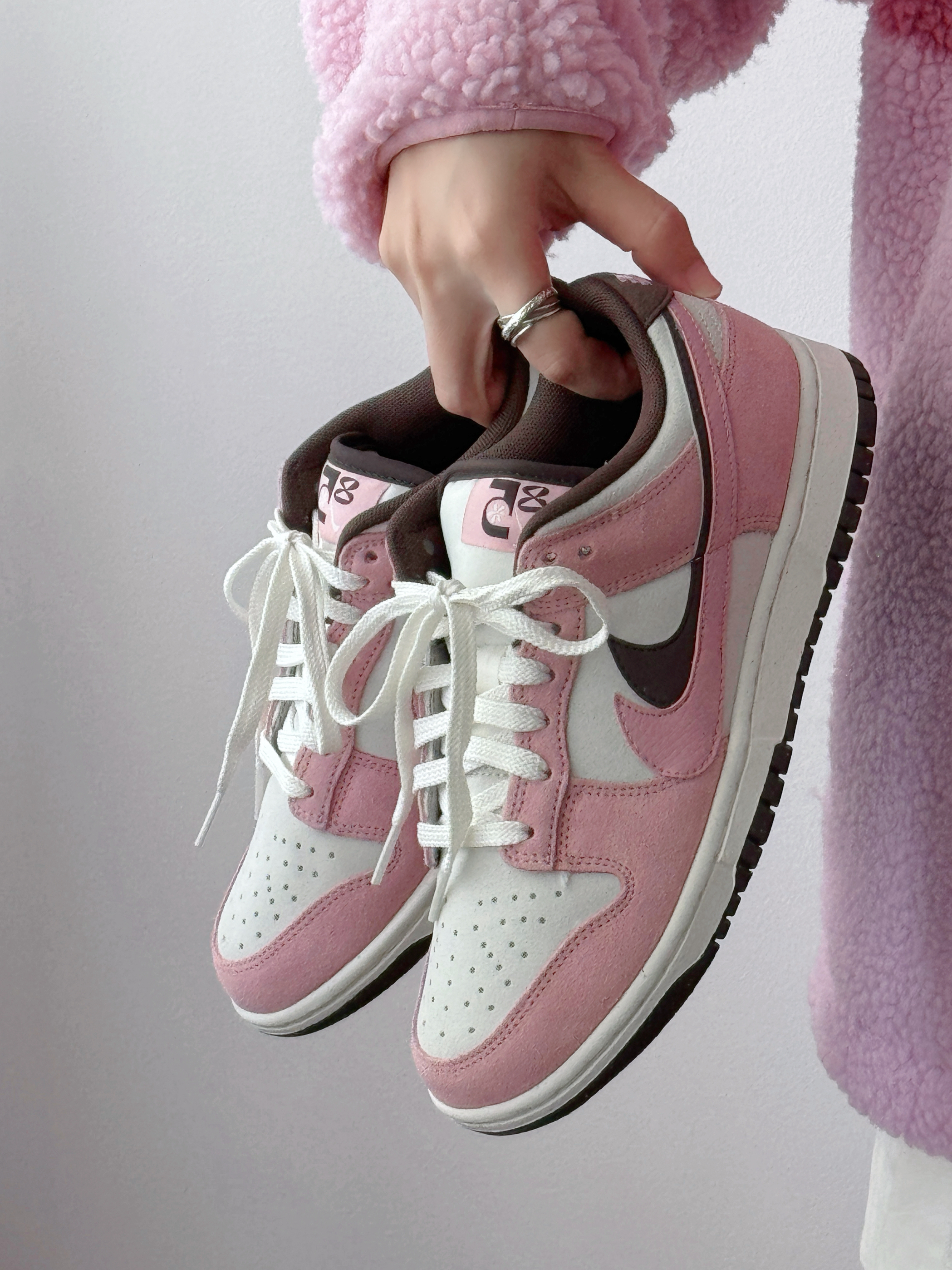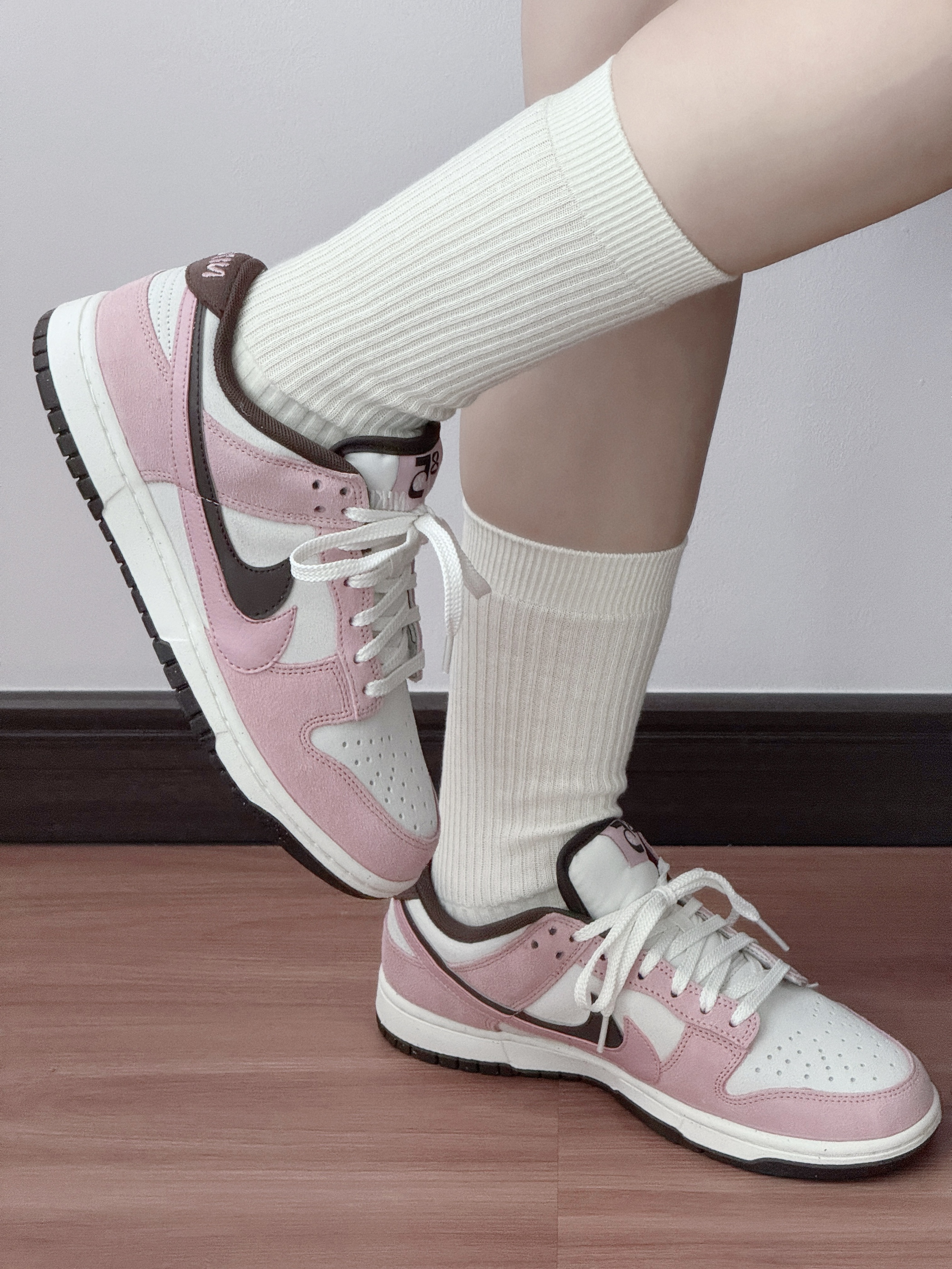 谁懂啊! 这双粉棕Dunk直接戳中我的心巴💓 麂皮质感软fufu的 配色温柔又不挑衣服搭牛仔裤是活力甜妹 配小裙子甜酷感十足 jio感舒适,暴走一天都不累! 春天的第一双甜妹鞋,我先穿啦~