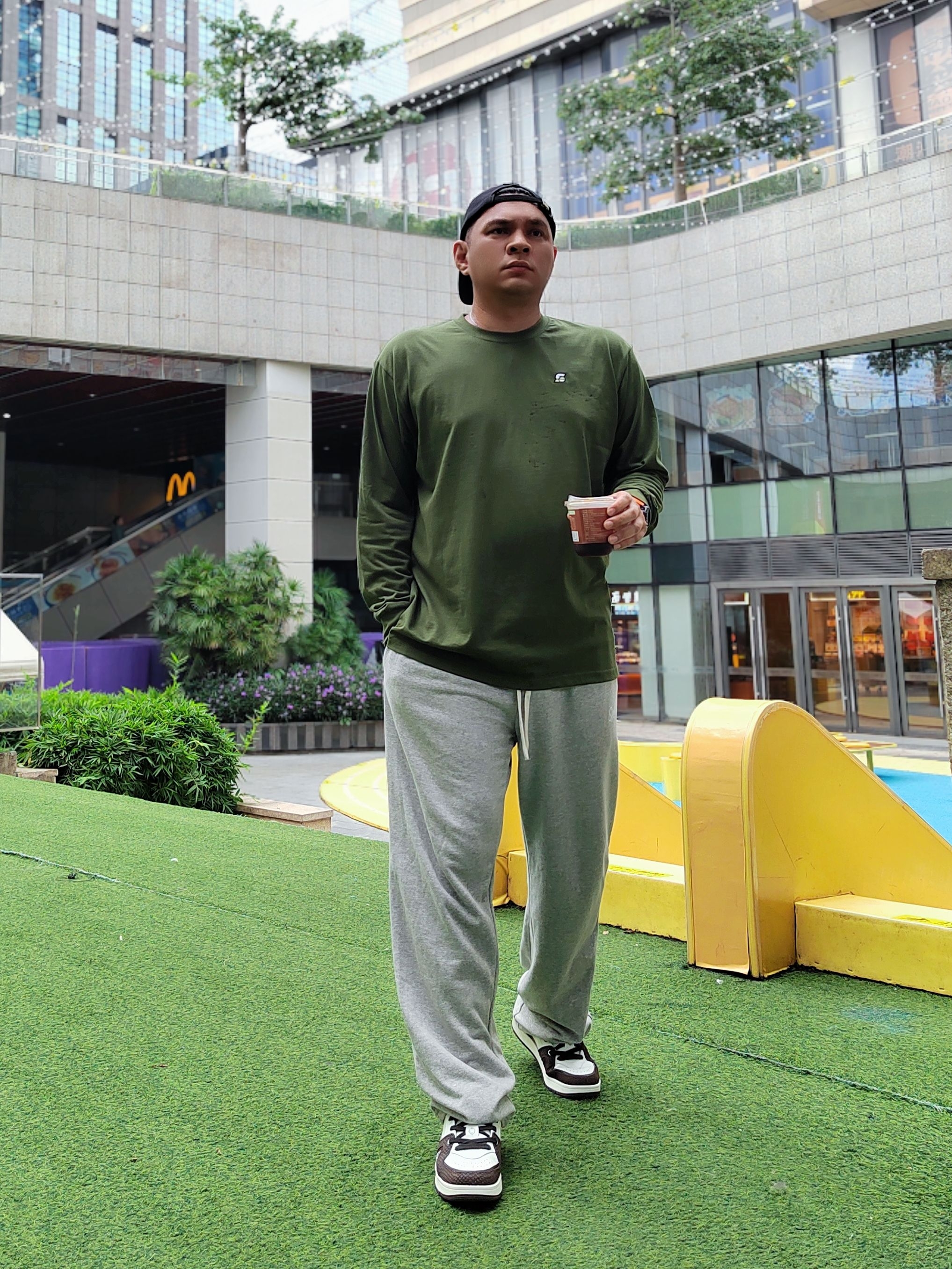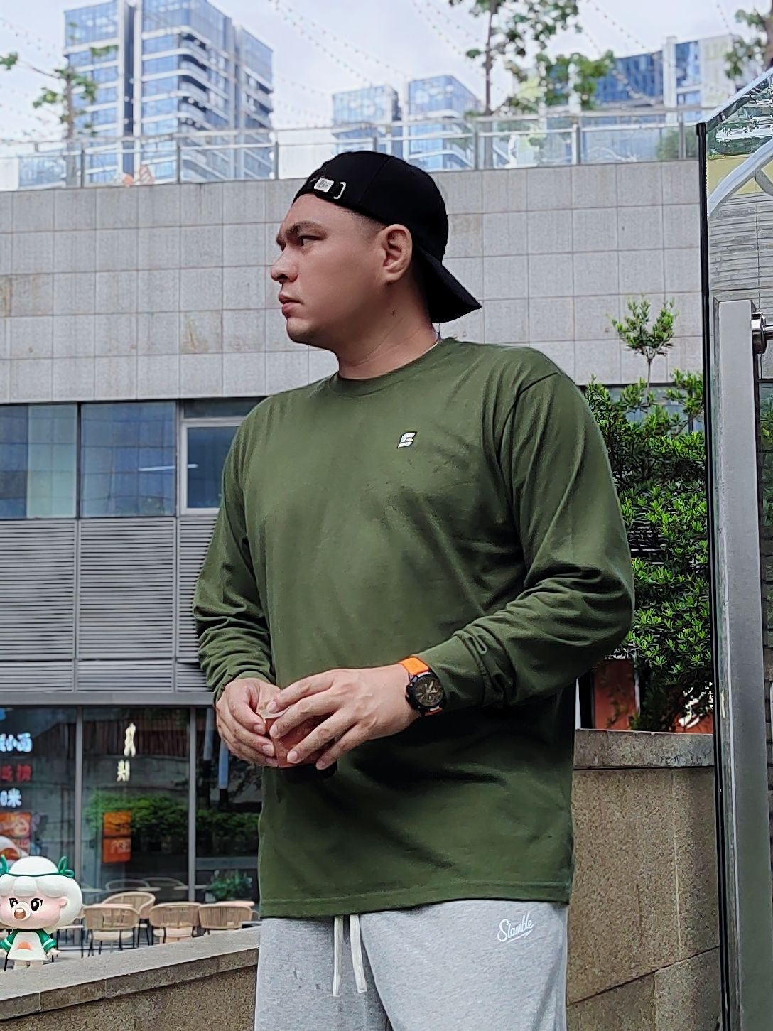 我今天的出街上身的是slamble 长袖T恤 纯色设计配上胸前小Logo刺绣点缀 简约又不失时尚感,还显精神 纯棉面料,柔软亲肤,摸起来还软软的好舒服 宽松版型,男女生都合适也不挑身材 🙎♂️180cm/90kg 👕XXL 下身配一条slamble 花灰运动卫裤 上脚一双运动板鞋 这身让我能轻松舒适一整天