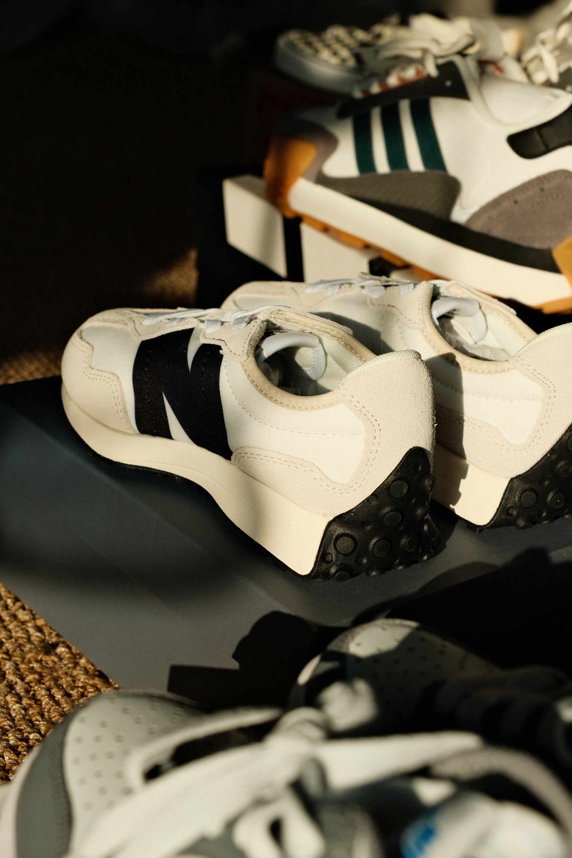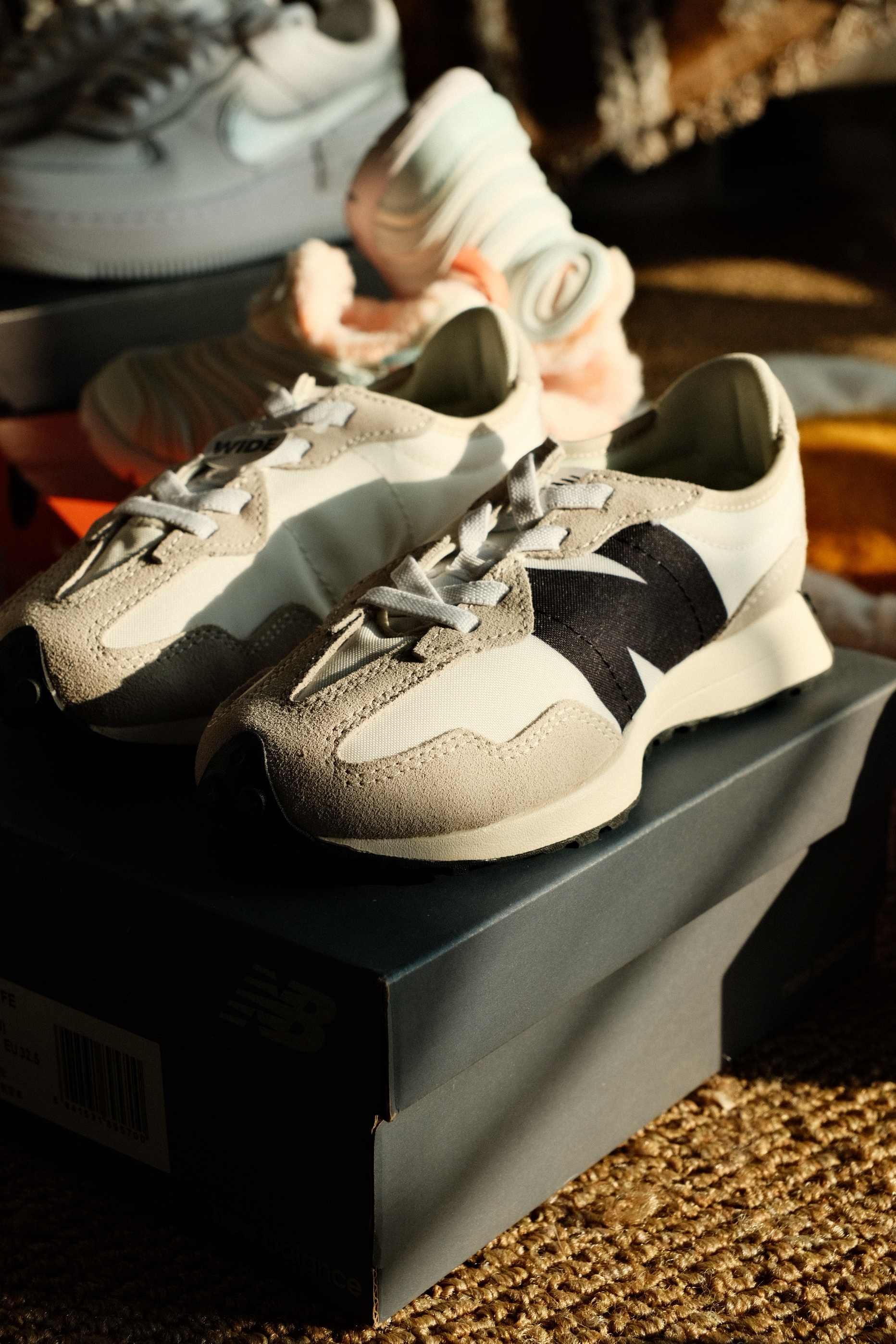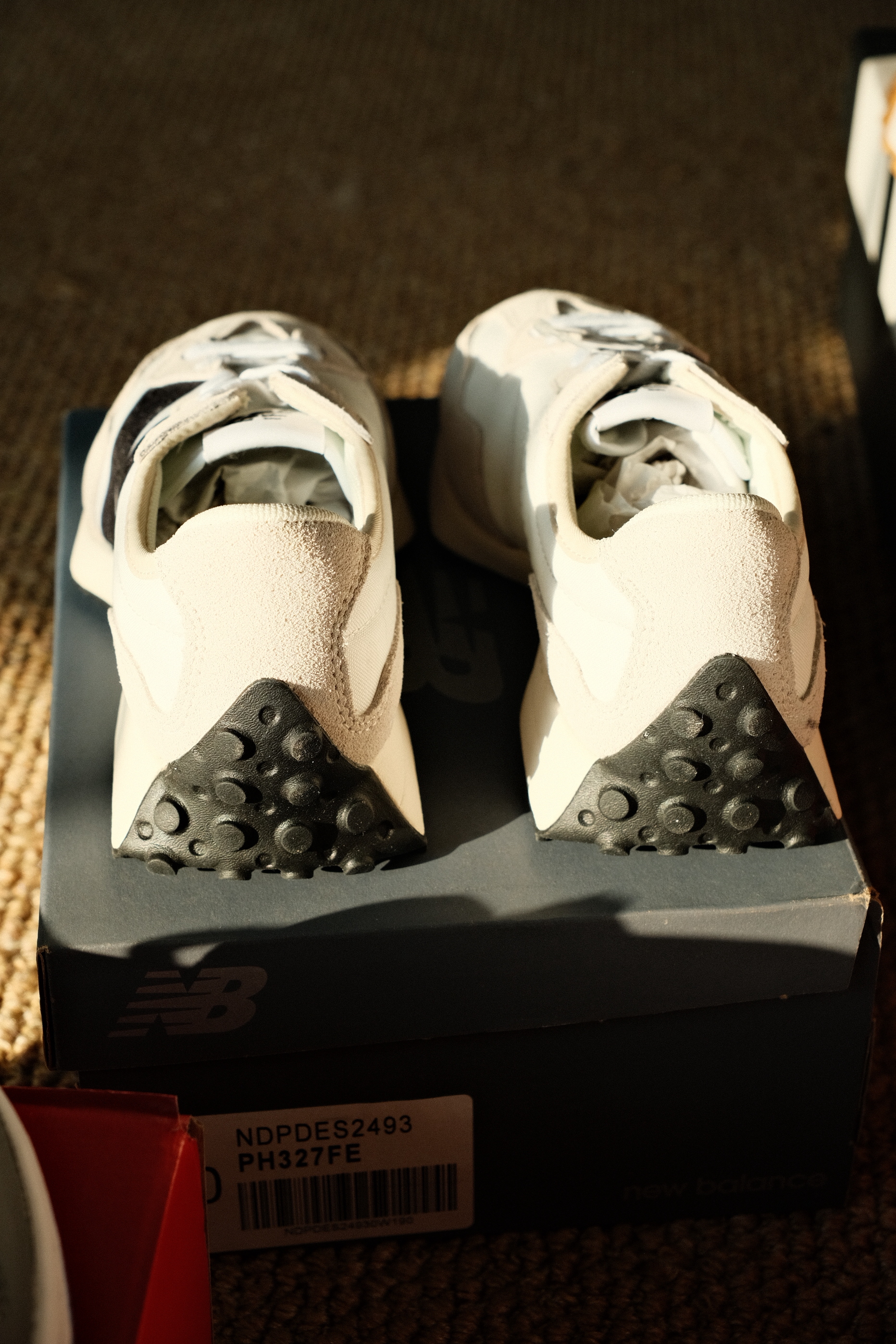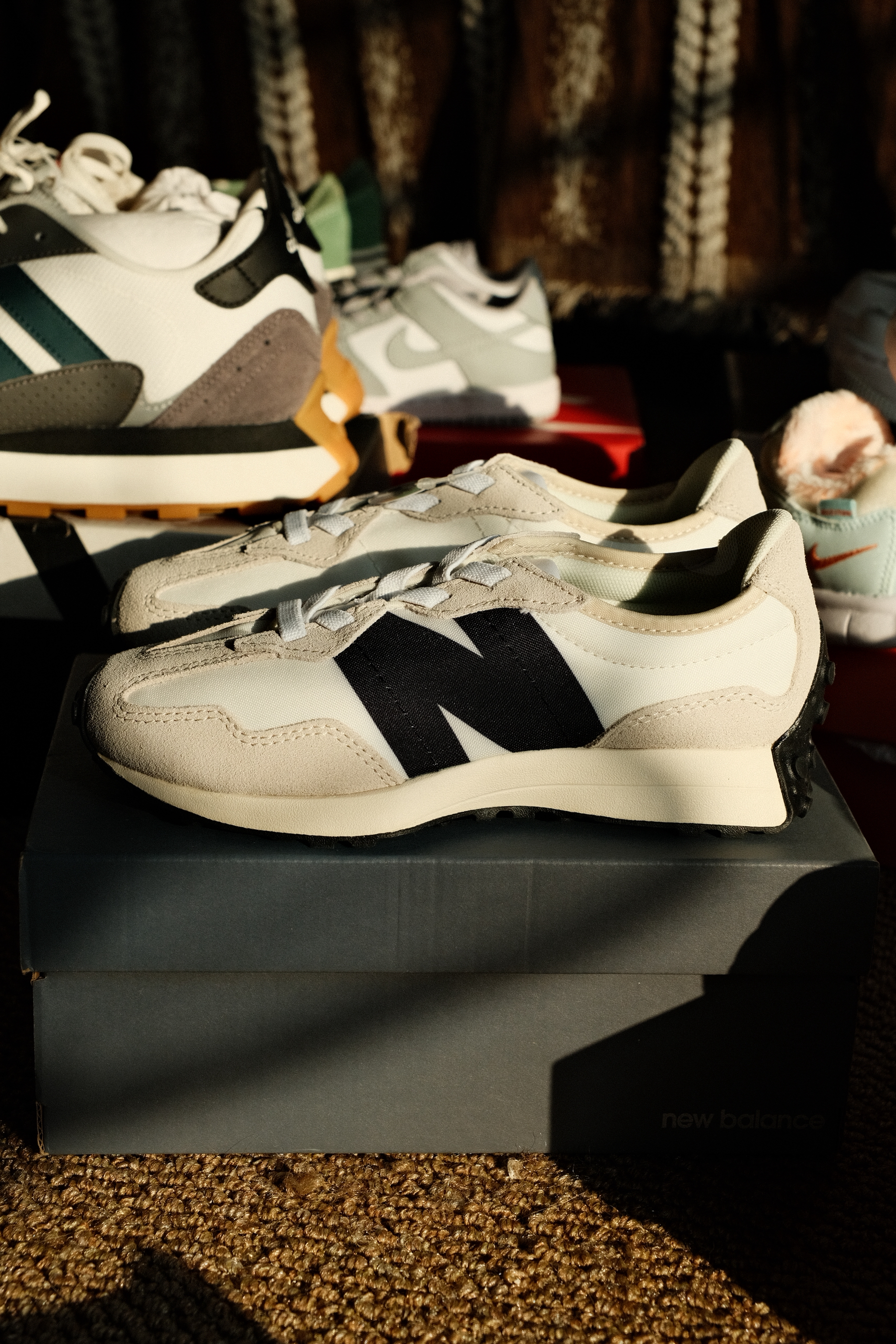 谁能拒绝一双麂皮拼网布的复古跑鞋啊!New Balance 327的米灰配色自带温柔滤镜,鞋型修长不压脚,软弹中底通勤逛展走一天都不累。配卫衣是松弛感博主,搭牛仔裤是街头潮人,秋天的衣柜就缺这双“懒人本命鞋”🥾