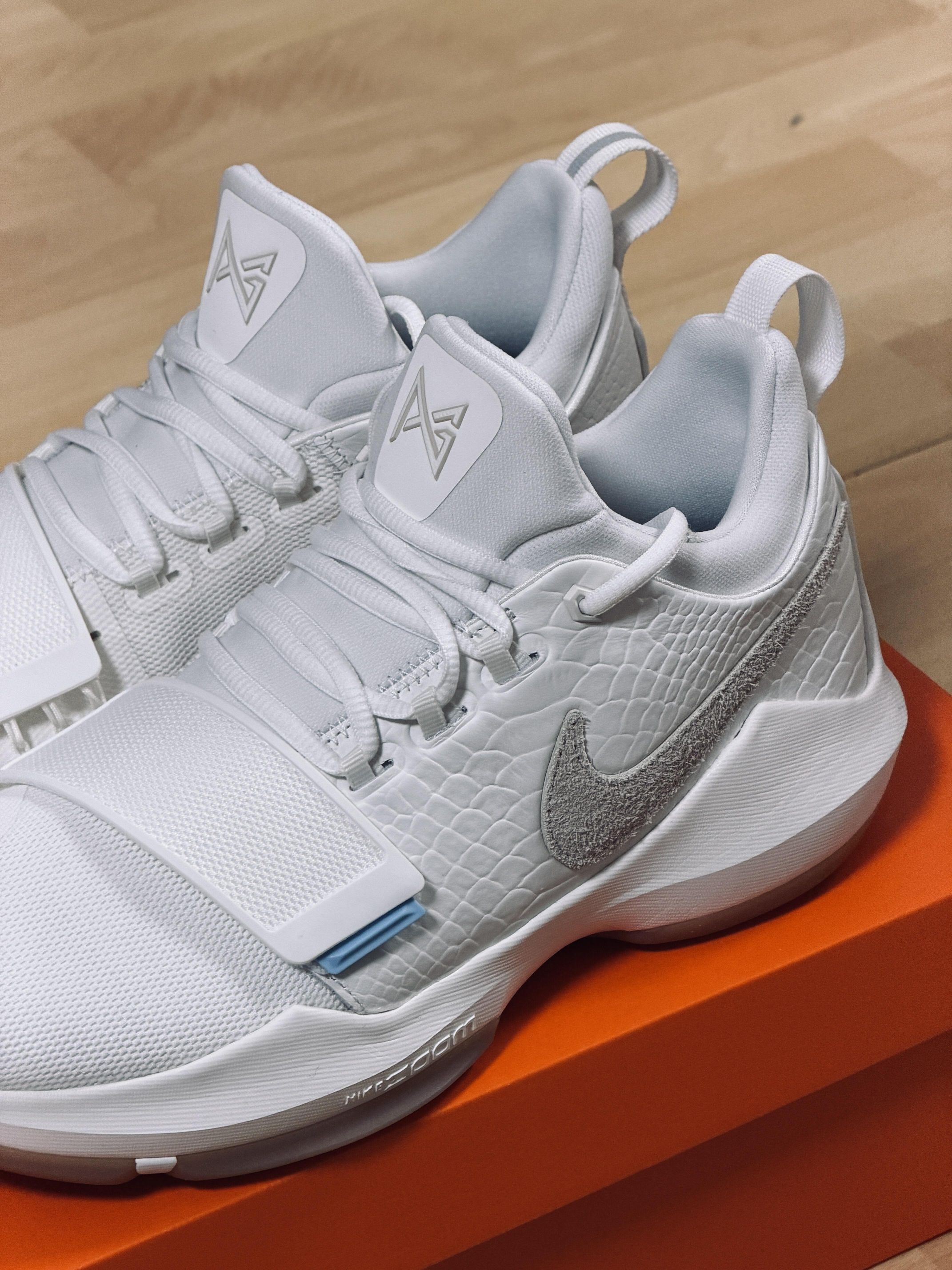 谁能拒绝一双又能实战又能出街的纯白战靴! 新入的Nike PG 1,直接把情怀和性能焊在了一起: ✅ 全白鞋身+鳄鱼纹质感,自带高光滤镜,球场最靓的仔就是我 ✅ 前掌Zoom气垫+魔术贴绑带,启动贴地还稳得一批 ✅ 黑白双入直接拿捏两种风格,日常通勤也能搭出高级感 老鞋的魅力真的无法替代,穿上就想立刻冲去球场!🏀