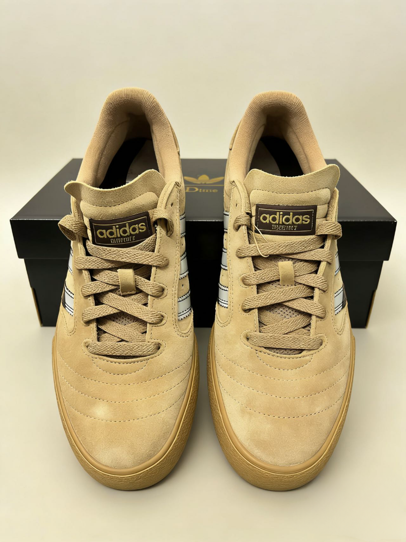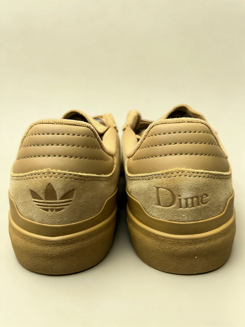 是谁还没被这双Adidas x Dime的联名鞋戳中审美! 整体是温柔的奶茶麂皮,搭配巧克力色三条纹,复古又百搭,简直是为秋冬量身定做的配色!
