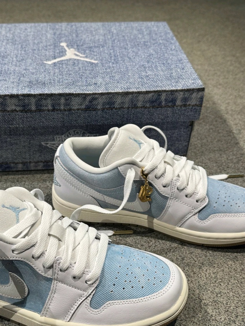 不愧是牛仔蓝配色的Jordan1泰好看了,看起来复古又百搭的,穿起来的脚感挺舒适的,鞋子的包裹性和防滑都可以