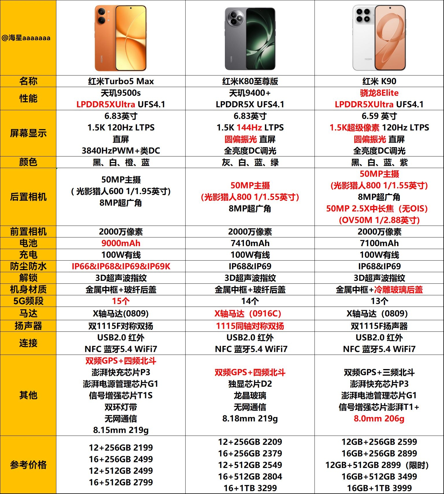 红米Turbo5Max对比K80至尊版 K90