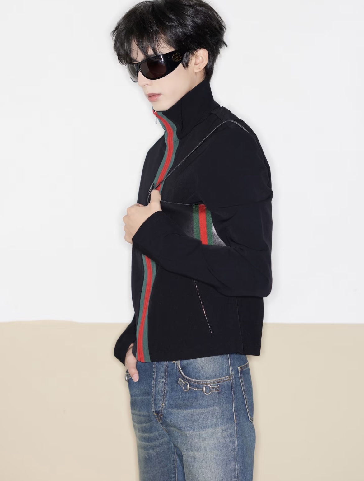 1️⃣ 选款核心:夹克选「基础色+撞色条纹」(黑+红/绿/白),避免太花里胡哨,高级感藏在细节里