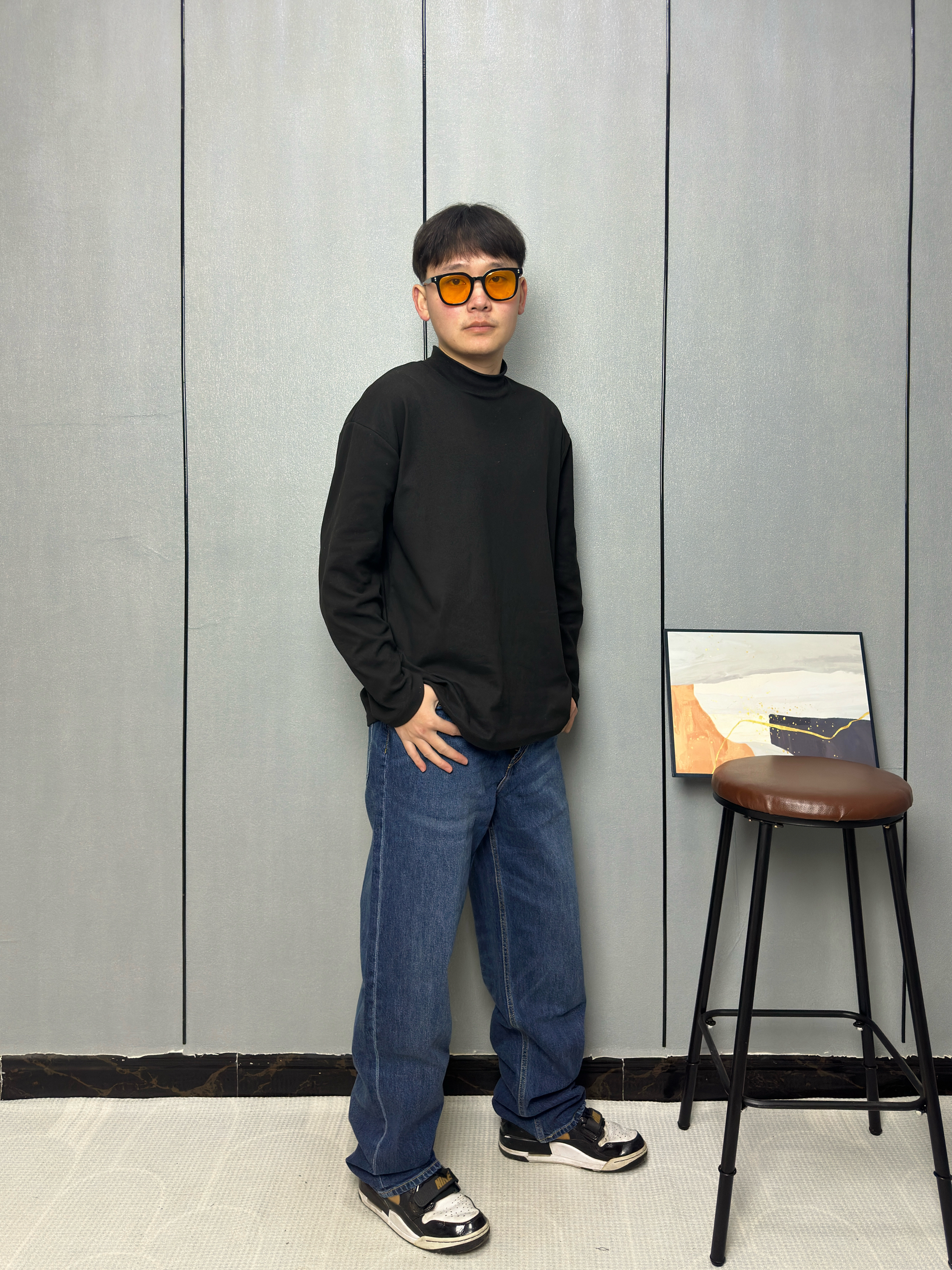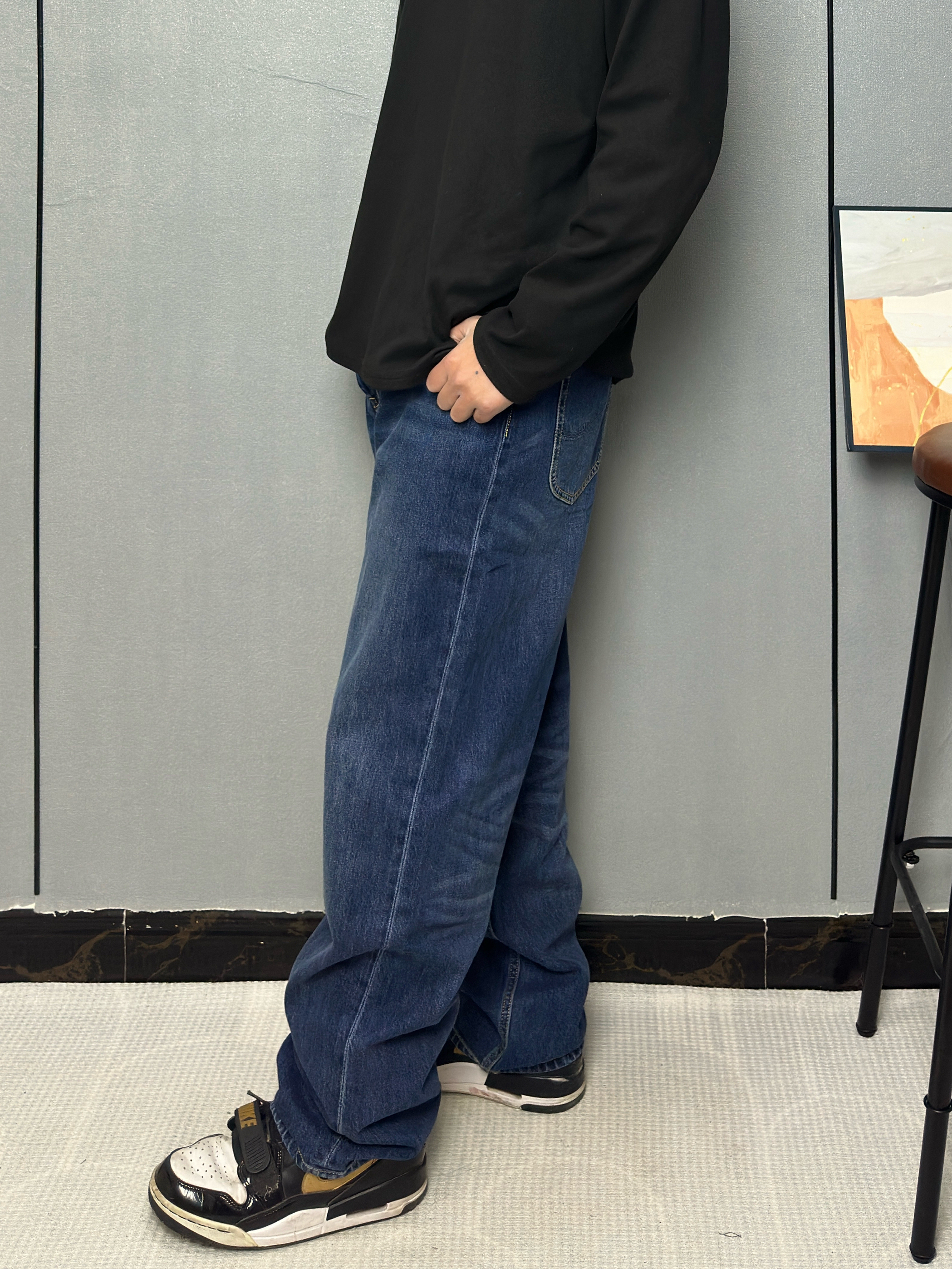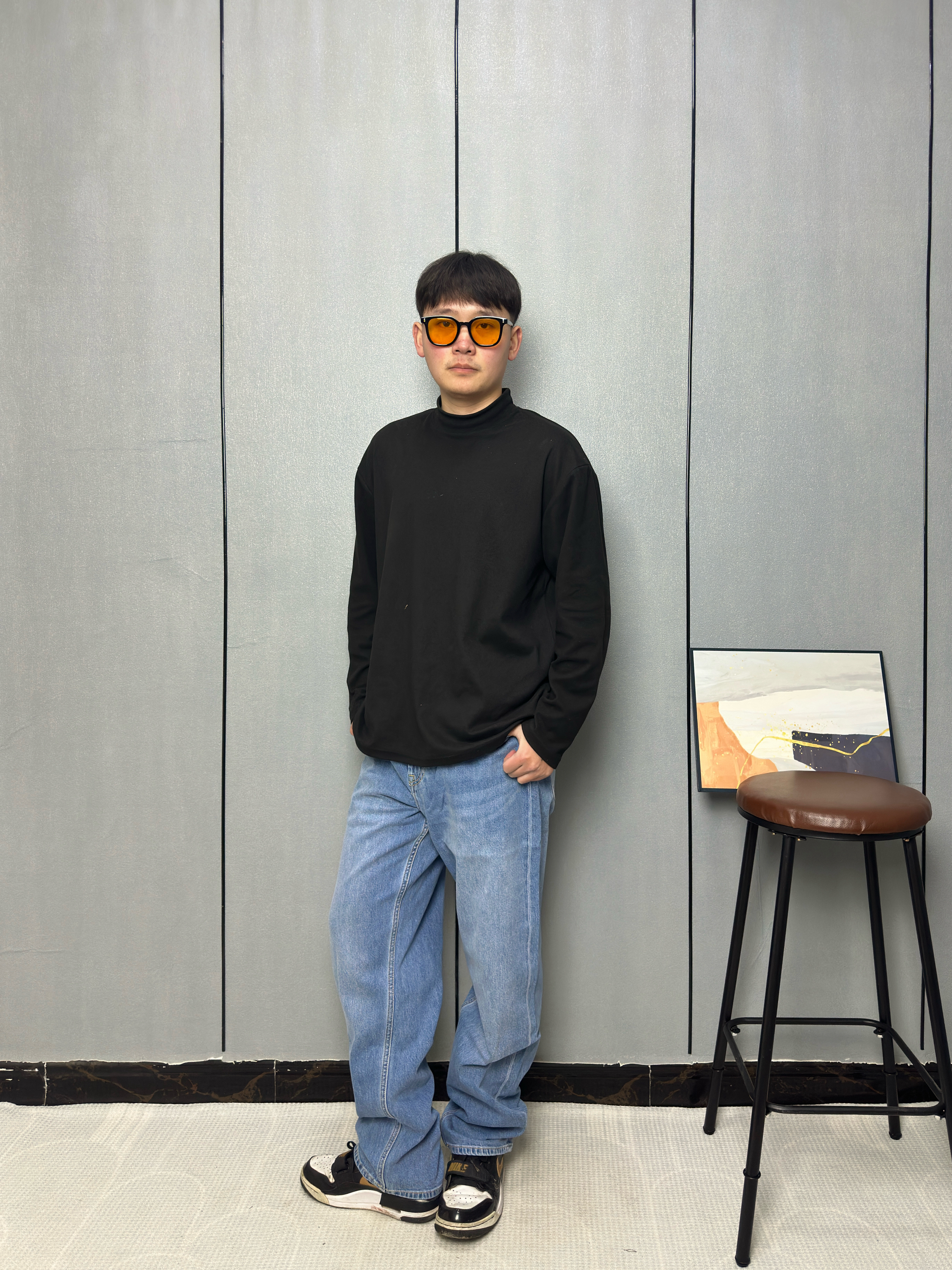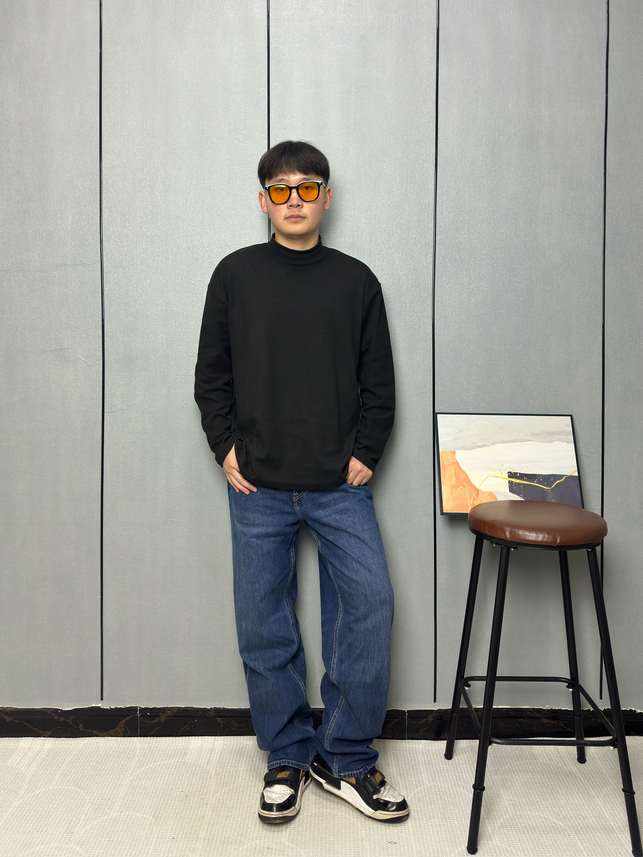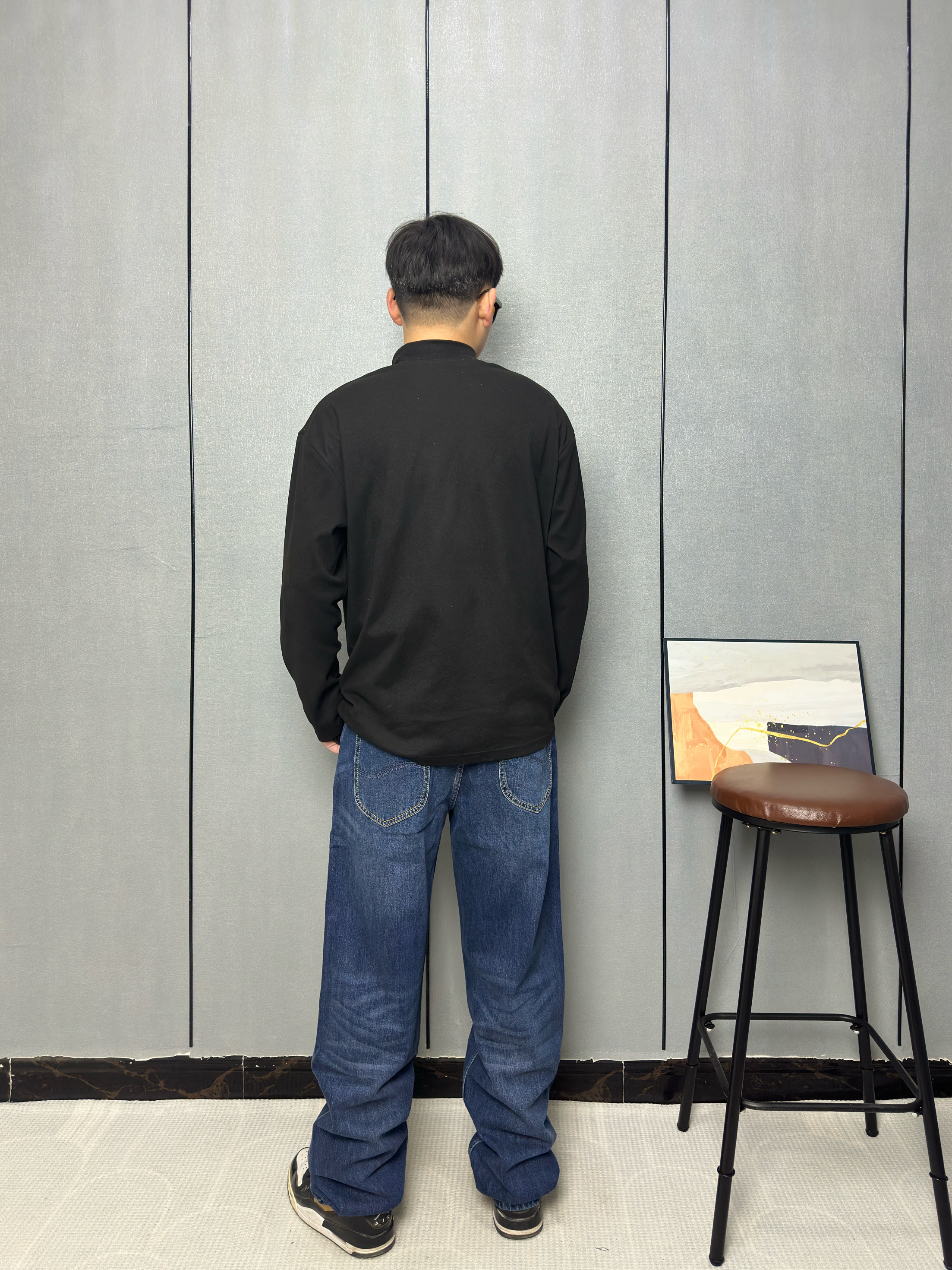 👦🏻175cm/65kg,上身Lee轻薄宽松牛仔裤 选的32码,合身度刚刚好 这条裤子的凉感面料适合春夏季 贴身穿起来轻薄透气,走一天也不会闷汗 裤子的走线很工整,经典的皮牌和铆钉细节也都在线 搭配我这件黑色小高领T恤,日常通勤都能搭 是一条实用性很高的基础款牛仔裤