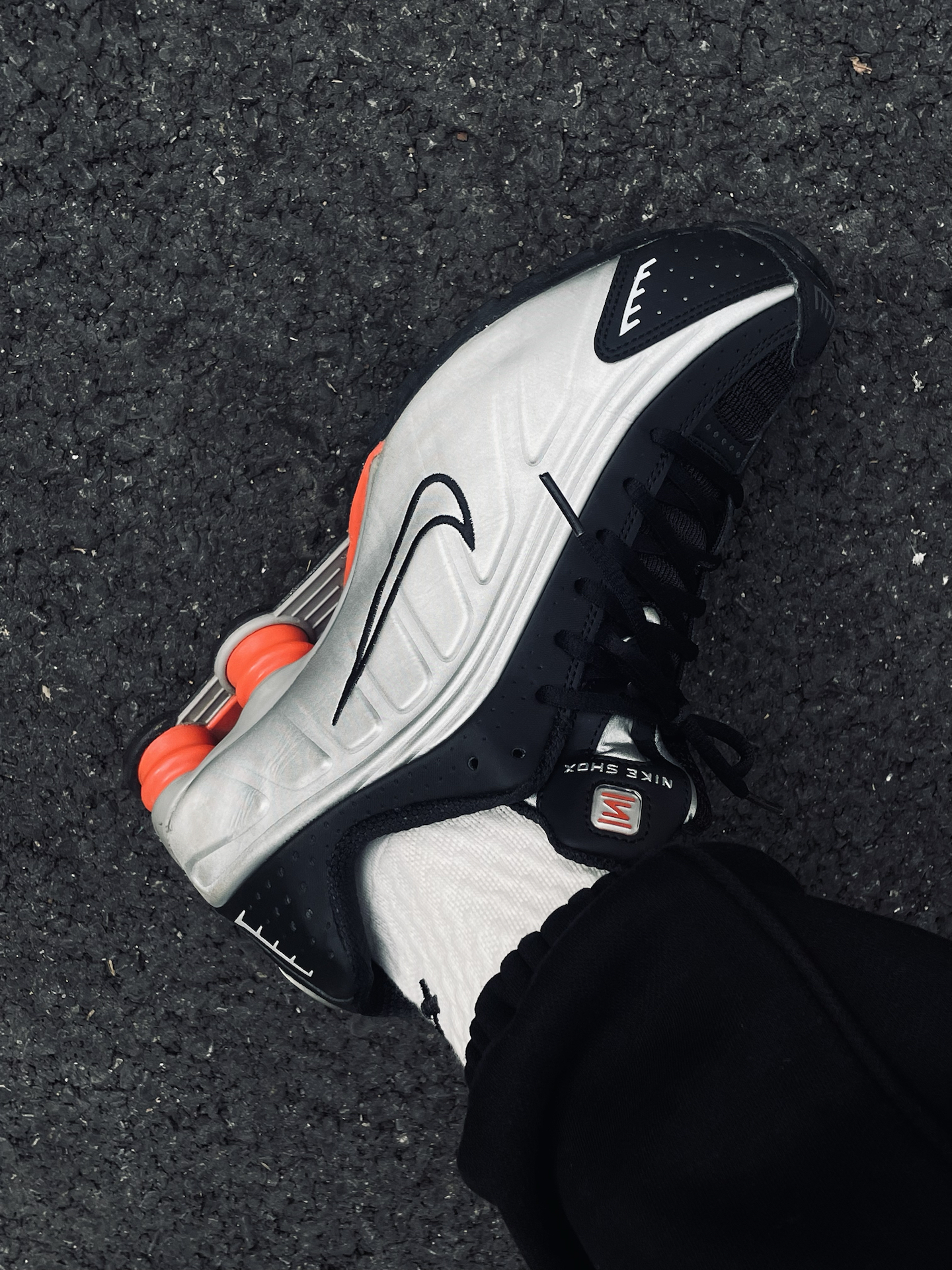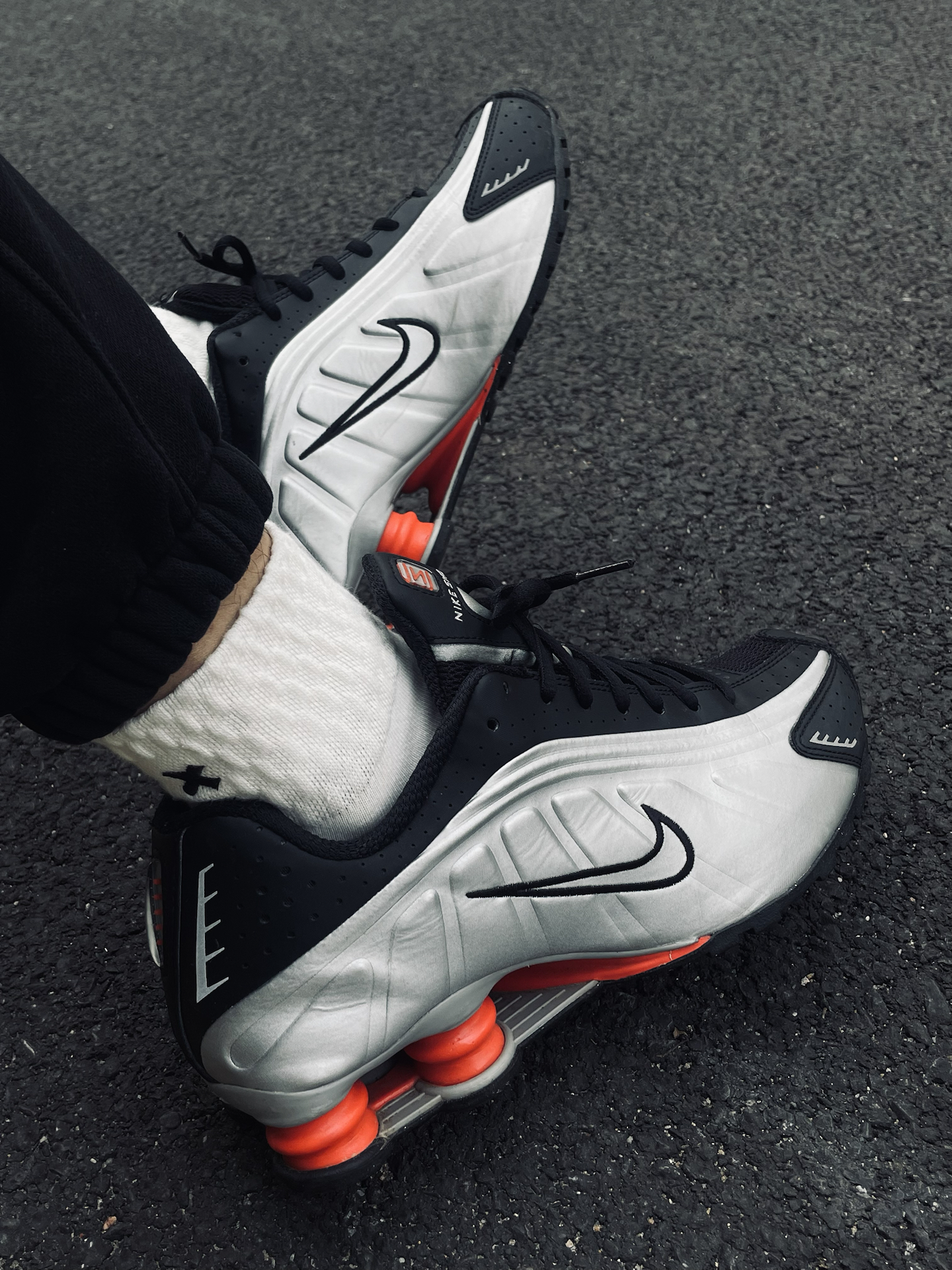 今天上脚的是 Shox R4。这双鞋真的很有来头,当年火到直接被拿去当教材配图,后面的“四根柱子”一眼就能认出来,妥妥的千禧年代代表。 搭配白袜+黑色束脚裤,整个 千禧复古风 一下就出来了,科技感和复古感混在一起,很有辨识度。上脚还挺增高的,走路有点像踩高跟鞋,气场直接拉满。 我入手它就是冲着这个造型来的,线条流畅,看着就很酷。新年这样穿,既有年味,又不无聊,属于一眼就能被注意到的那种👟✨ ...