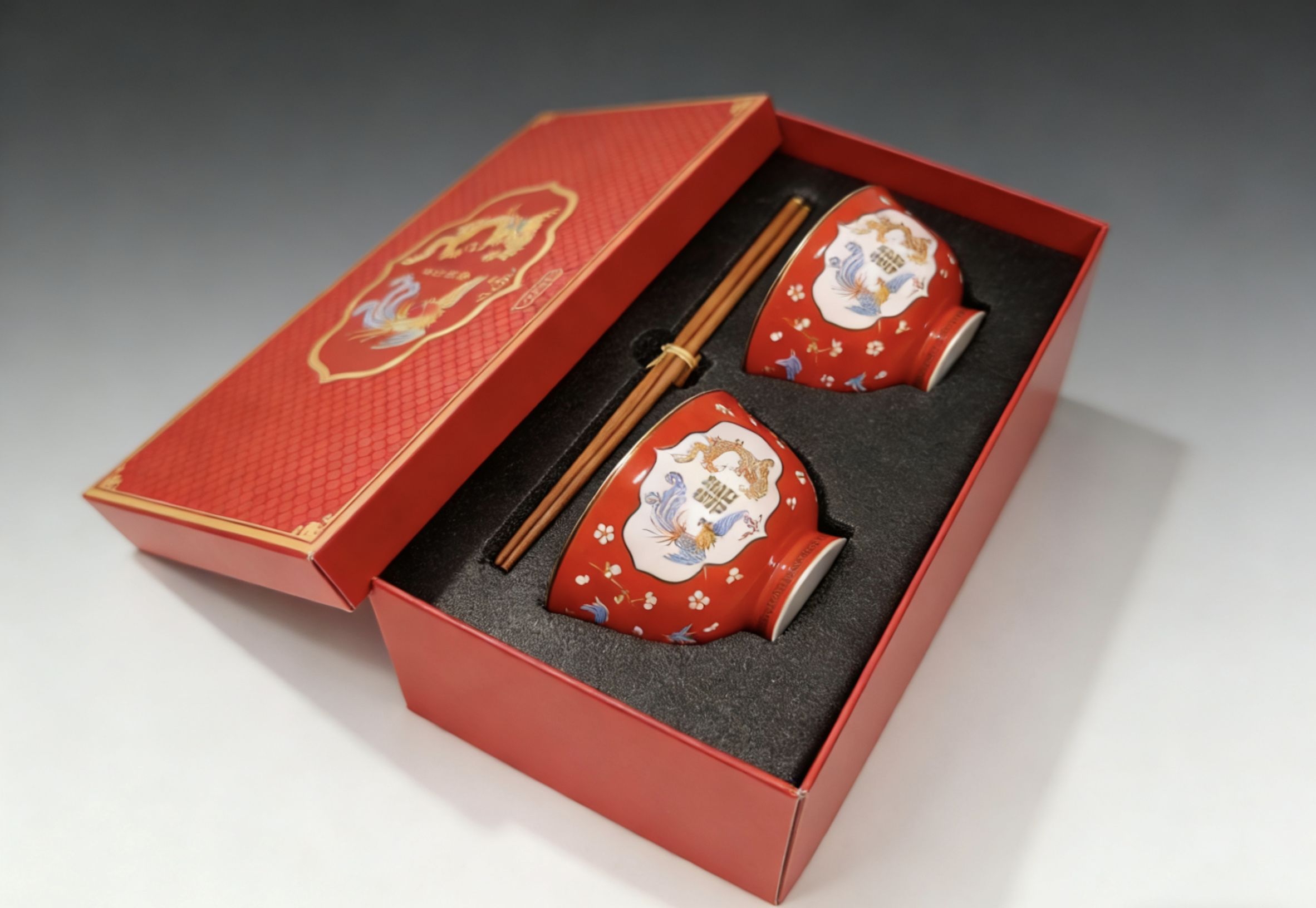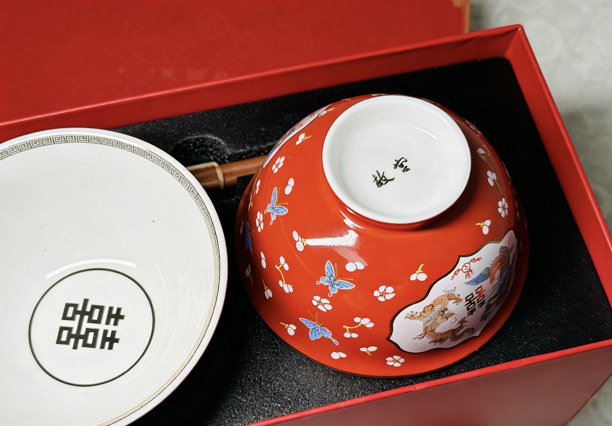 给闺蜜挑新婚礼物真的纠结了好久,怕送的太俗,又怕不实用,最后选了这套故宫龙凤碗筷,没想到效果超棒! 正红色的瓷碗看着就喜庆,龙凤和囍字的纹样做得很精致,不是那种廉价的印花,摸着瓷质也厚实,不是轻飘飘的次品。筷子是原木的,纹理清晰,握着也趁手,一套成双成对,寓意龙凤呈祥,送新婚刚好。 包装是礼盒加手提袋,印着“来自故宫的礼物”,不用额外包装,直接拎着去婚礼现场就行,超省心。闺蜜拆开的时候说很...