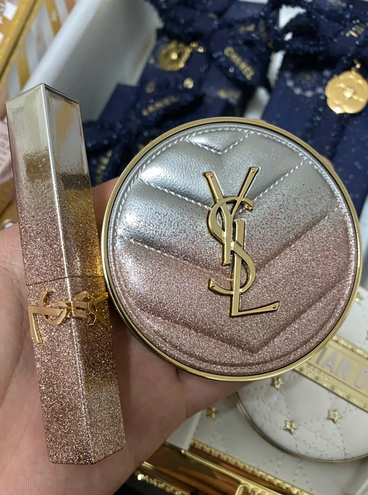 谁懂啊!YSL这根星河小金条美到我失语🥹 渐变细闪管身拿在手上巨有质感,涂完直接氛围感拉满~颜色也很显白,我愿称它为富贵花本命口红!🎀图片源于网络,侵删