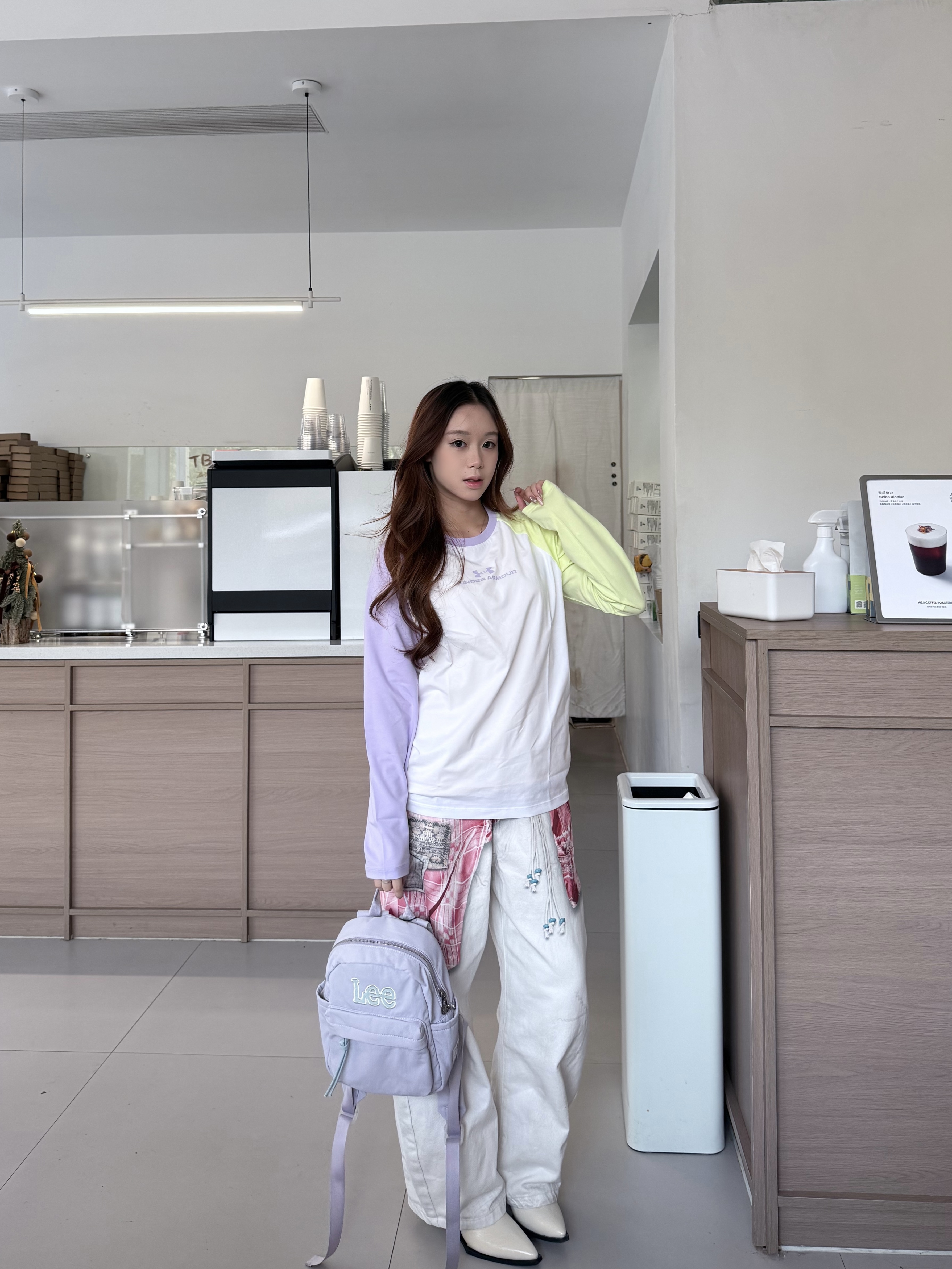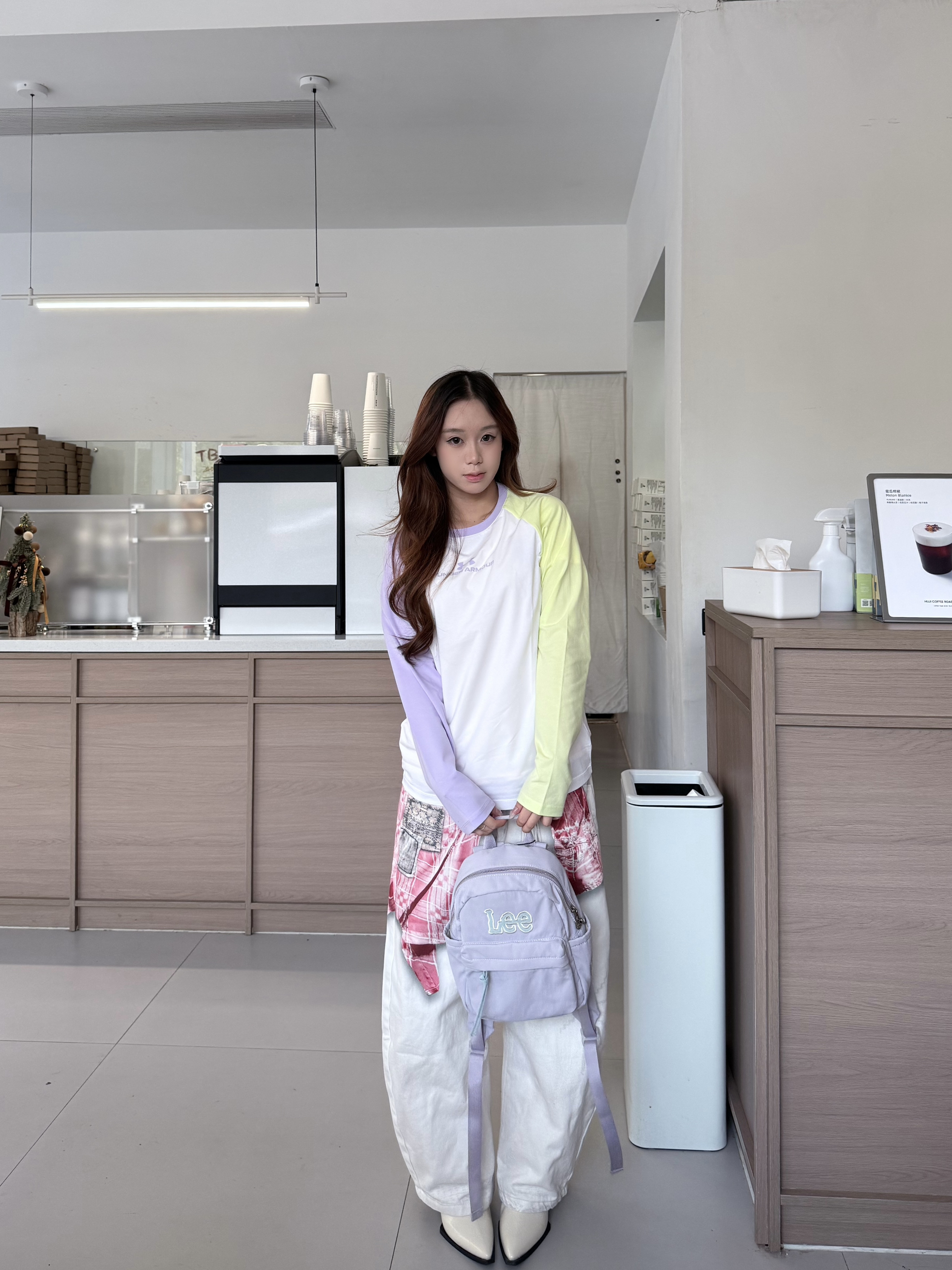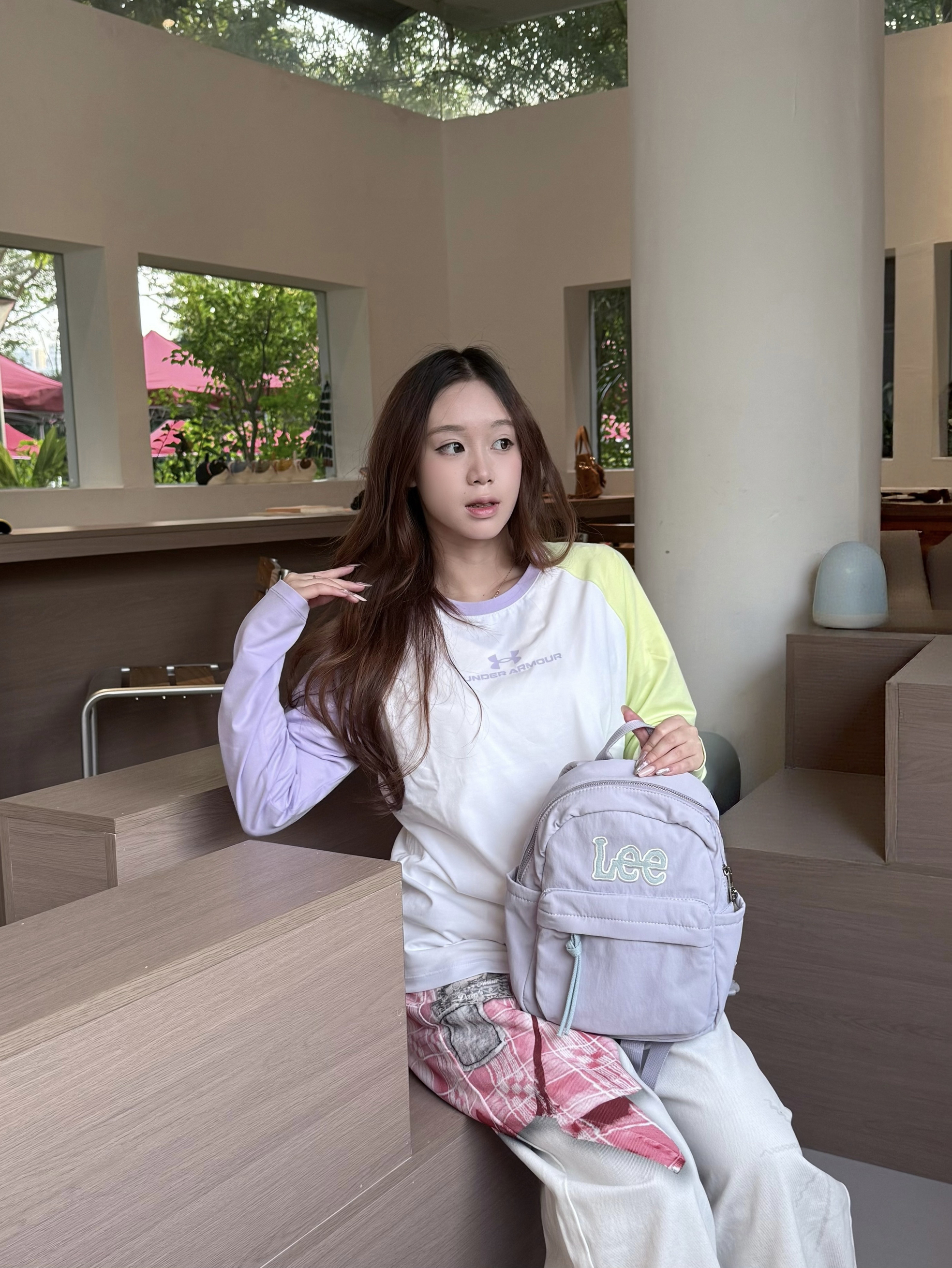 最近出门去玩都很喜欢背Lee这款双肩包 小小一个便携精致 不过里面容量还蛮大的 分了几个隔层 水杯平板都能装 买的浅紫色淡淡的很好看呢~