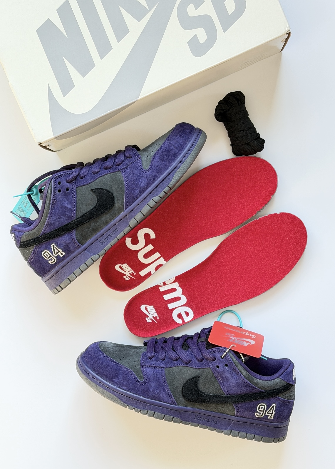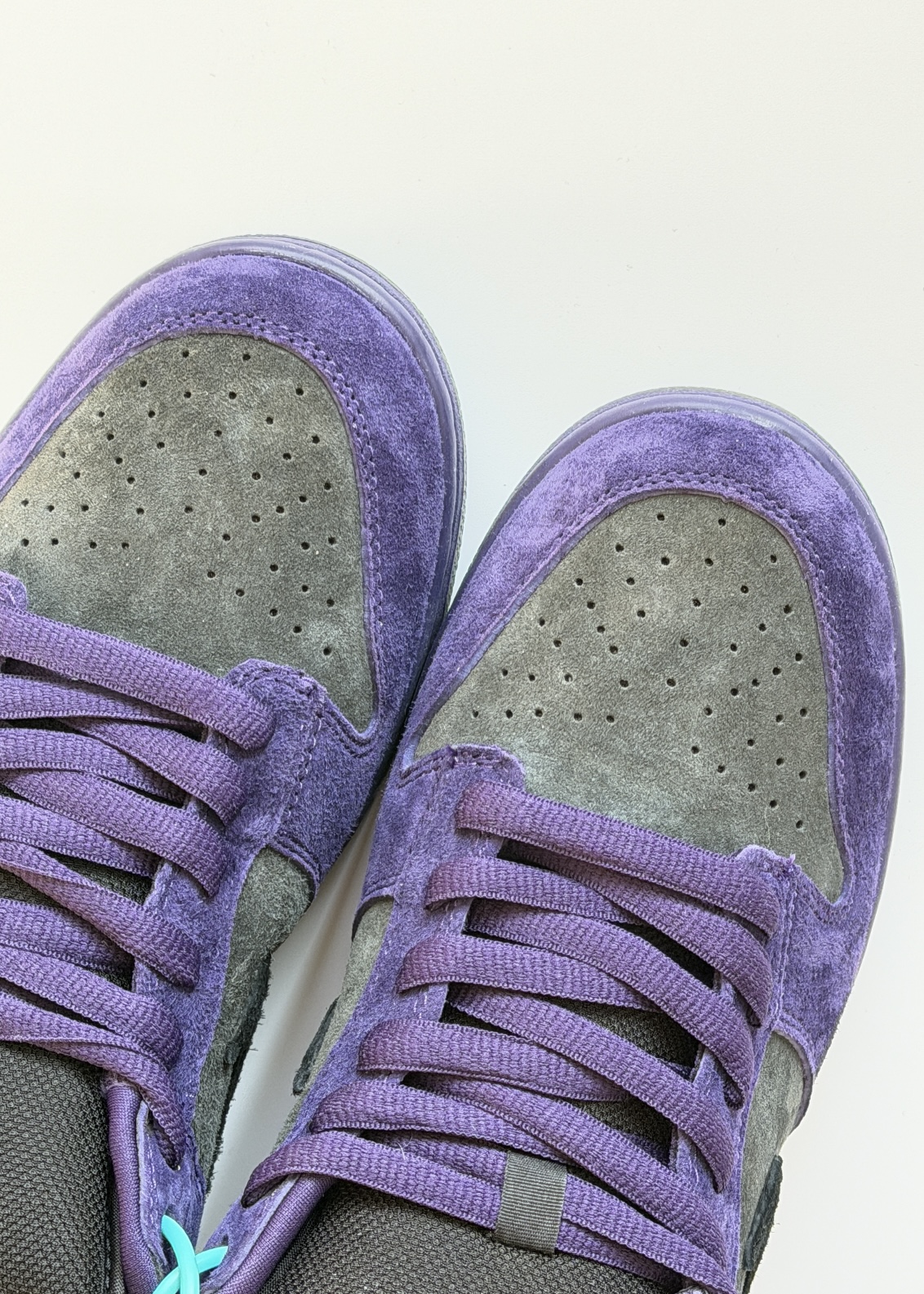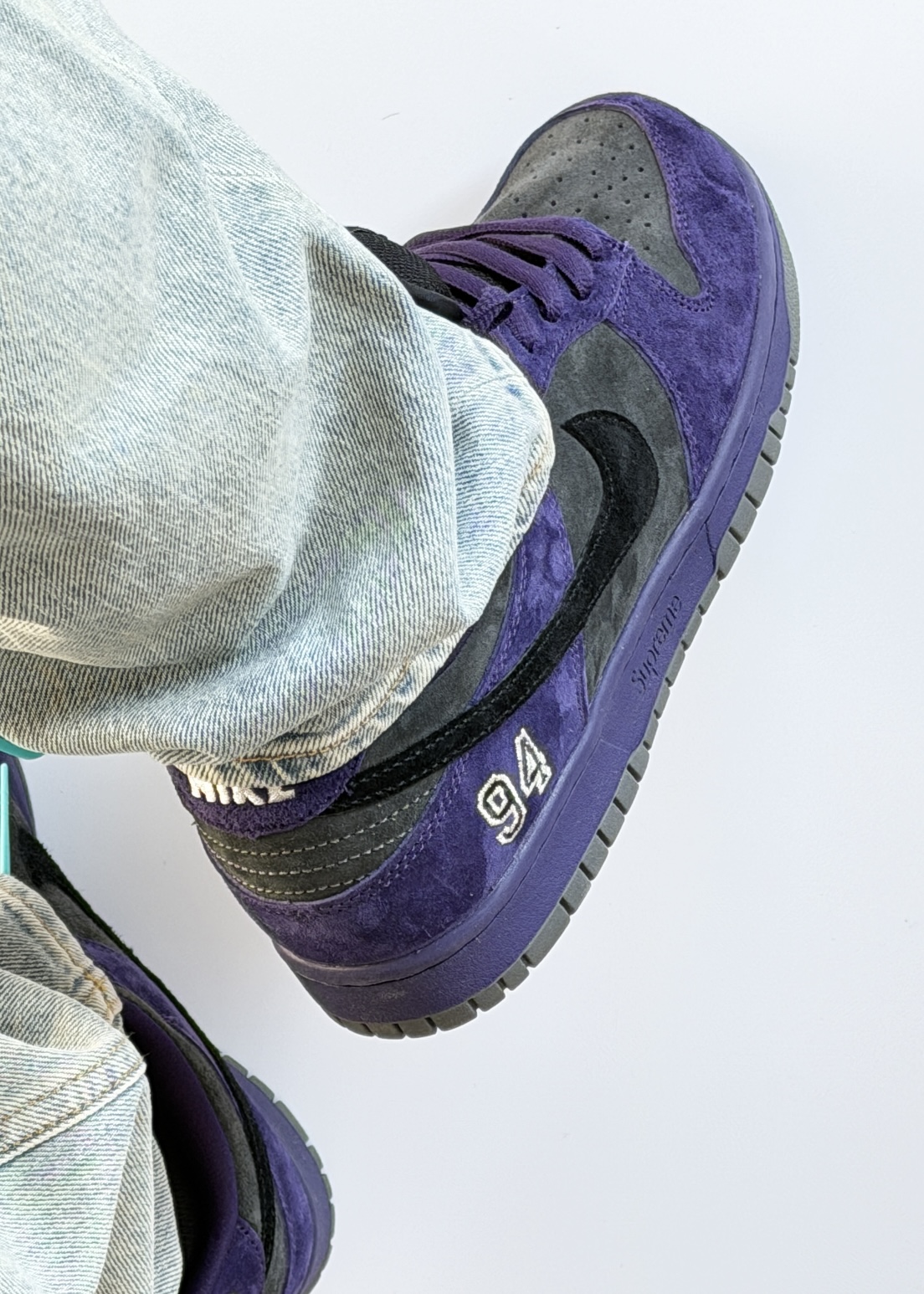 今年年度联名dunksb真的有不少经典款!但是我最爱的一双就是sup欧限这款了!紫色搭配灰色配色方案个人非常喜欢,灰紫配色也很高级,搭配翻毛皮质感拉满!