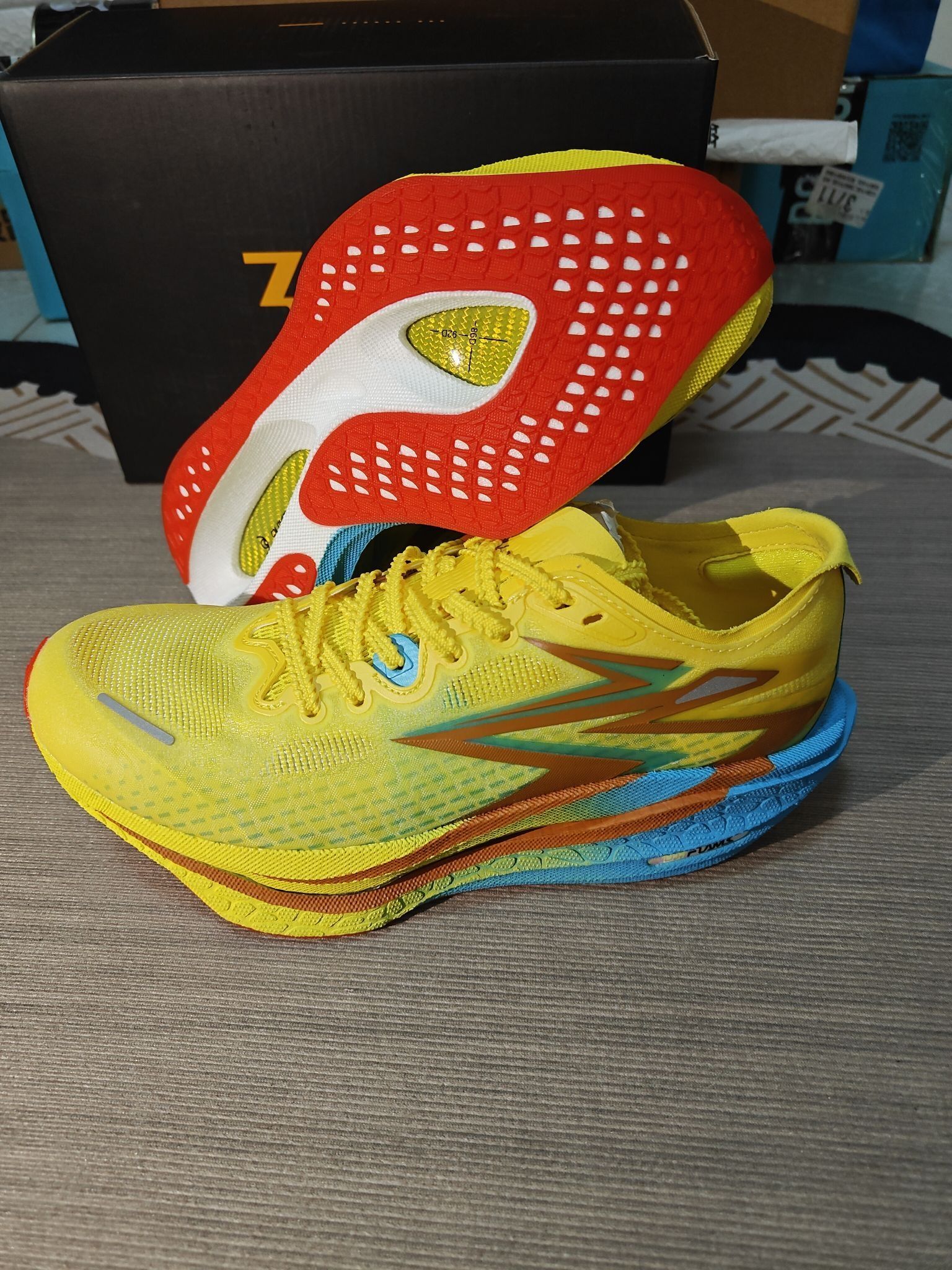 入手361°飞燃4海绵宝宝酸黄款太惊喜了,颜值和性能双在线!低帮设计上脚超轻便,体考训练完全没负担,男女同款选码超省心。全掌碳板的推进感超明显,蹬地时能感受到助力,800米体测配速都提了,超临界中底减震超赞,落地膝盖脚踝完全没压力。鞋面透气不闷脚,雨天还有轻微防水性,RPU大底抓地稳还耐磨,跑了快200公里纹路依旧清晰。不管是日常竞速训练、体测还是休闲长跑都适配,海绵宝宝的酸黄配色超吸睛,训练回头...