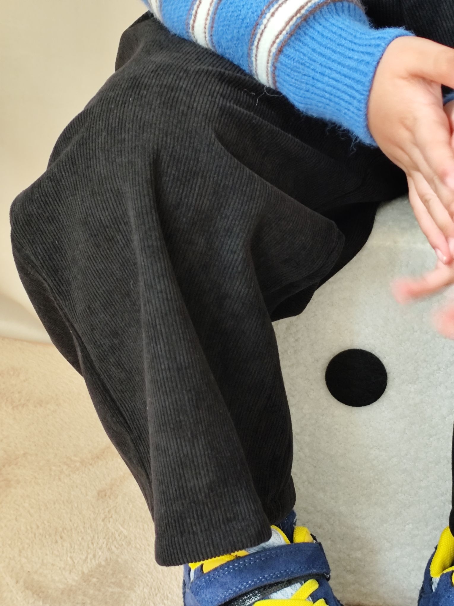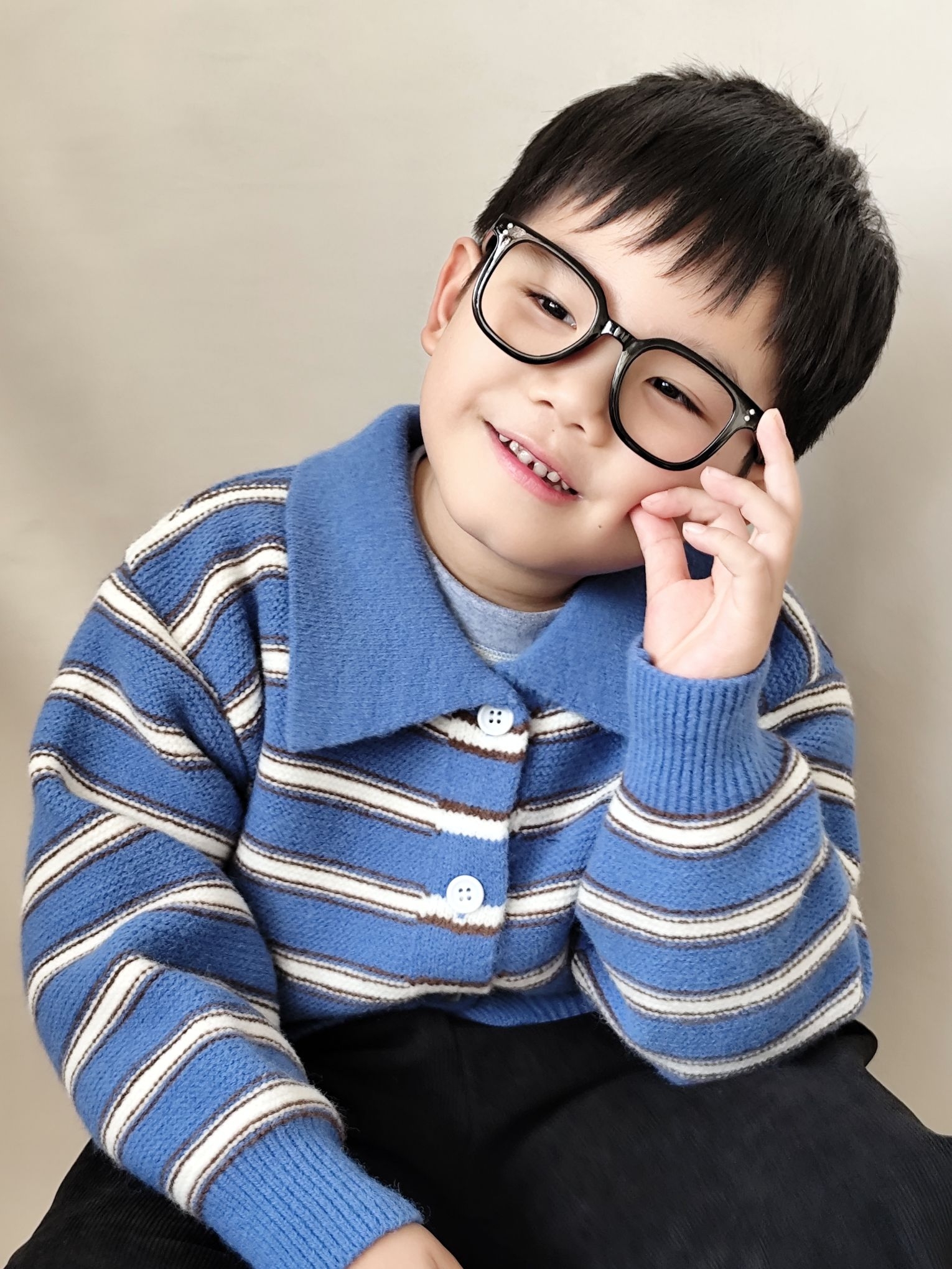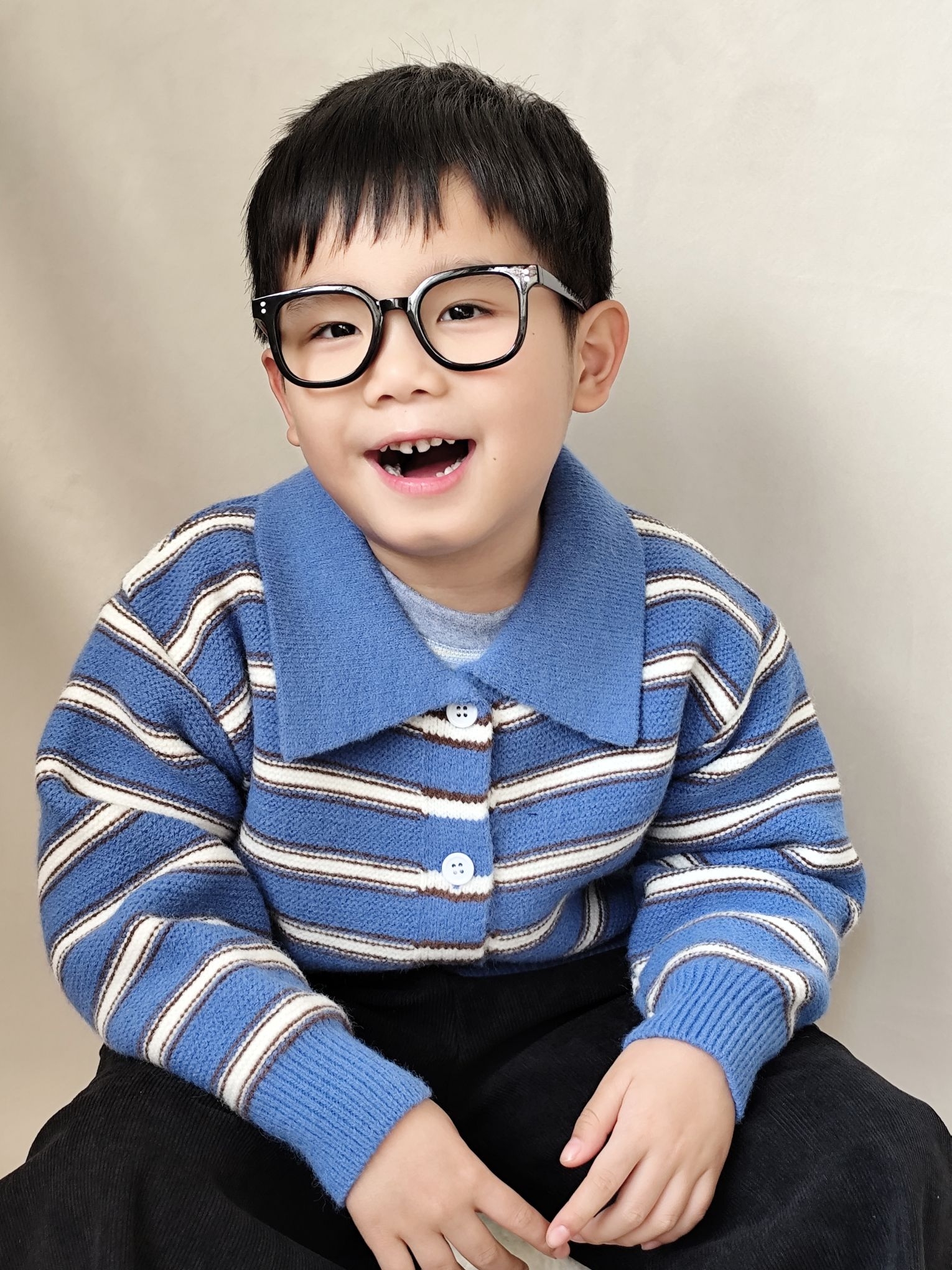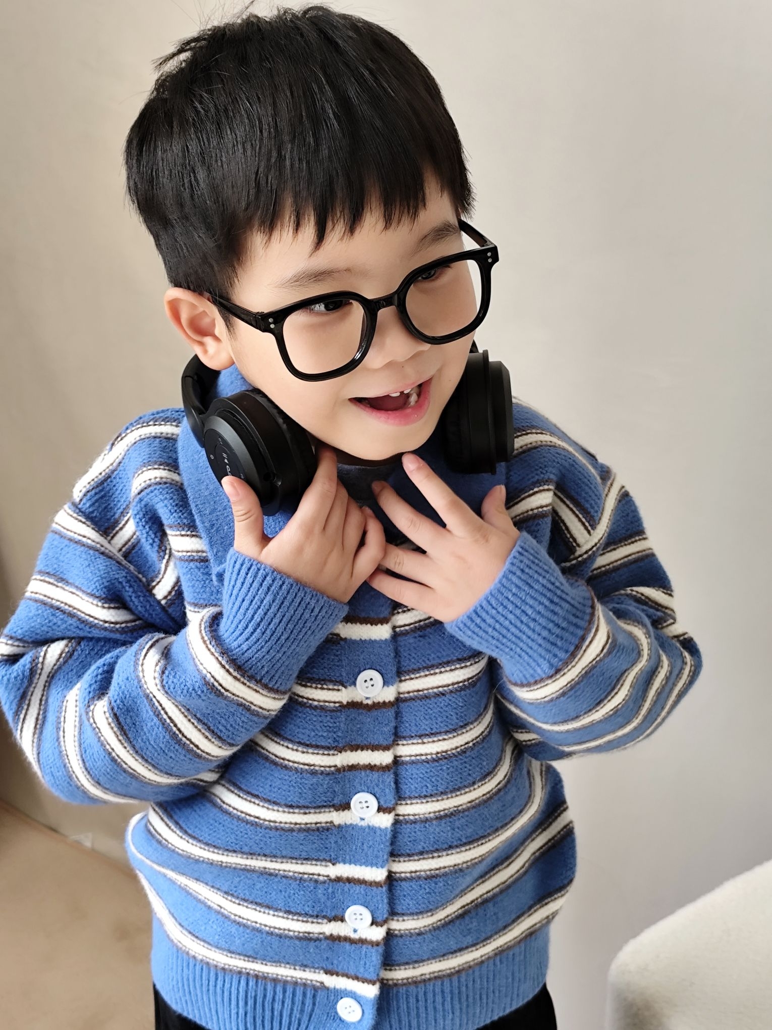 给宸宝搭的这套蓝条纹针织开衫也太出片了!软糯的针织面料贴身穿不扎,软乎乎的材质太适合秋冬了,无论是单穿还是当内搭穿都可以😄😄😄翻领设计还带点小复古,配条宽松版型黑色灯芯绒裤子,休闲又有层次感,娃跑跳不勒腿!小男孩穿蓝调真的超显白~宸宝自己也说穿的舒服不想脱😂😂😂宸宝身高120,买的120码刚刚好✌✌✌