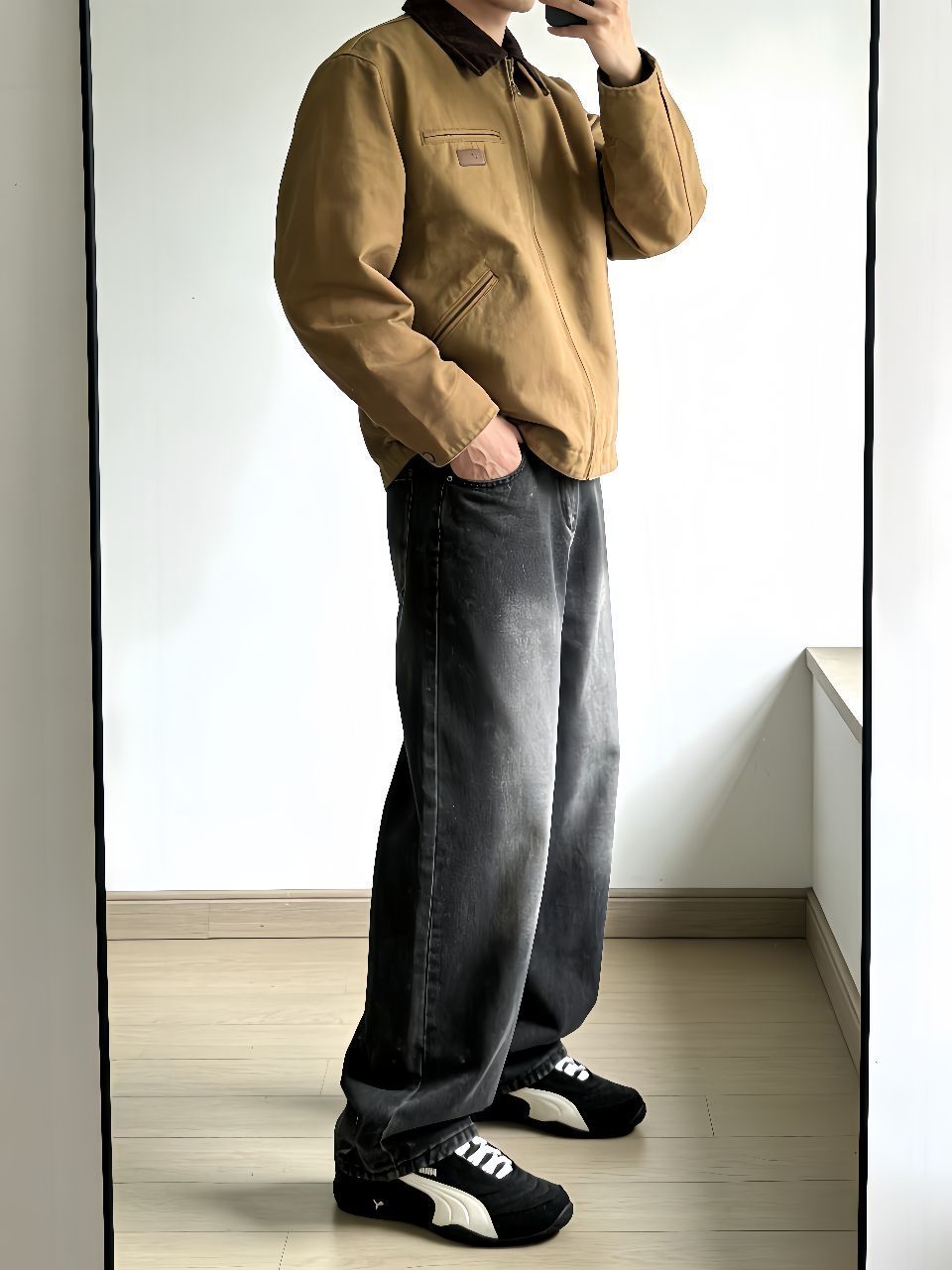 嗨,今天分享一套我最近常穿的搭配,真心推荐! 外套是马登的工装夹克,厚实保暖,美式复古风十足,冬天挡风没问题。裤子是DAREASY的阔腿牛仔裤,加绒设计,穿起来软乎乎的不冷,垂感好显腿长。鞋子是PUMA的黑色休闲鞋,情人节限定款,荔枝皮质感,双鞋带有点小特别。 短款夹克配阔腿裤,拉高腰线不臃肿,整体深色系简单耐看。这样穿慵懒又帅气,日常出门舒服有型,学生党或上班通勤都适合。关键是实用,秋冬保暖...