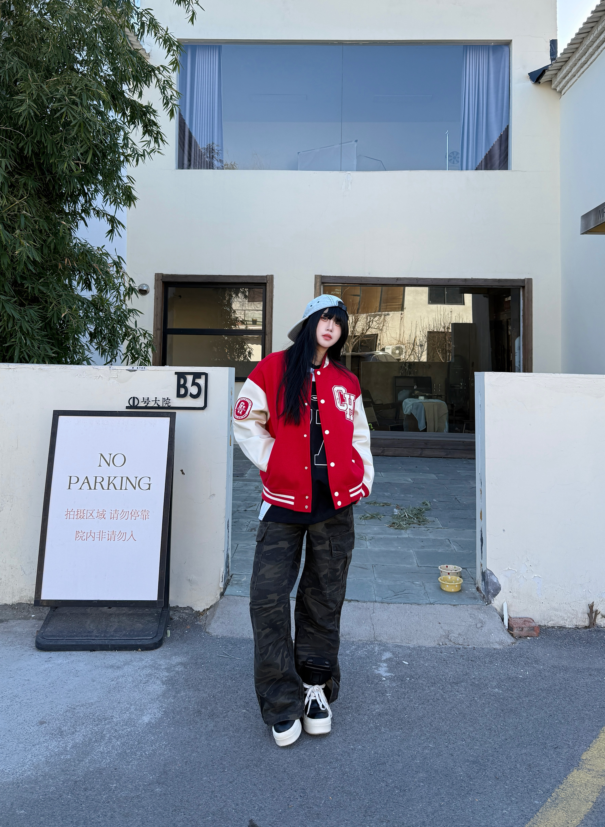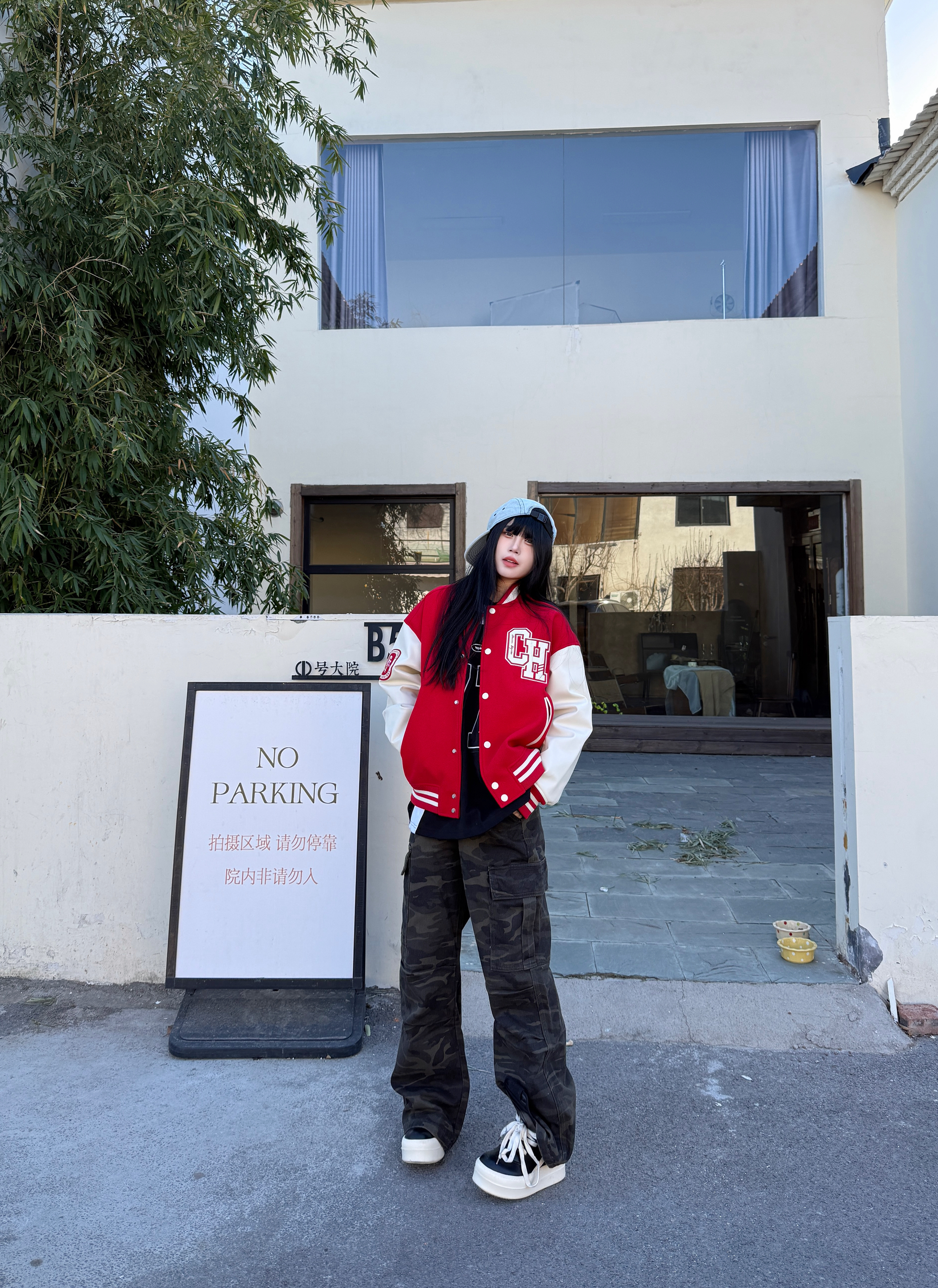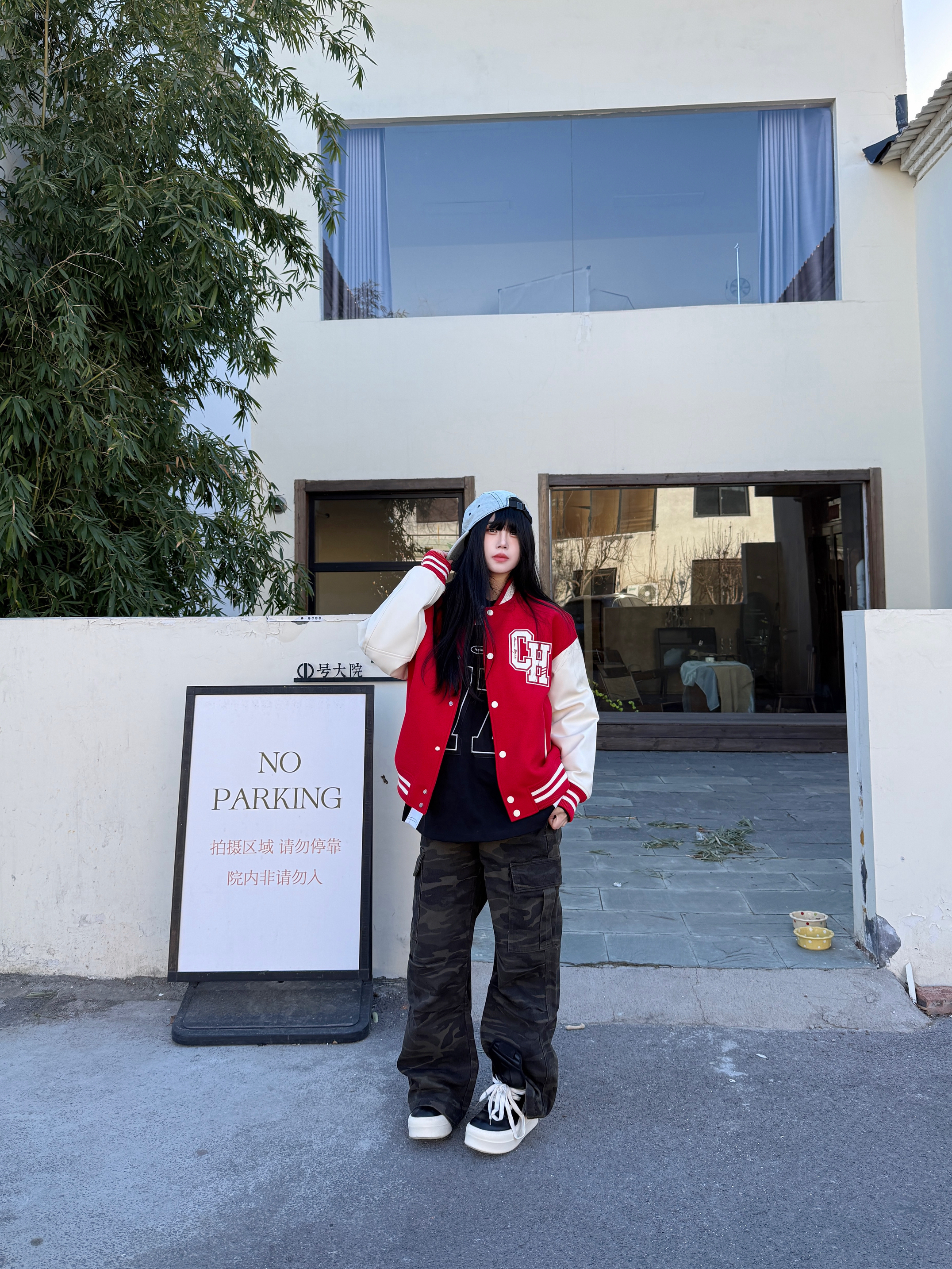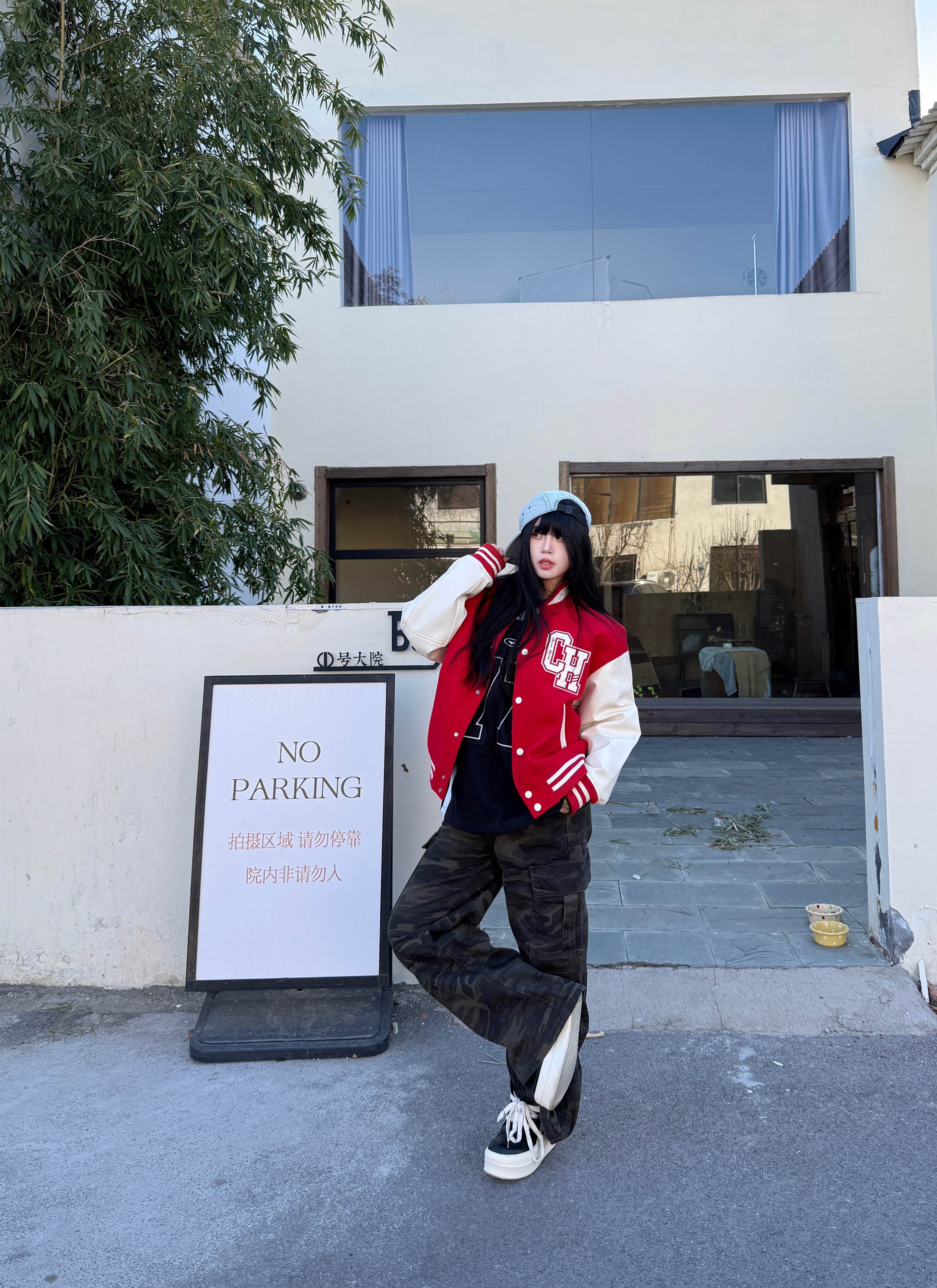 今天穿这件氛围感棒球服 红色棒球服就很有新年氛围感 复古拼接设计高级感满满 👖搭配一条迷彩裤子就很ok 最后戴一个帽子增加氛围感 新年这么穿 你学会了吗