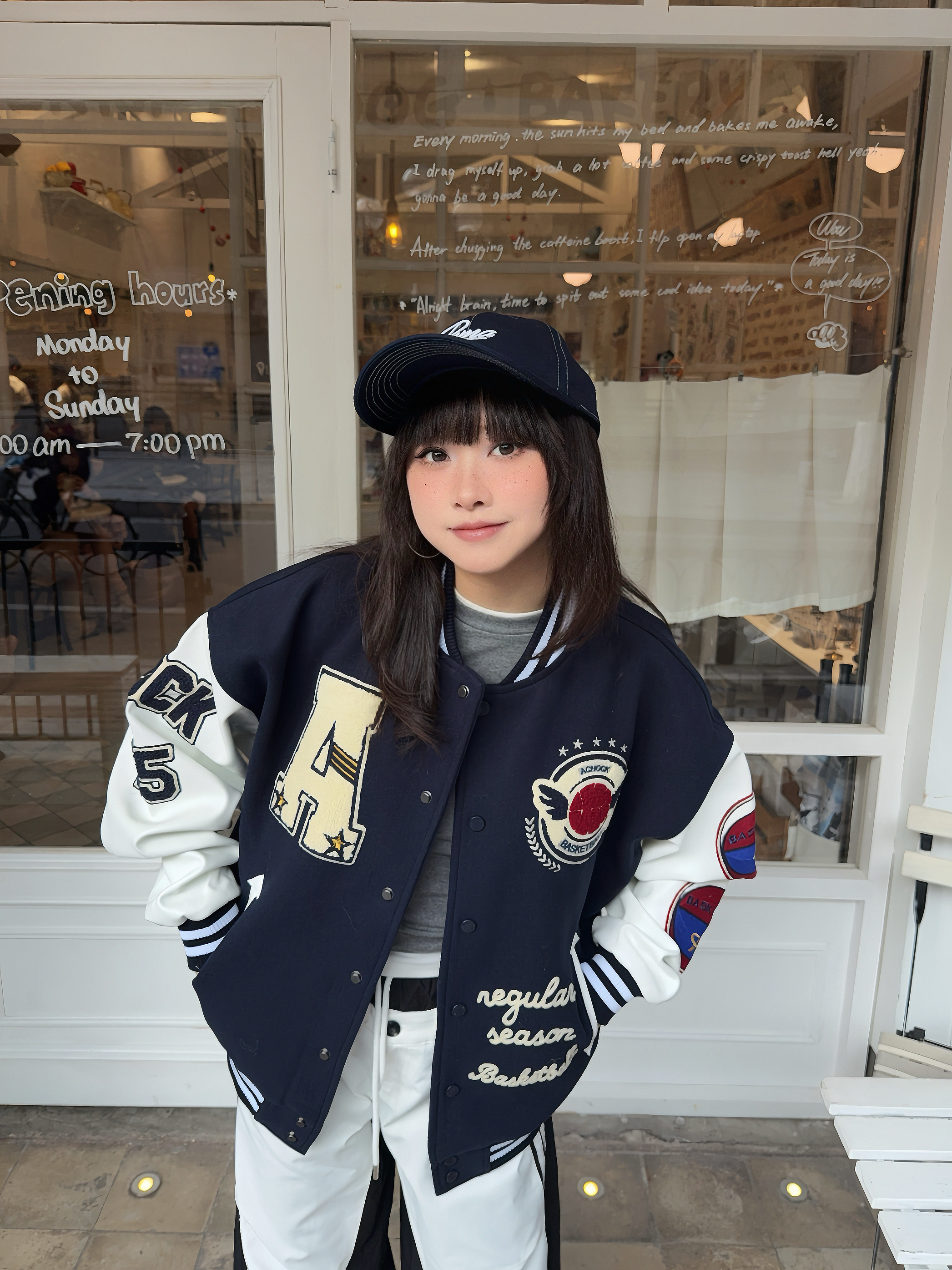 这套穿搭不吃建模,秋冬万能搭配get⭐ 📎Achock棒球服外套叠穿灰色打底,保暖又有层次感,这个棒球服外套的刺绣🪡贼有街头感,面料蛮厚实,秋冬搭配加分~ ☑️搭配同风格长裤,出街回头率💯